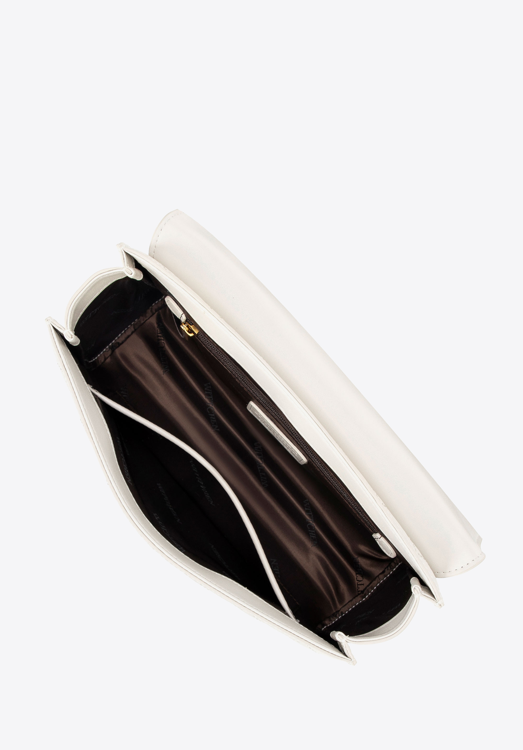 - Praktikus elrendezés: A táska belsejében két zseb található, az egyik cipzáras, ami megkönnyíti a apróságok tárolását.
