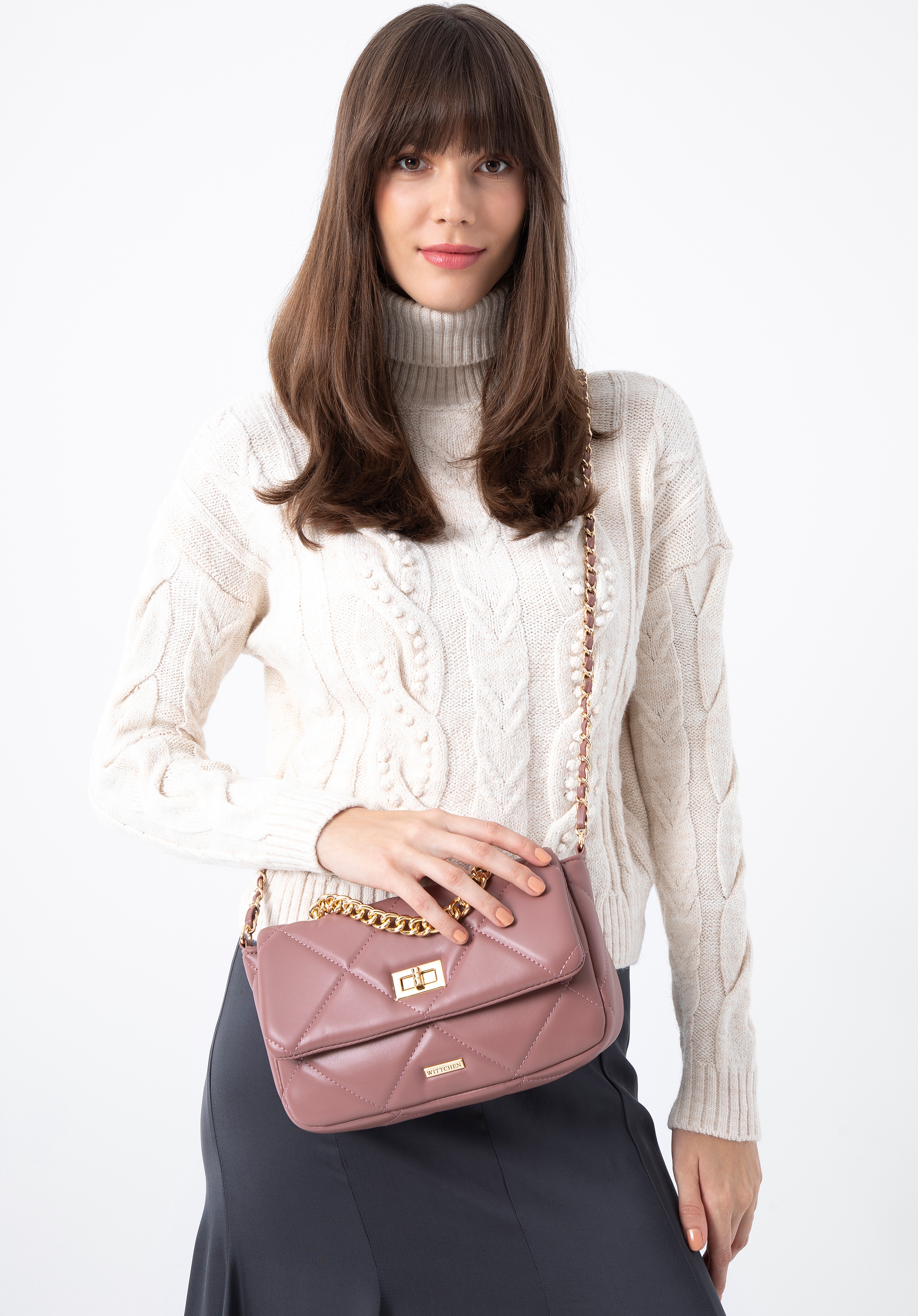 Ez a stílusos kézitáska minden olyan nő számára vonzó lesz, aki szereti a klasszikus stílust. Ez a kellemes tapintású női kézitáska tökéletes kiegészítő mindennapi használatra. Műbőrből készült, steppelt dizájn díszíti. Viseld farmerrel és kabáttal vagy kedvenc kis fekete ruháddal – mindennel jól fog mutatni. Ebben a kiegészítőben elfér mobiltelefon, pénztárca, kis naptár, kézkrém és egyéb apróságok. Ez a kis steppelt táska remek választás minden elegáns nő számára.