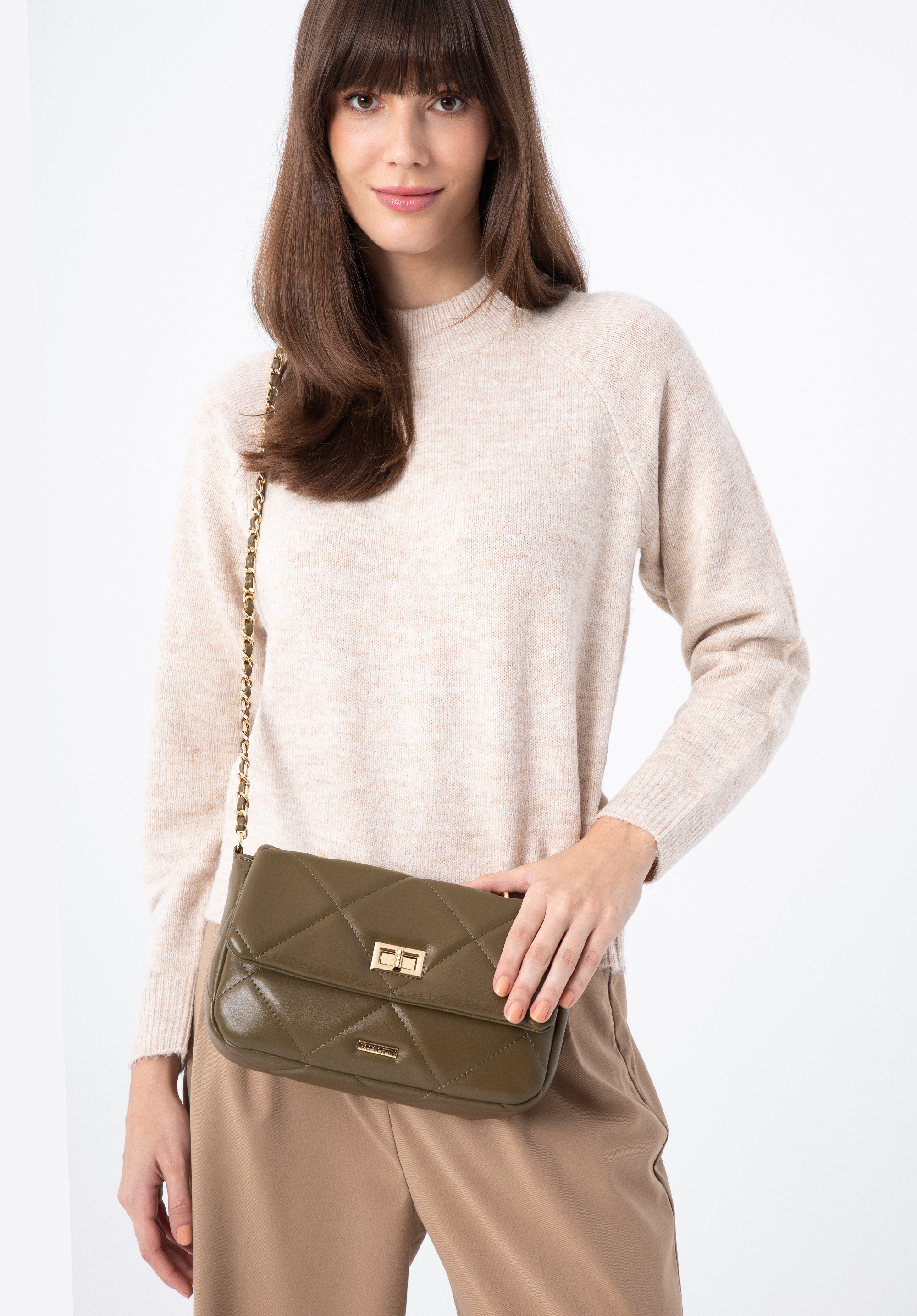 Ez a stílusos kézitáska minden olyan nő számára vonzó lesz, aki szereti a klasszikus stílust. Ez a kellemes tapintású női kézitáska tökéletes kiegészítő mindennapi használatra. Műbőrből készült, steppelt dizájn díszíti. Viseld farmerrel és kabáttal vagy kedvenc kis fekete ruháddal – mindennel jól fog mutatni. Ebben a kiegészítőben elfér mobiltelefon, pénztárca, kis naptár, kézkrém és egyéb apróságok. Ez a kis steppelt táska remek választás minden elegáns nő számára.