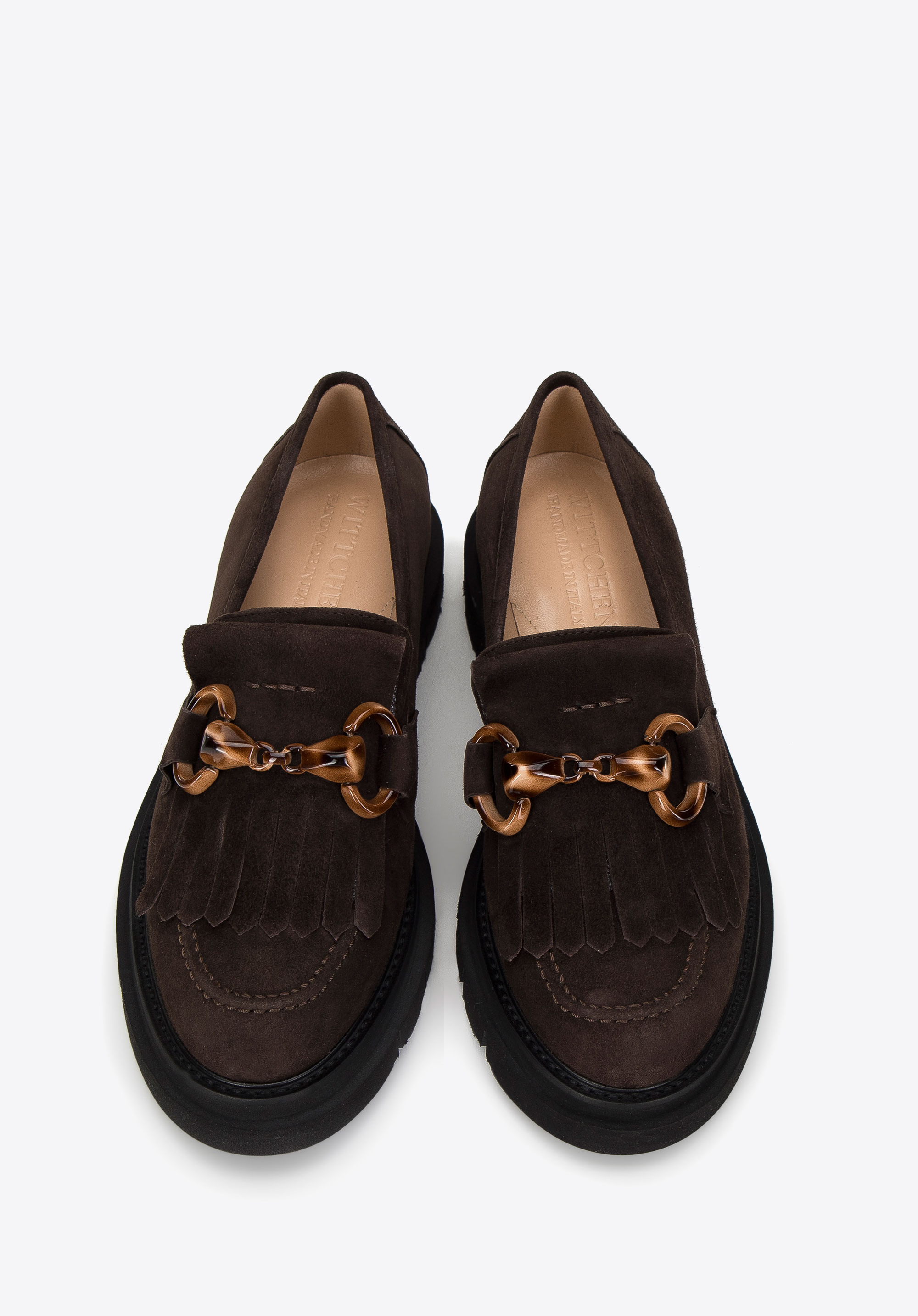 Ez az egyedi női cipő új stílust hoz a ruhatáradba. Olaszországban készült kiváló minőségű velúrbőrből. Az elejét mintás csat és dekoratív rojtok díszíti, melyek bohém hangulatot kölcsönöznek az megjelenésének. A puha bőr talpbetét órákon át kényelmes járást biztosít. A kényelmes talp jó tartást biztosít, és néhány centimétert hozzáad viselője magasságához. A rojtokkal és csattal díszített női velúr mokaszin remek választás a kedvenc miniruhádhoz, de farmerhez és virágos inghez is hordhatod.