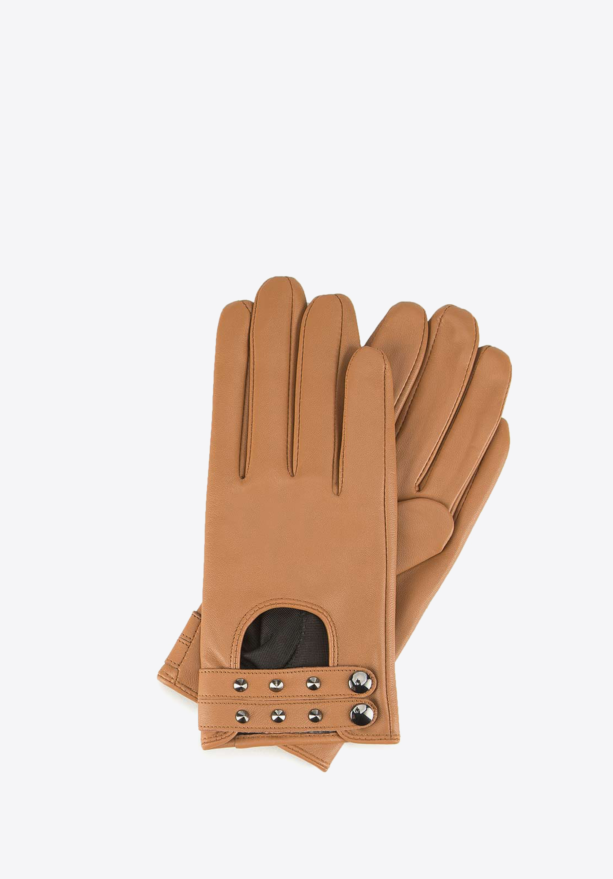 Női autós kesztyű a legmagasabb minőségű báránybőrből. Szegecsekkel díszített klasszikus kivitelezés. Bőr borítású, patentos csatja jelentősen megkönnyíti a kesztyű felvételét. Extravagáns kivitelezése minden női stílust feldob és kihangsúlyoz. A modell fekete és karamell színben elérhető.
