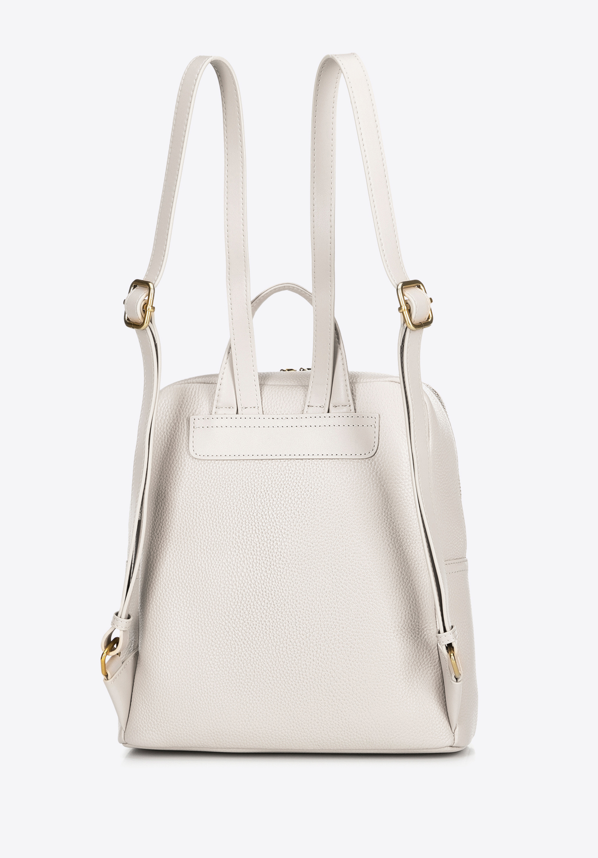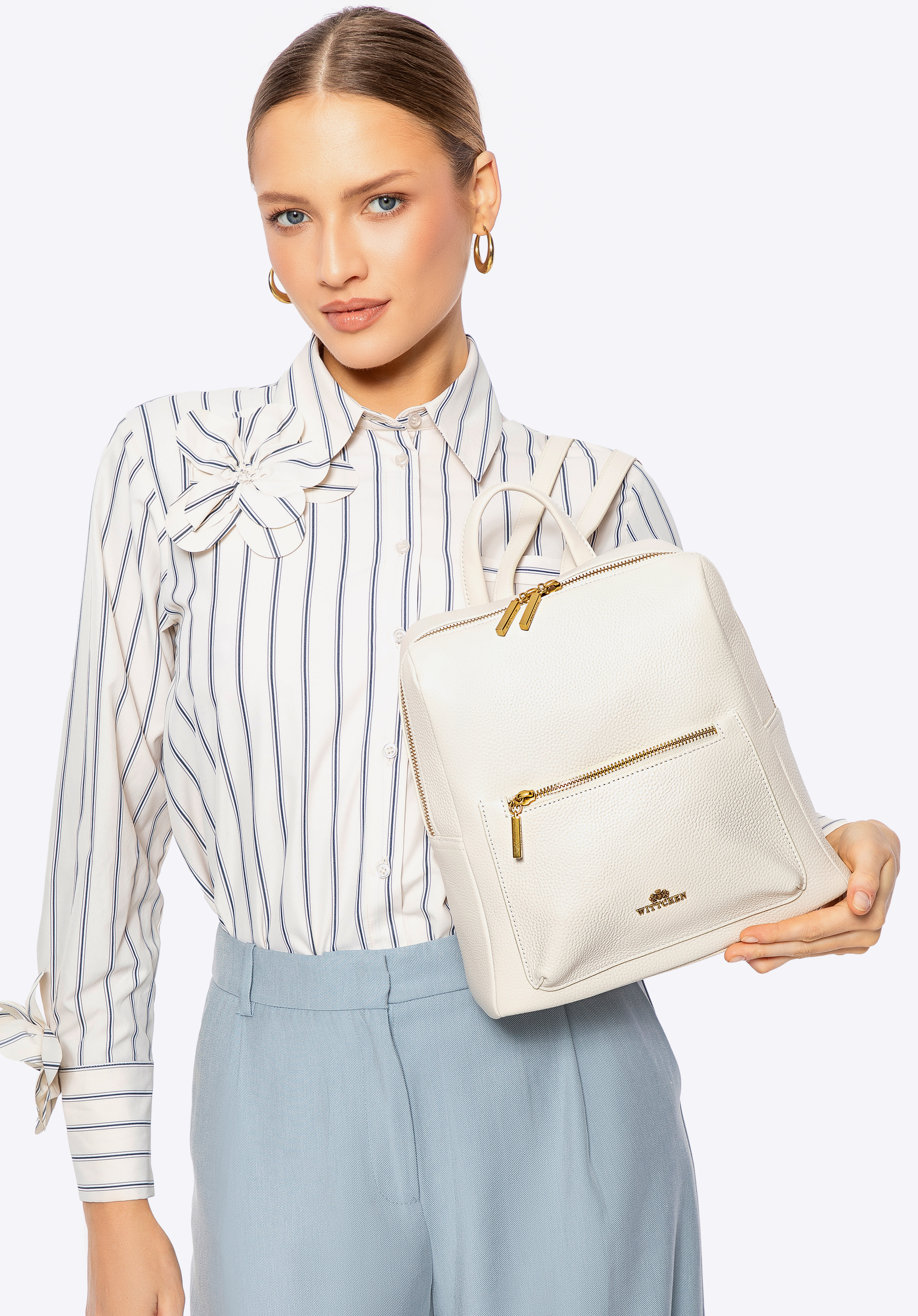 Ez az elegáns női hátizsák tökéletes választás azok számára, akik értékelik a funkcionalitást az időtlen stílussal kombinálva. Természetes bőrből készült, így biztosítja a tartósságot, miközben egyedi karaktert kölcsönöz mindennapi öltözékednek. Az állítható pántok és a bőrutánzatú mikroszálas fogantyú puha és kényelmes viseletet biztosít, miközben kiemelik a kifinomult dizájnt.