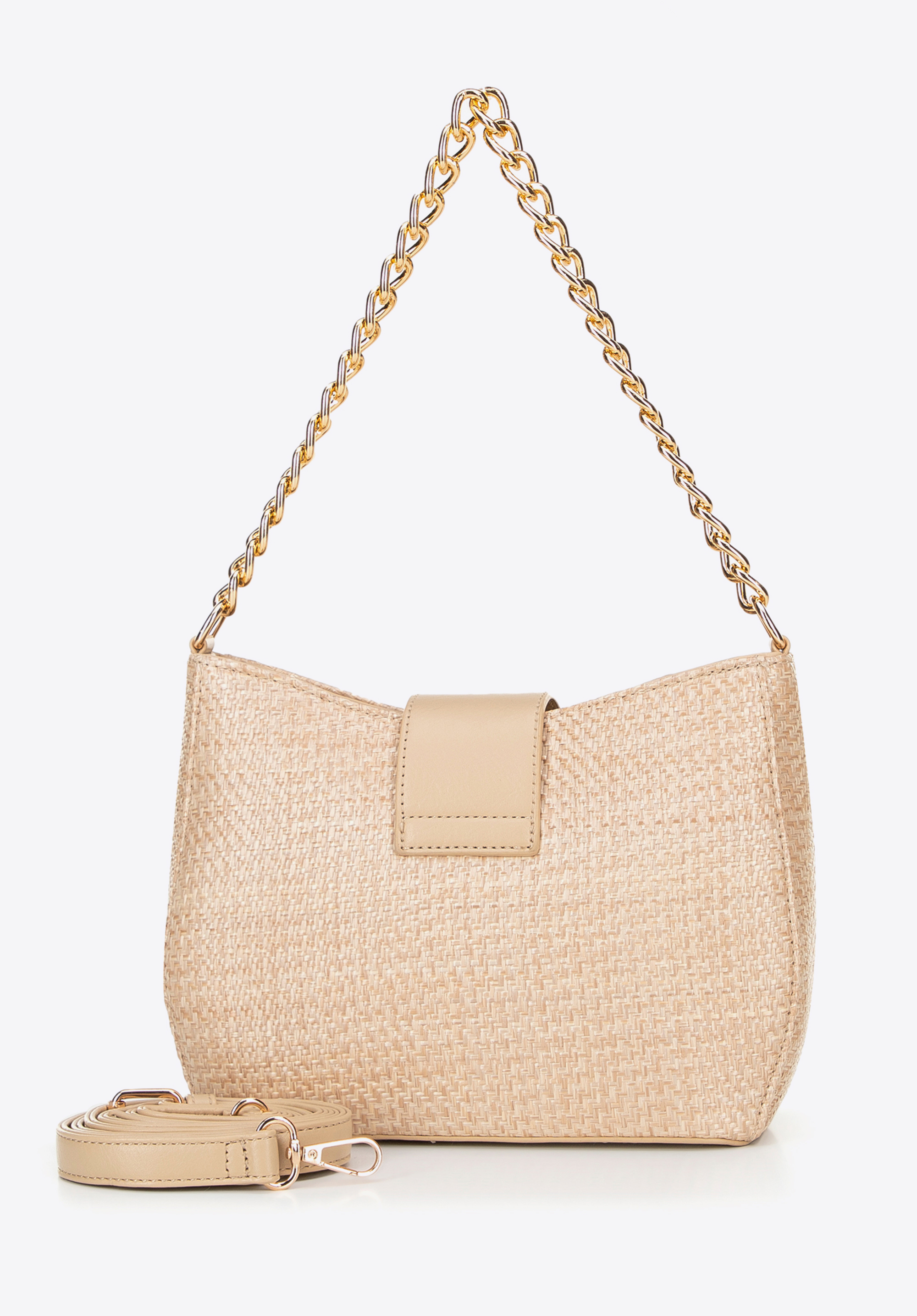 Ez a női crossbody táska az eleganciát ötvözi a mindennapi praktikummal. Tartós polipropilénből és poliuretánból készült, könnyű, mégis masszív, a cipzáras zár pedig biztosítja a holmijaid biztonságát. Belül egy tágas rekeszt találsz két zsebbel – köztük egy cipzárasat – a jobb rendszerezés érdekében. Az ékszer stílusú láncfogantyú eleganciát kölcsönöz, az állítható pánt pedig egész napos kényelmet biztosít.
