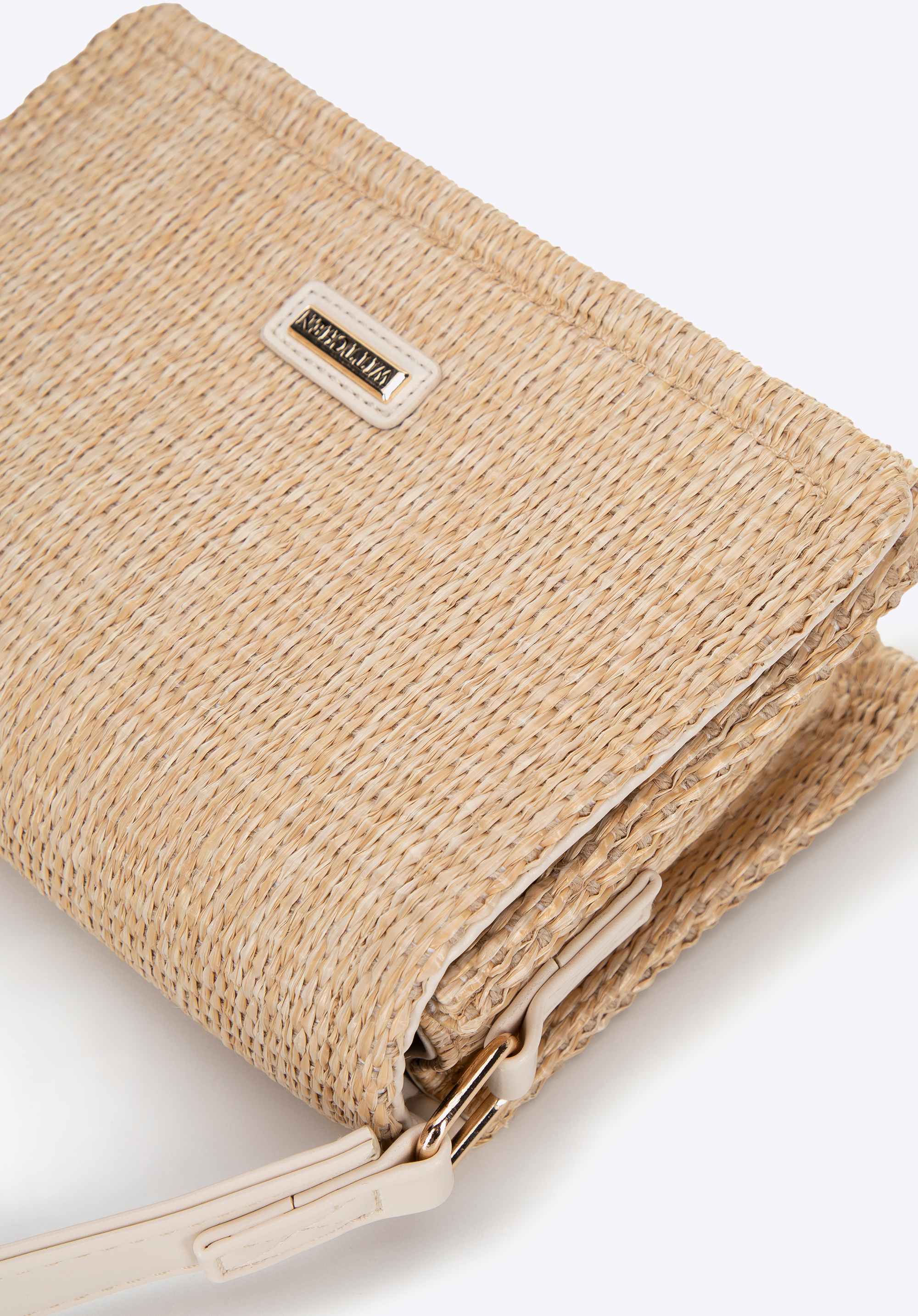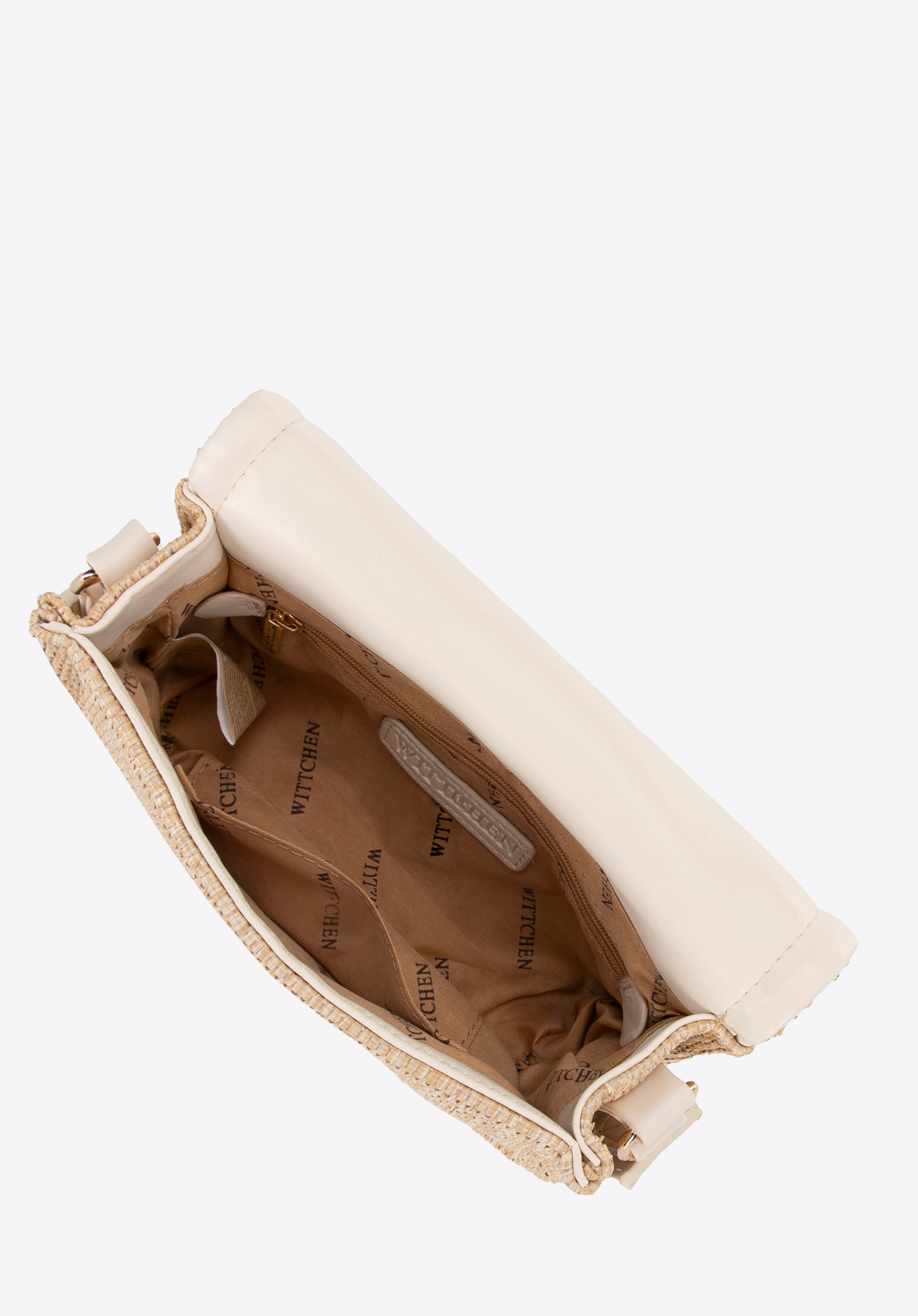Lépj be a nyárba egy kézitáskával, amely varázst ad minden ruhához, és nagyszerű funkcionalitást kínál. Ez az ökobőrből készült, egyedi szövésű dizájnnal díszített kis crossbody táska az eleganciát a trendi, nyári stílussal ötvözi. Puha formája és kellemes textúrája tökéletes társsá teszi a legmelegebb napokon. Mágneses záródása és átgondolt, cipzáras zsebbel ellátott belső kialakítása nagy kényelmet biztosít a használat során.