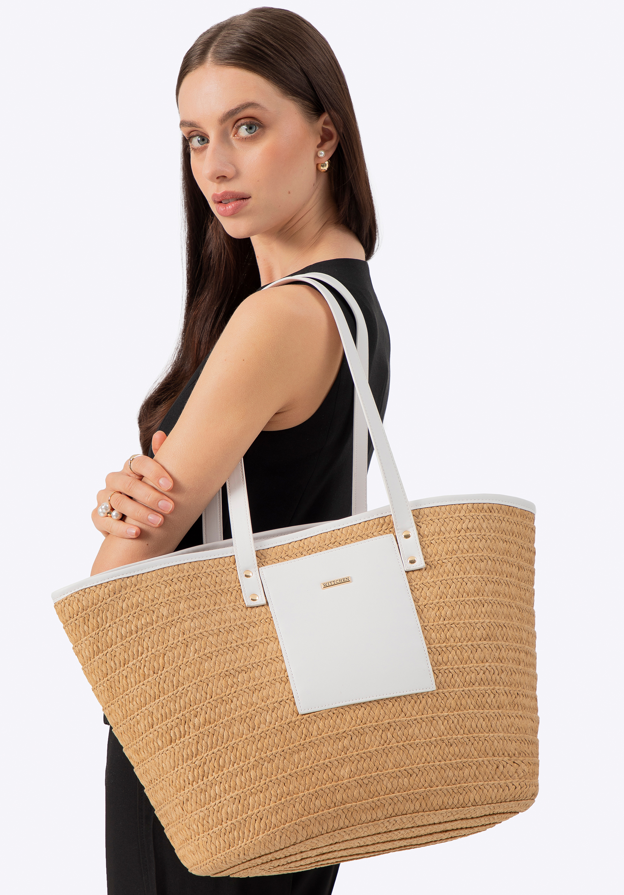 - Összetétel: 100% szalma; bélés: 100% poliészter; fogantyúk és betétek: ökobőr.