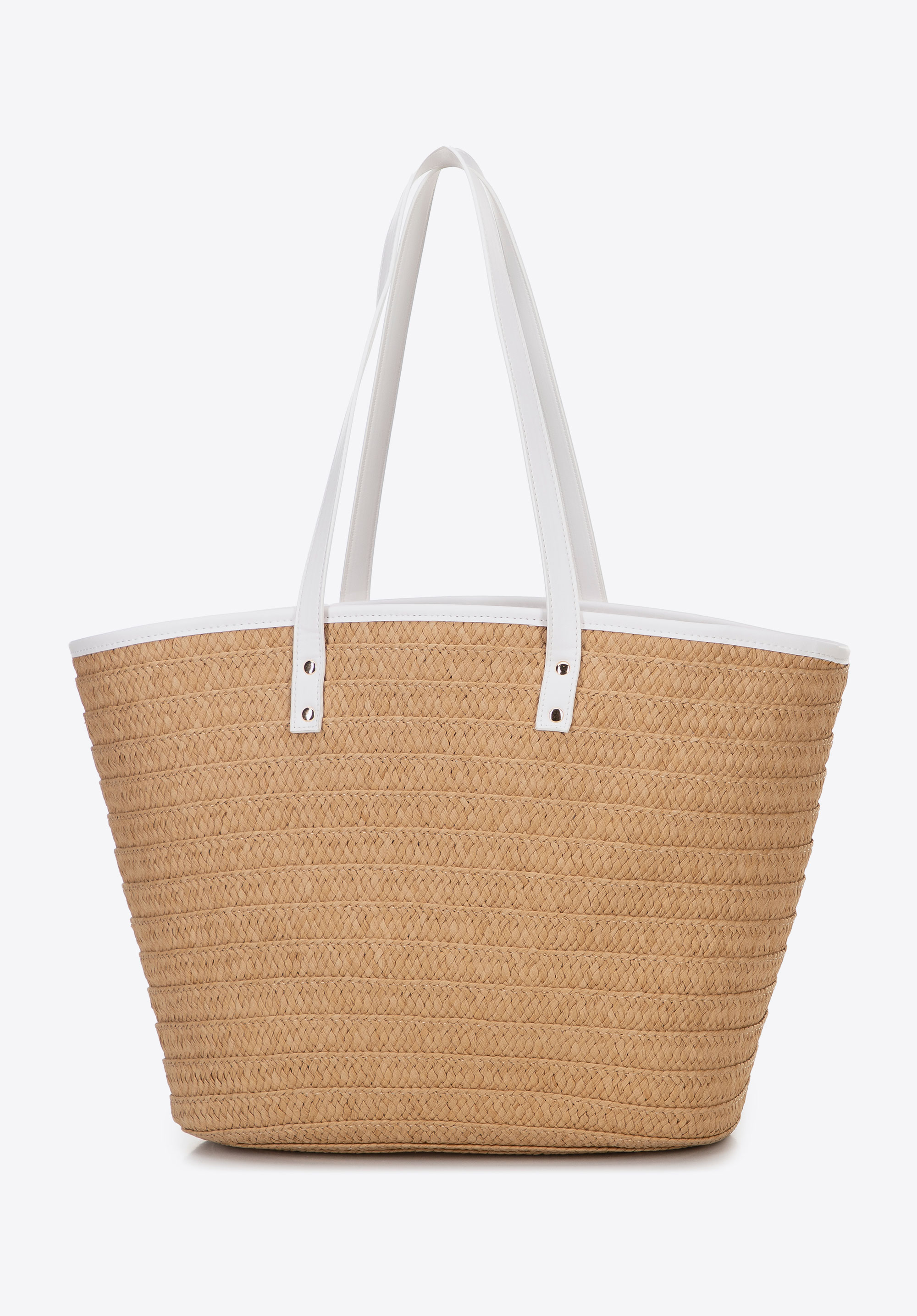 Ez a klasszikus kosár alakú női kézitáska a nyár kötelező kiegészítője, amely a természetes bájt ötvözi a mindennapi funkcionalitással. A táska könnyű szalmából készült, így laza, szellős megjelenést kölcsönöz neki, amely tökéletes a meleg napokra. A szőtt textúra és a megerősített alsó rész tartósságot és tartást biztosít, még gyakori használat esetén is. A márka logójával ellátott ökobőr elülső zseb stílusos befejezést ad.