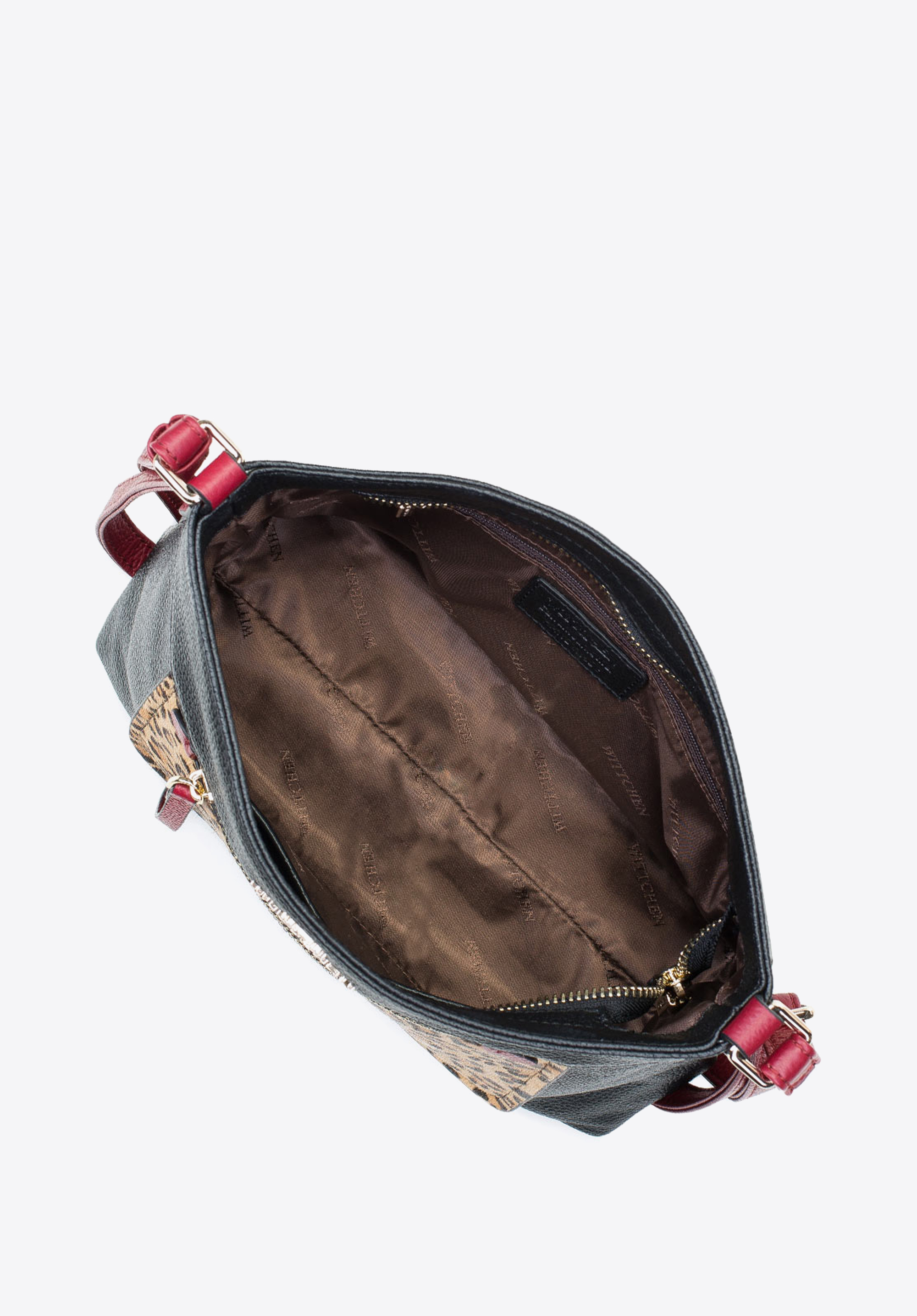 Kis táska nagy hatással: a táska feltűnő állatmintás díszítése különleges stílust kölcsönöz neki, olyan hölgyeknek ajánljuk, akik szeretnek kitűnni. Piros betétek, aranydíszítések, látványosan szemcsés bőr, leopárdmintás, szőrös kikészítésű díszzsebbel - mindez különösen eredeti összhatást eredményez.