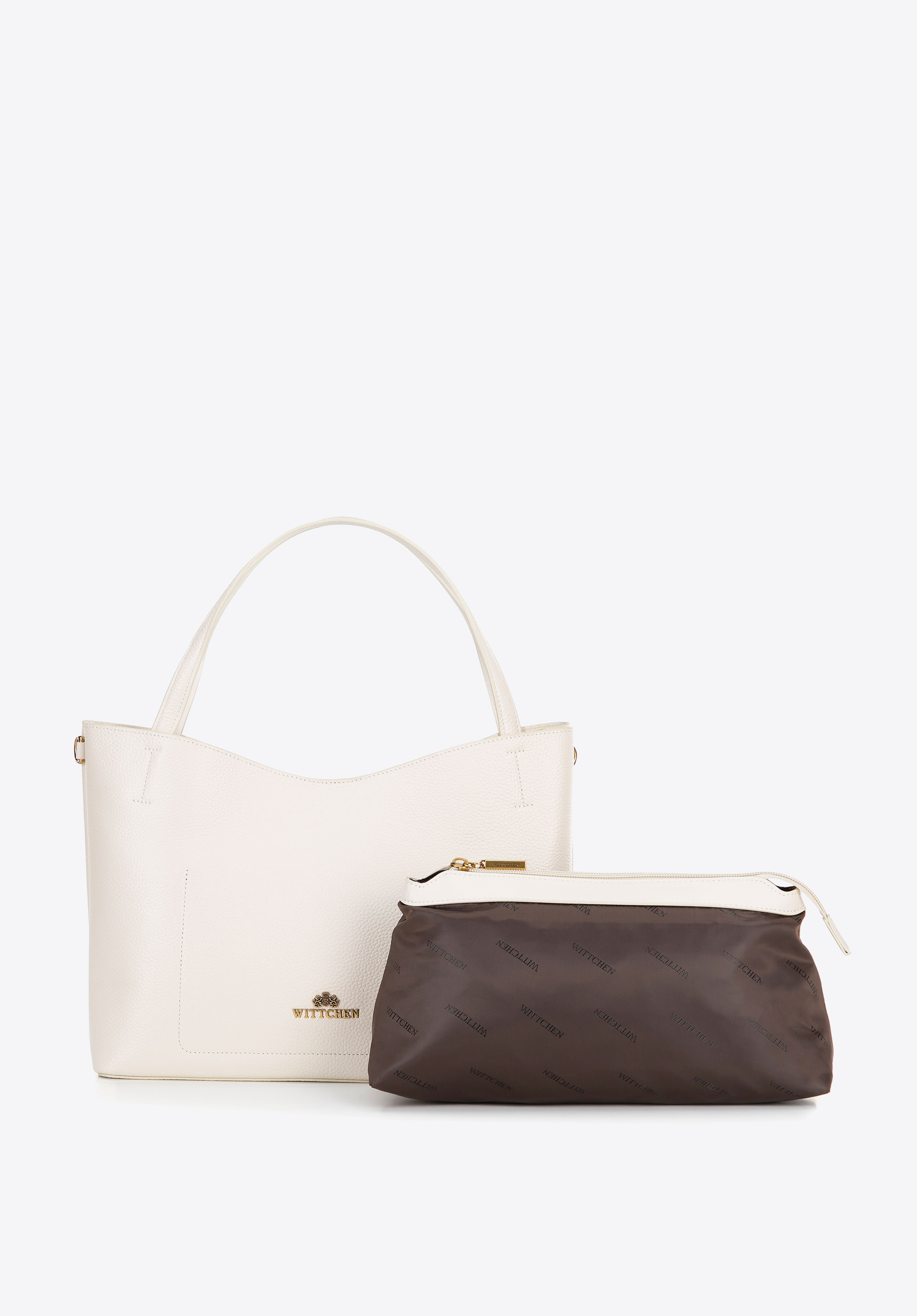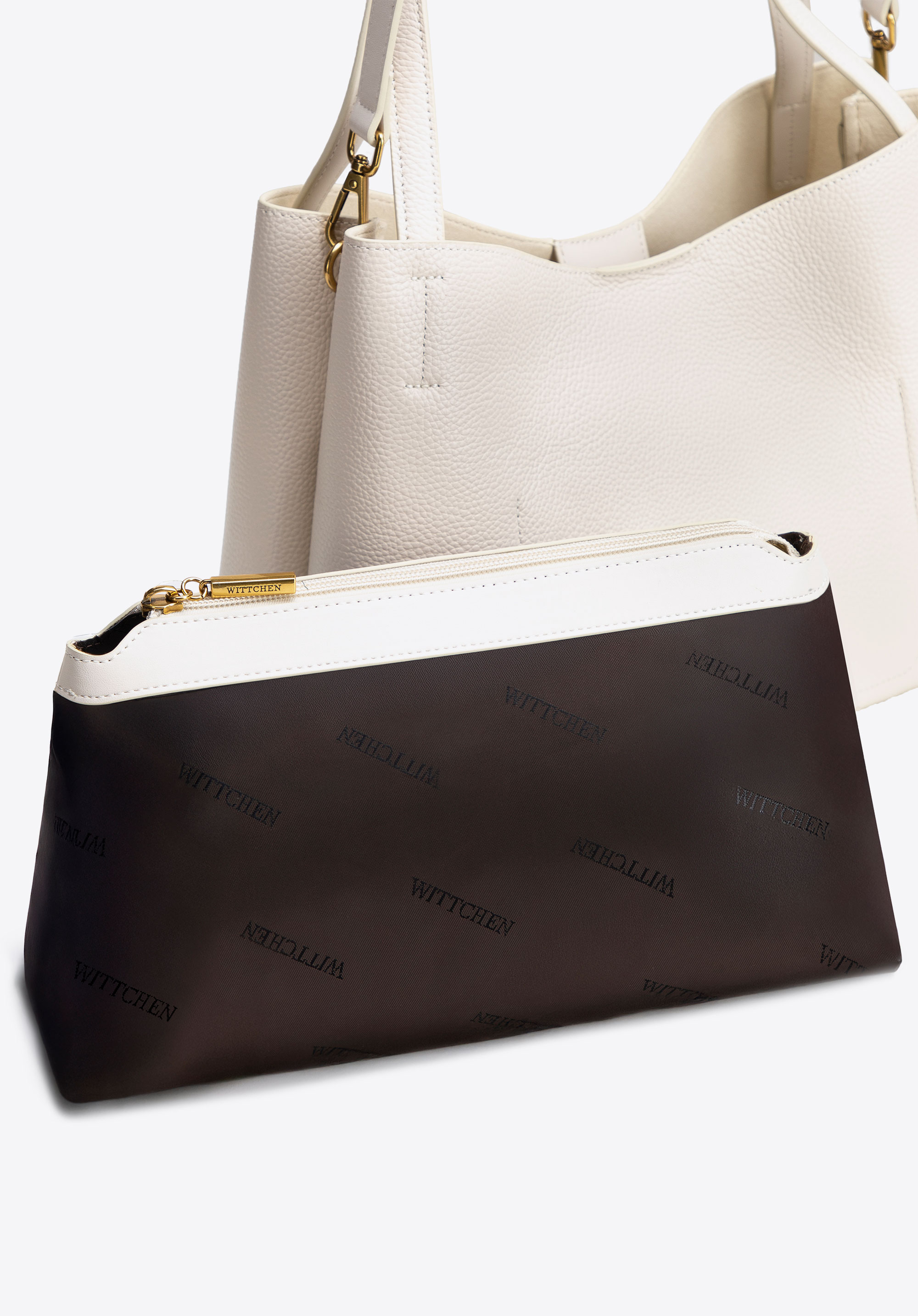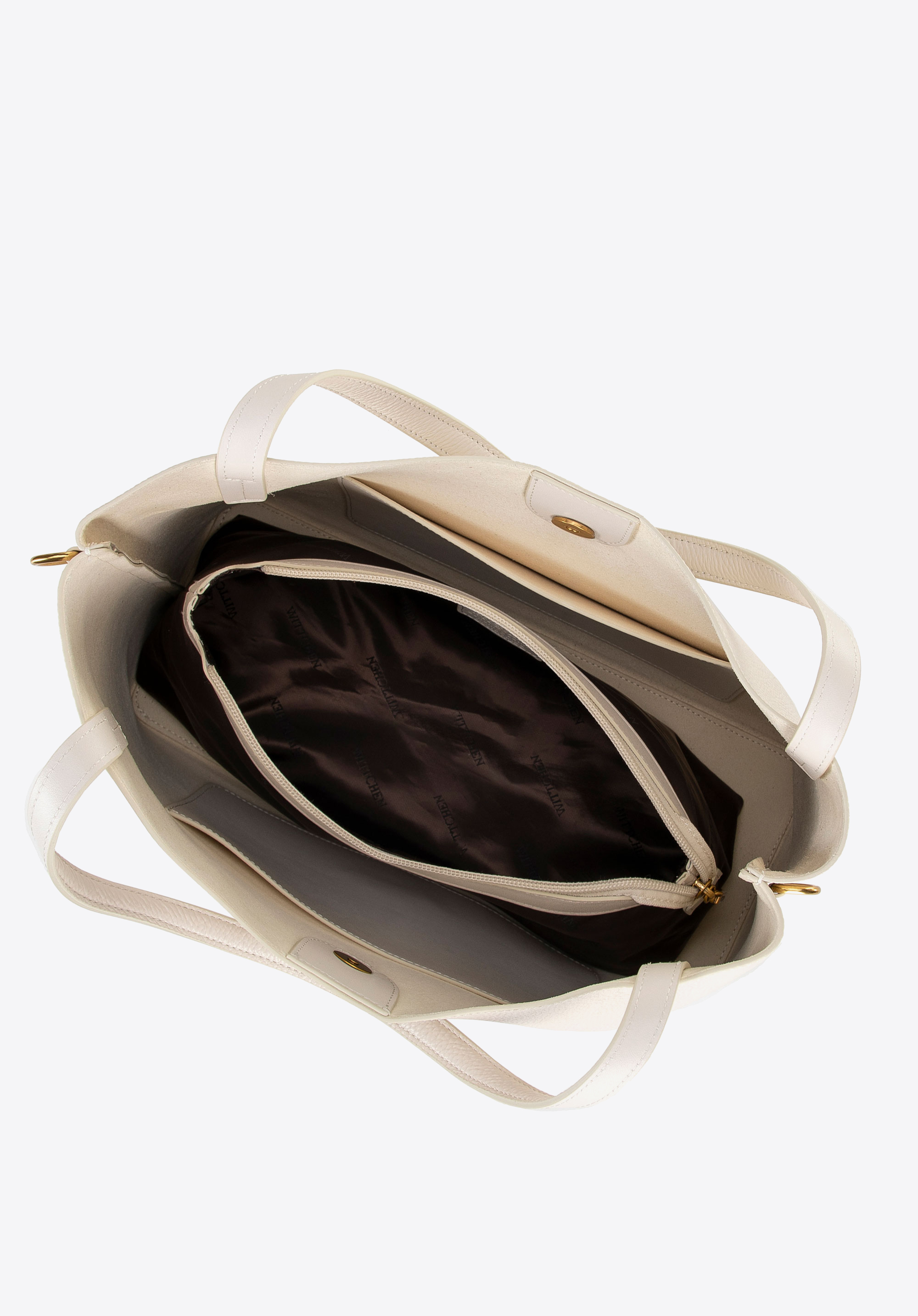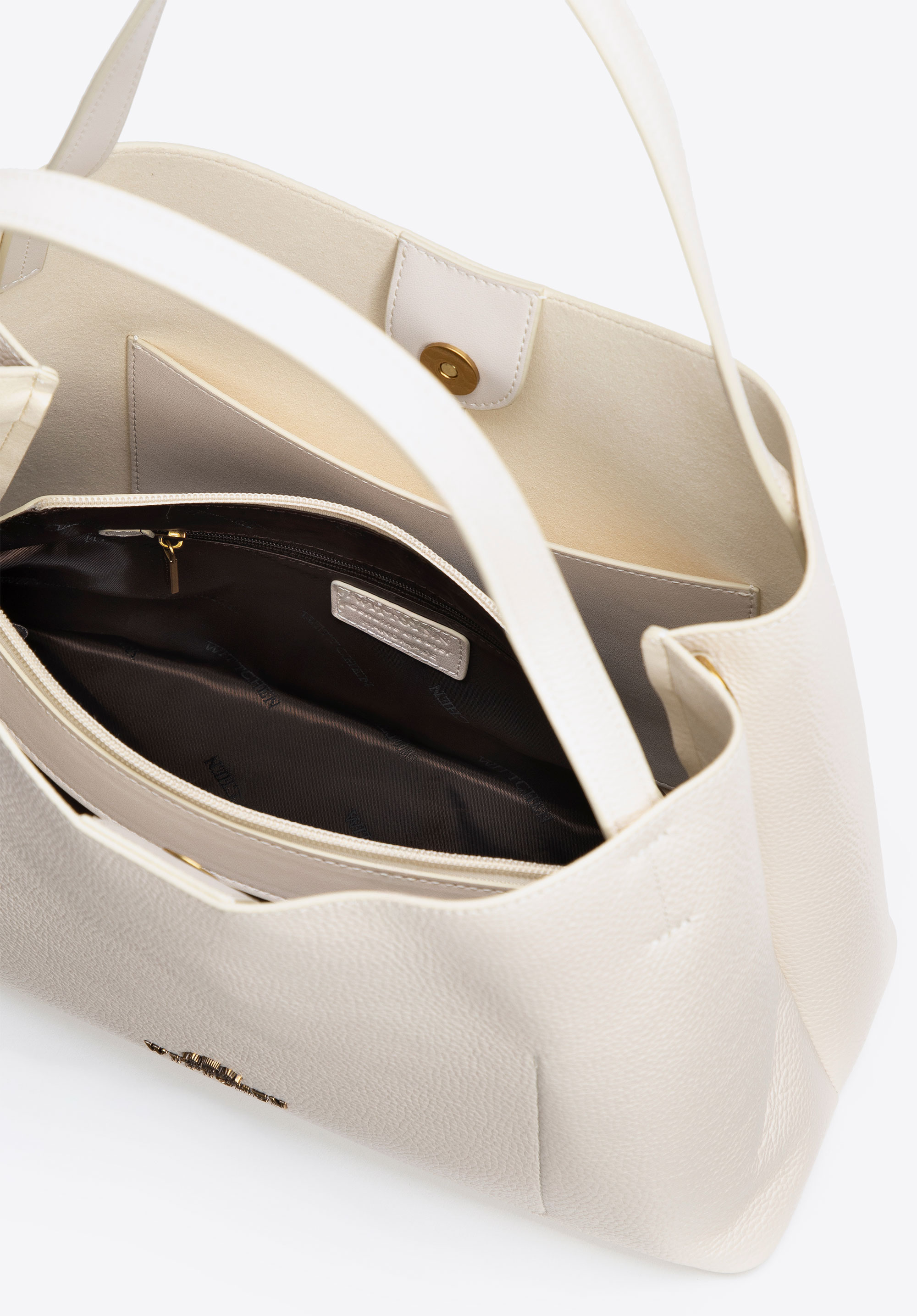 - Kivehető cipzáras tasak: Tökéletes kozmetikumok és kisebb tárgyak tárolására. A belső részen két nyitott zseb is található, amelyek közül az egyik cipzáros.