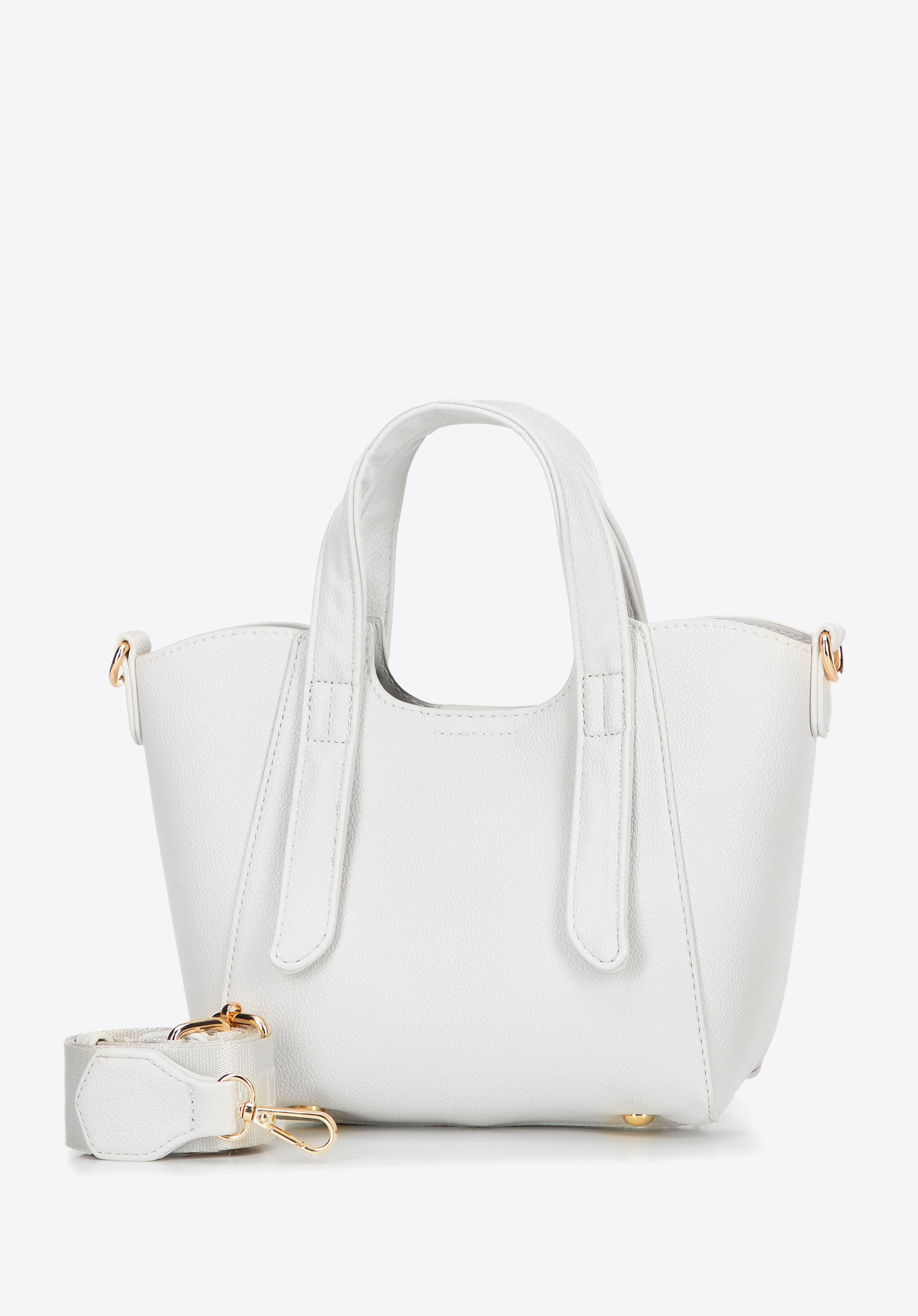Fedezze fel elegáns ökobőrből készült táskánkat, amely minimalista dizájnt és szemet gyönyörködtető részleteket tartalmaz. Kényelmes fogantyúk dekoratív kiterjesztéssel és mágneses záródással biztosítják a könnyű hozzáférést a belső térhez. Belül egy kivehető tasakot talál cipzáras zsebbel, míg az állítható, levehető logóval ellátott pánt sokoldalú hordozási lehetőségeket kínál. Kompakt méretének köszönhetően tökéletes mindennapi kézitáskává válik, amelyben minden szükséges dolog elfér.
