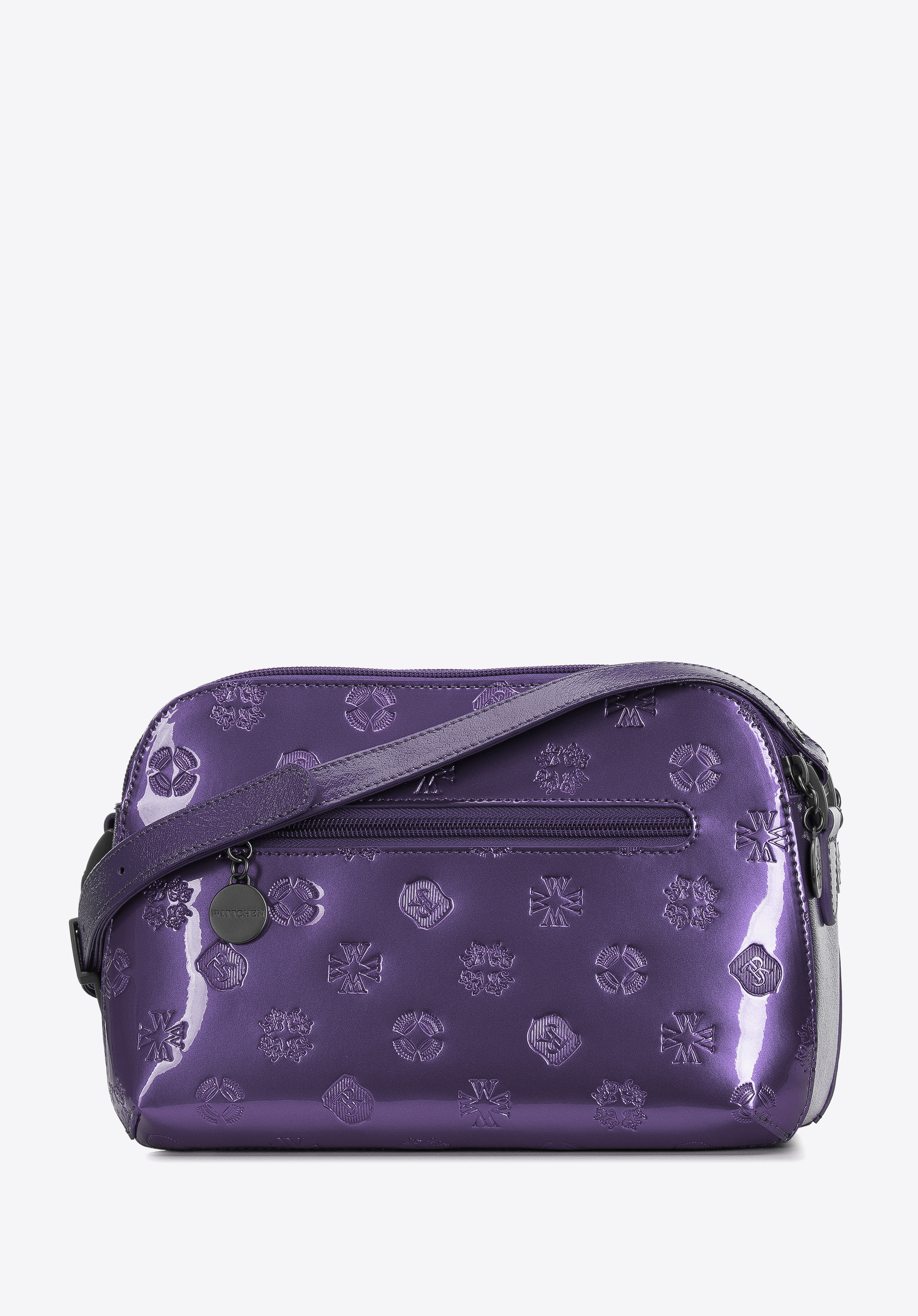 Női táska funkcionális belsővel és a dombormintával tökéletes egységet alkot. Ezt a válltáskát modern, aktív nőknek ajánljuk, akik értékelik a tökéletes szervezést és rendet. Sima, merev falú lakkbőrtáska, melyet WITTCHEN dombornyomott monogramm és ezüst színű matt díszítések ékesítenek. Érdekes a kétféle természetes (lakk és szemcsés) bőr által alkotott összeállítás. Ez a modell 2 jellegzetes színben: fekete és narancs színben kapható.