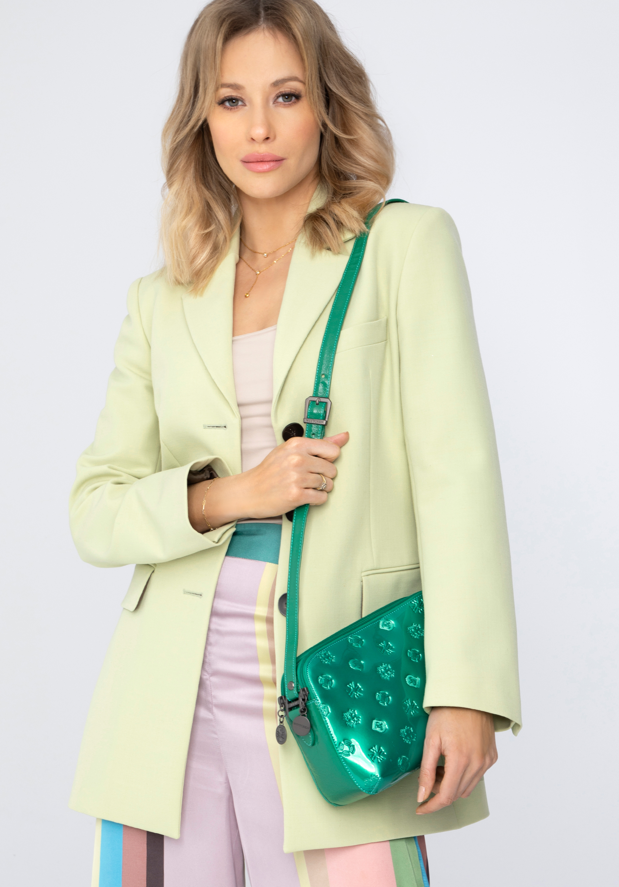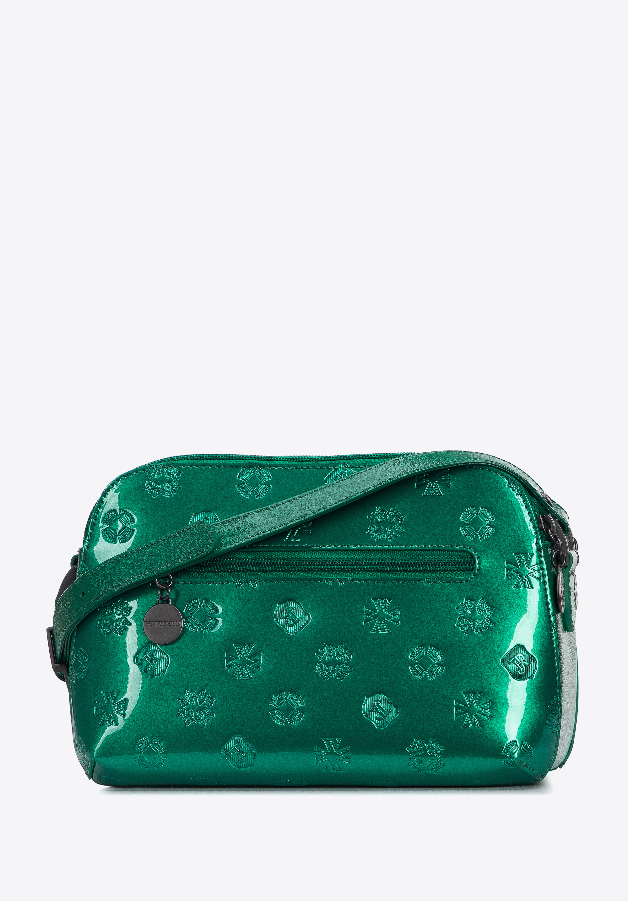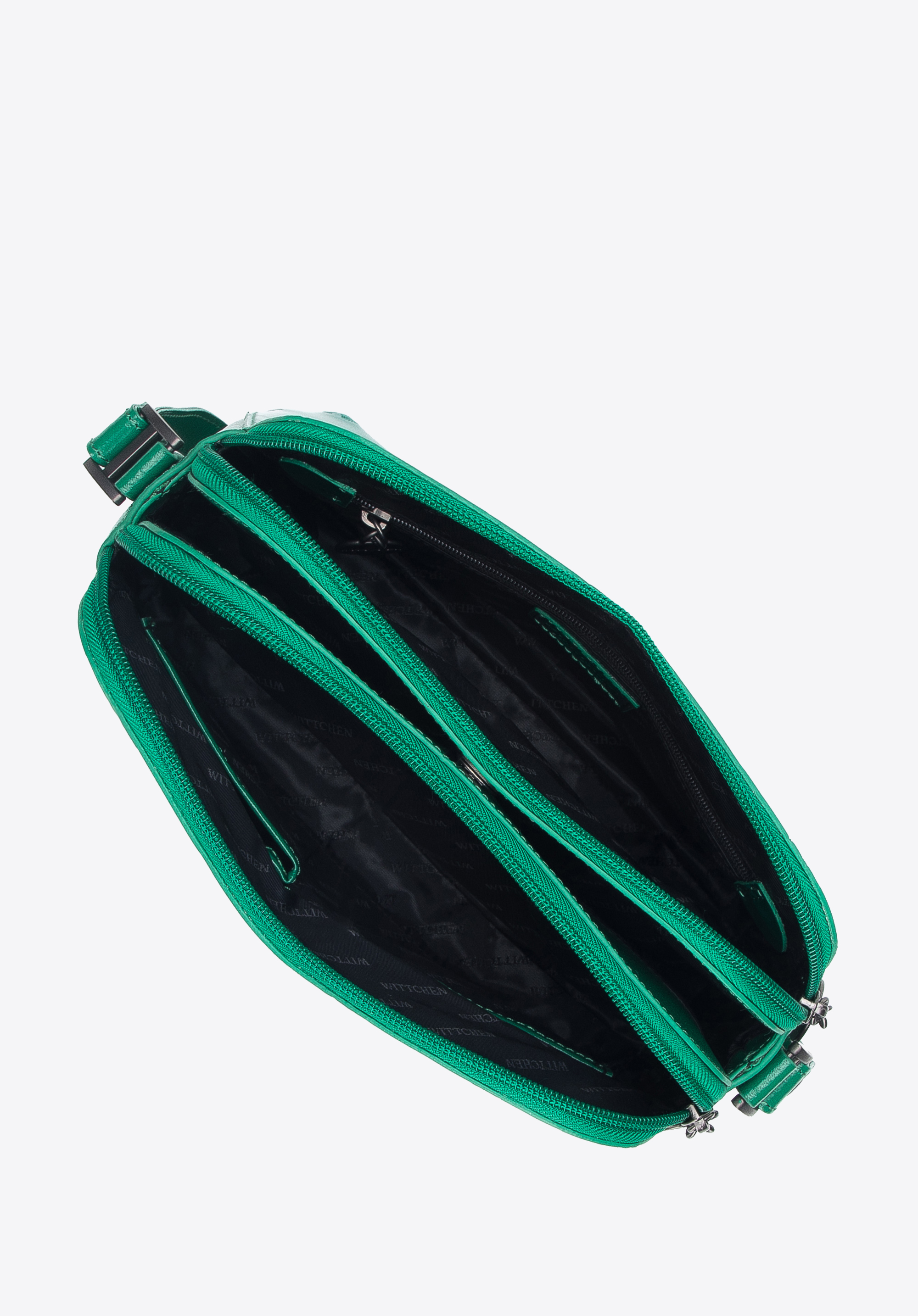 Női táska funkcionális belsővel és a dombormintával tökéletes egységet alkot. Ezt a válltáskát modern, aktív nőknek ajánljuk, akik értékelik a tökéletes szervezést és rendet. Sima, merev falú lakkbőrtáska, melyet WITTCHEN dombornyomott monogramm és ezüst színű matt díszítések ékesítenek. Érdekes a kétféle természetes (lakk és szemcsés) bőr által alkotott összeállítás. Ez a modell 2 jellegzetes színben: fekete és narancs színben kapható.
