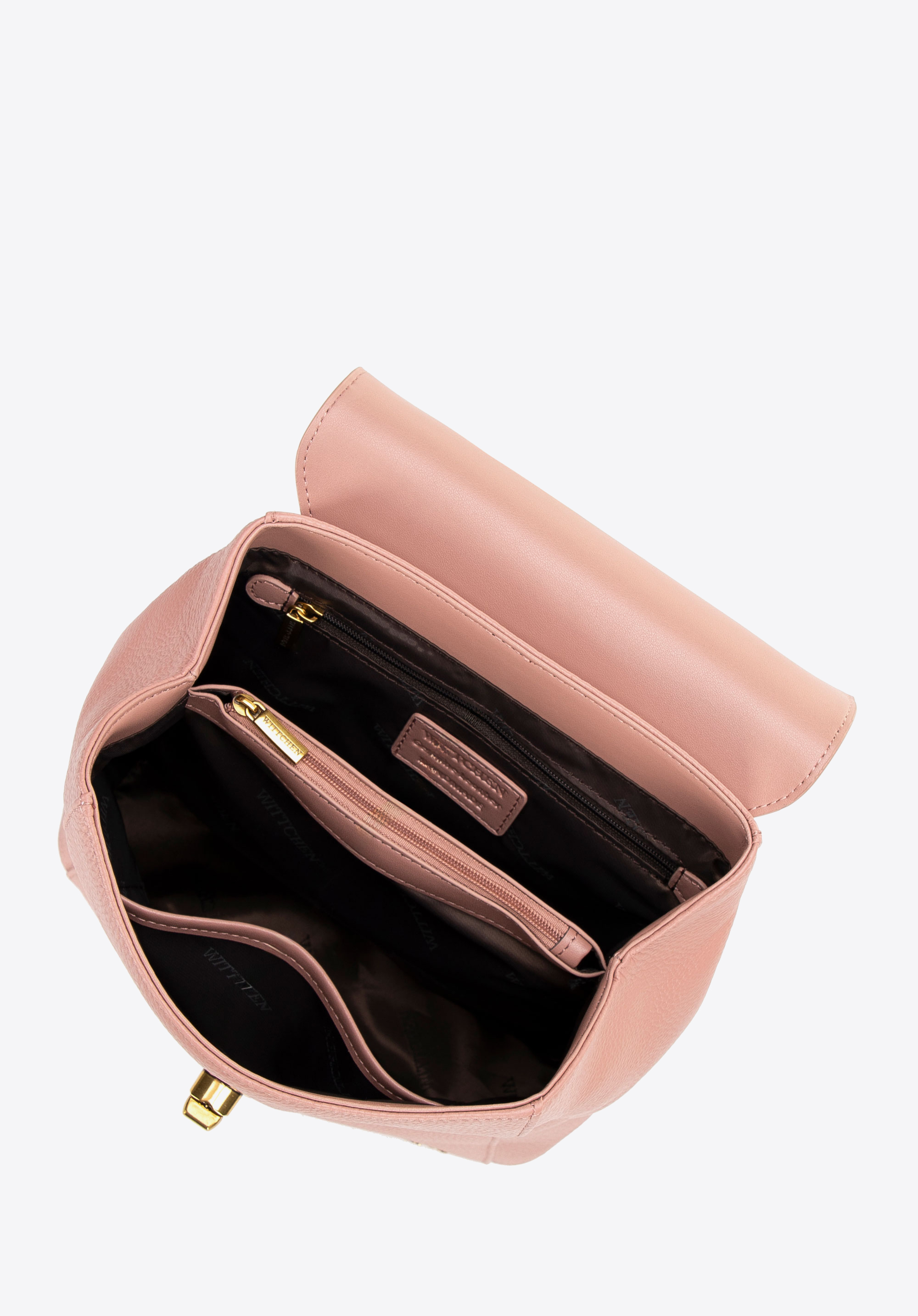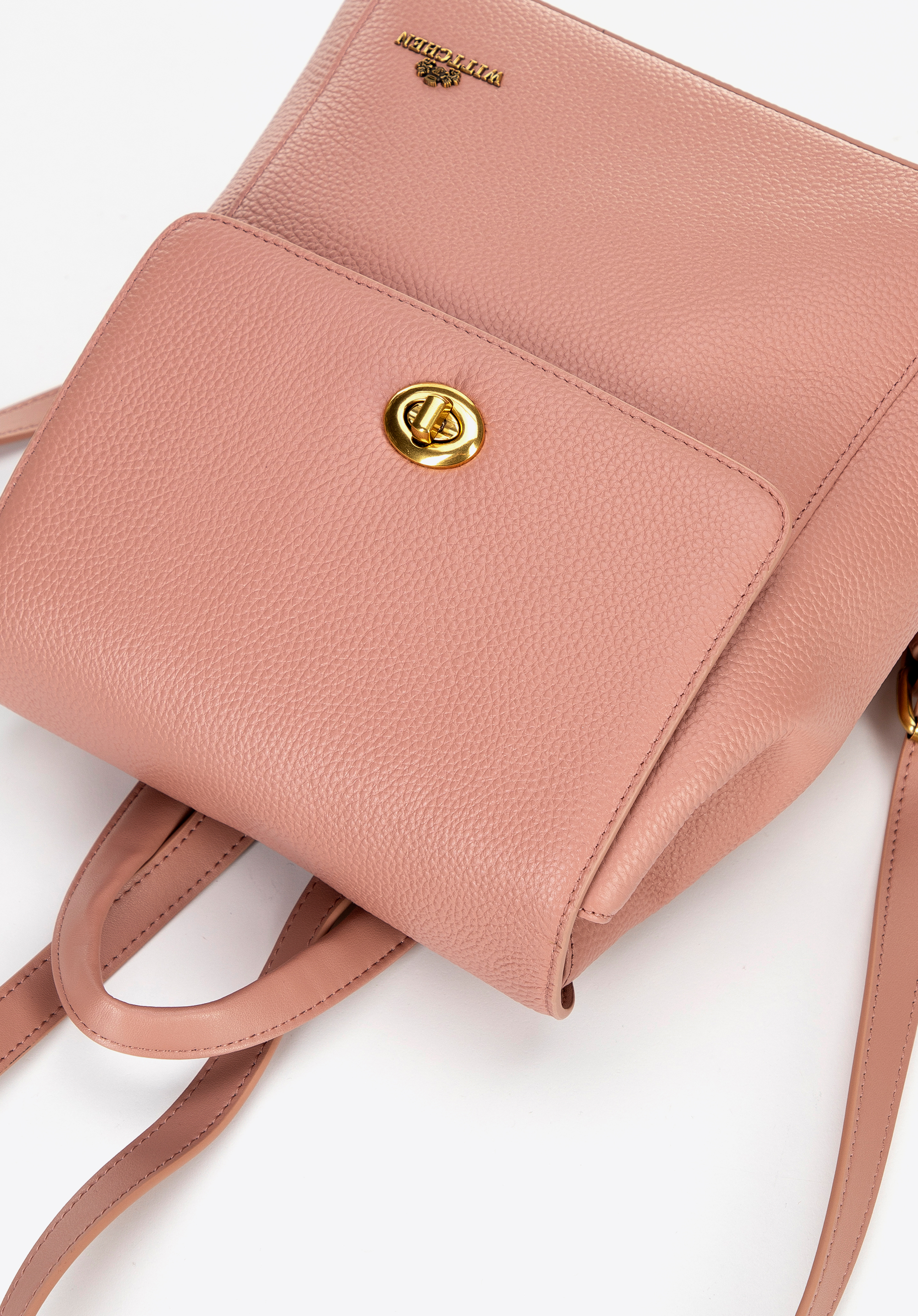 Stílusos természetes bőrből készült hátizsák (bőrszerű mikroszálas anyagból készült fogantyúval és pántokkal), amely ötvözi az eleganciát, a tartósságot és a kivételes funkcionalitást. Modern dizájnját egy csavaros zár emeli ki, amely nem csak biztonságot nyújt, hanem egyedi megjelenést is kölcsönöz. A hátizsák belsejében két cipzáras zsebbel elválasztott rekesz található.