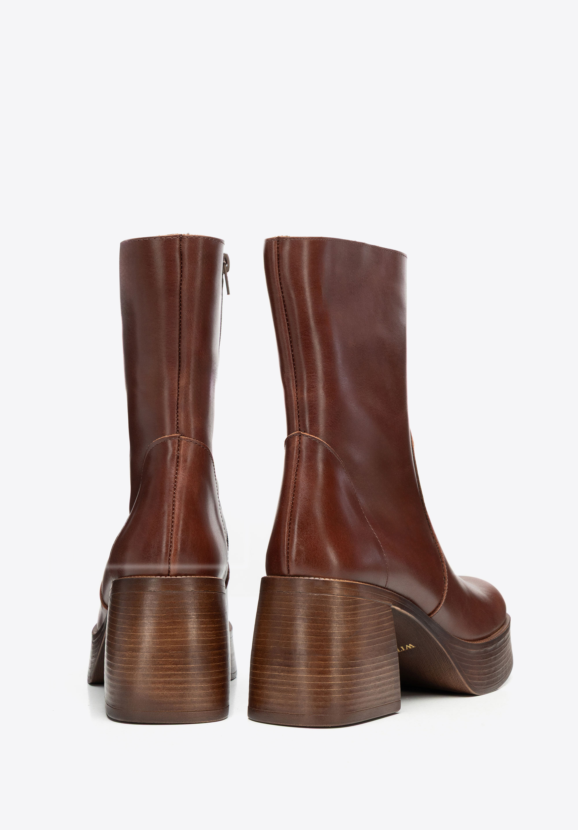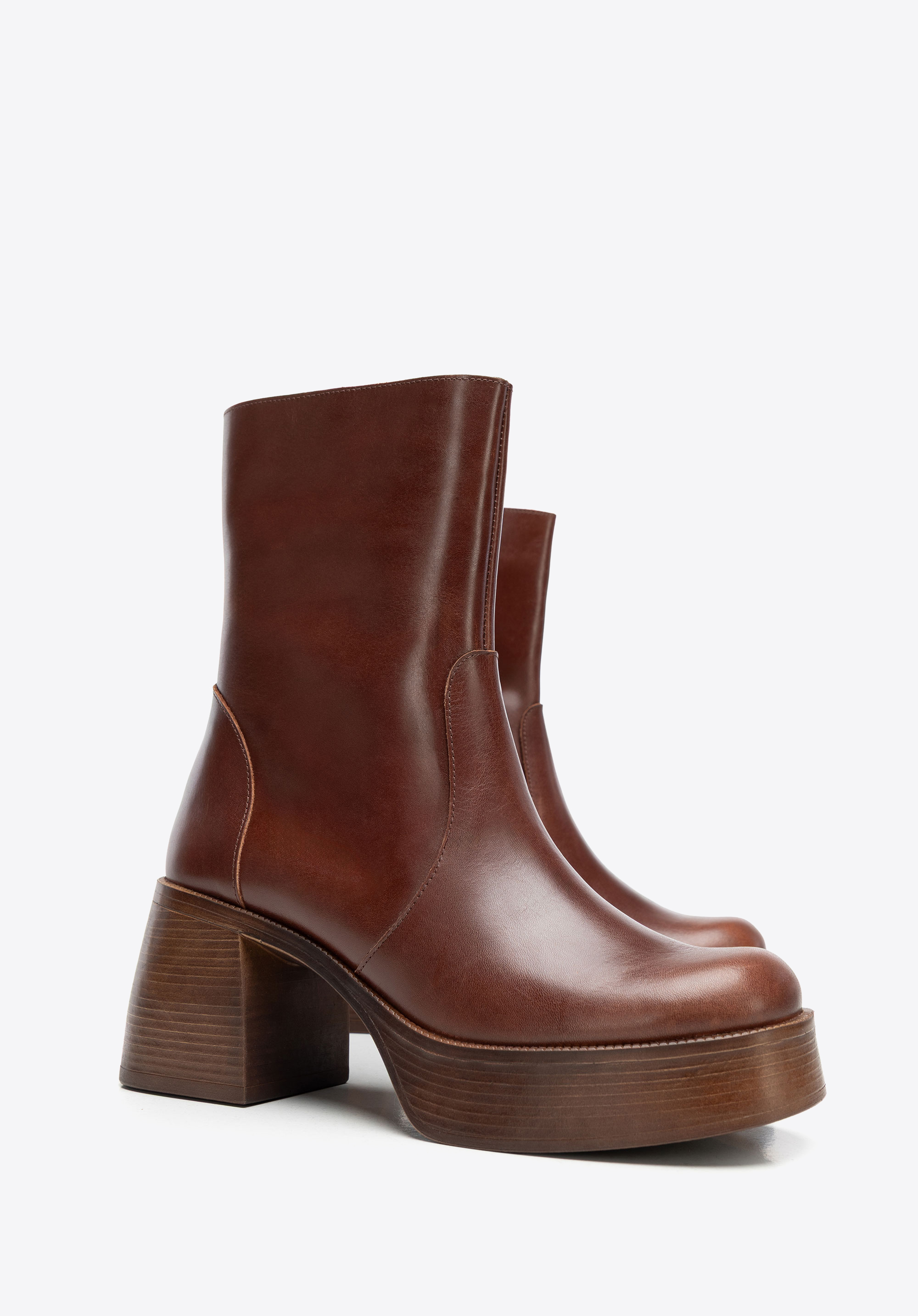 Női természetes bőr bokacsizma magasított szárral 101-D-303-4