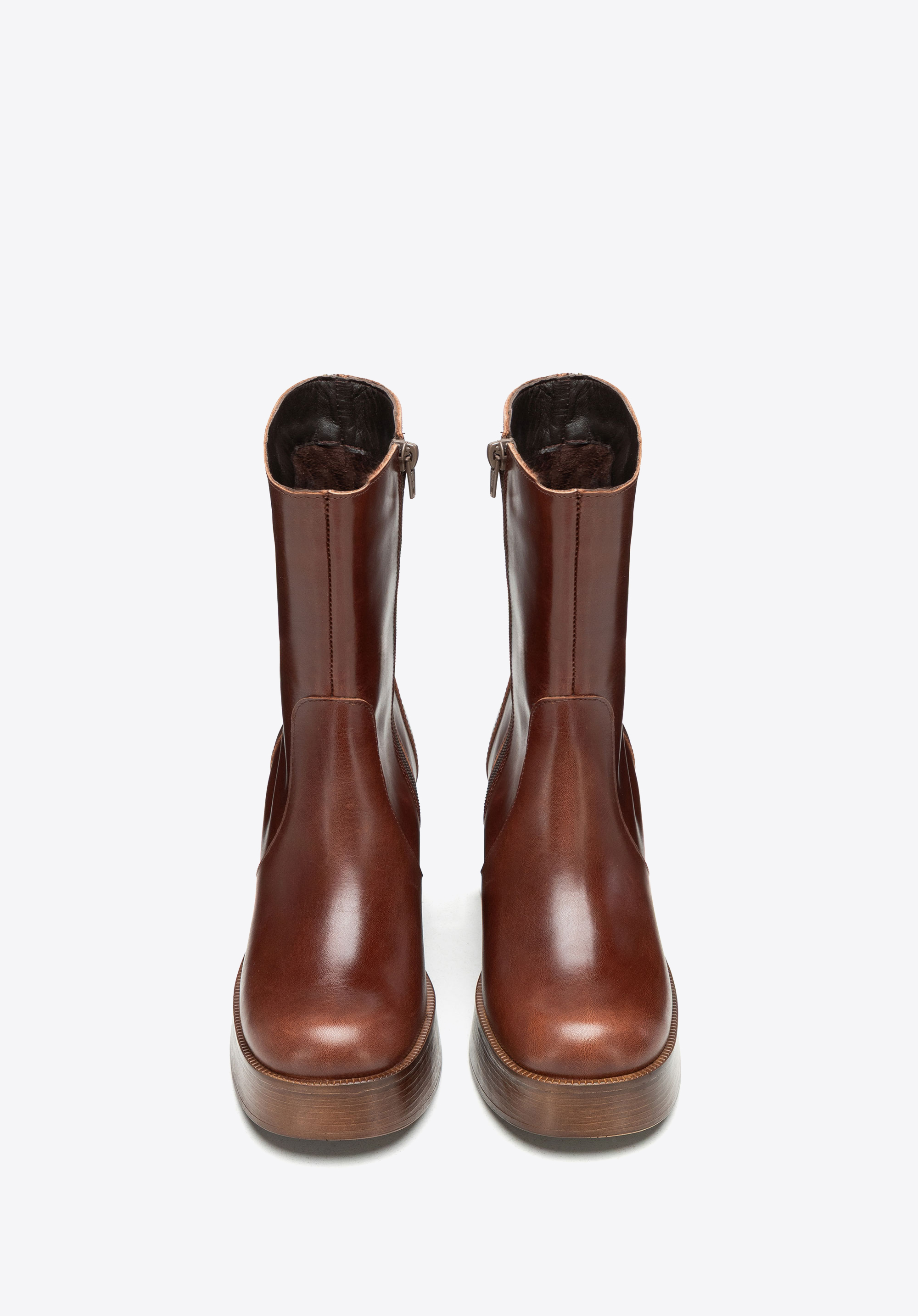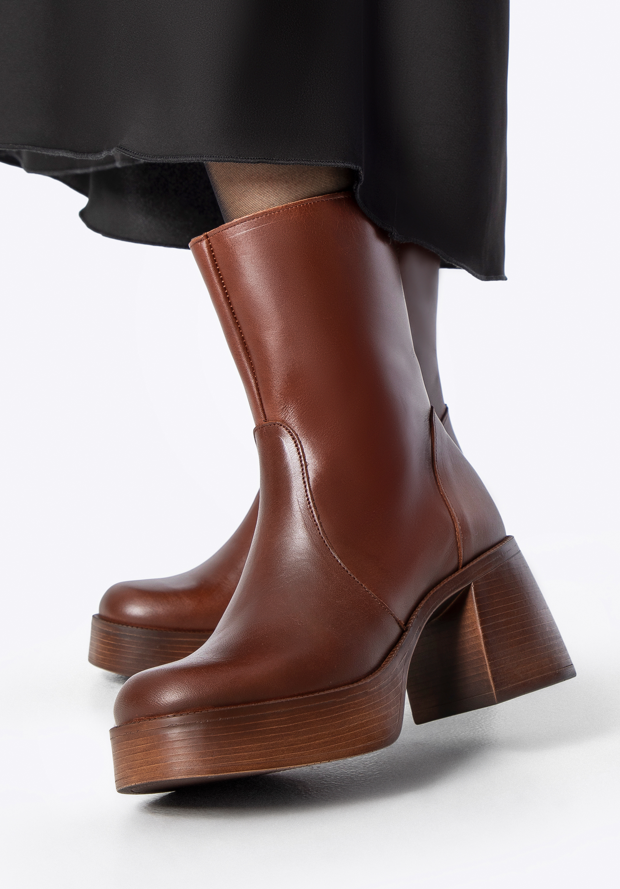 Ha olyan csizmát keresel, ami többet nyújt, mint pusztán kiegészíti a megjelenésedet, akkor ez a tökéletes választás. A puha, természetes bőrből készült, magas szárú cipő szorosan illeszkedik a lábhoz, elegáns, magabiztos sziluettet alkotva. A vastag platform és a blokkos sarok finoman kiemeli a testtartást, minden lépésnél stílusosabbá és magabiztosabbá téve. A rejtett oldalsó cipzár könnyed viseletet kínál, míg a puha bélés kényelmesen öleli körül a lábadat. Ezt a csizmát nem kell bemutatni – csak húzd fel, és hagyd, hogy magáért beszéljen megjelenésével.