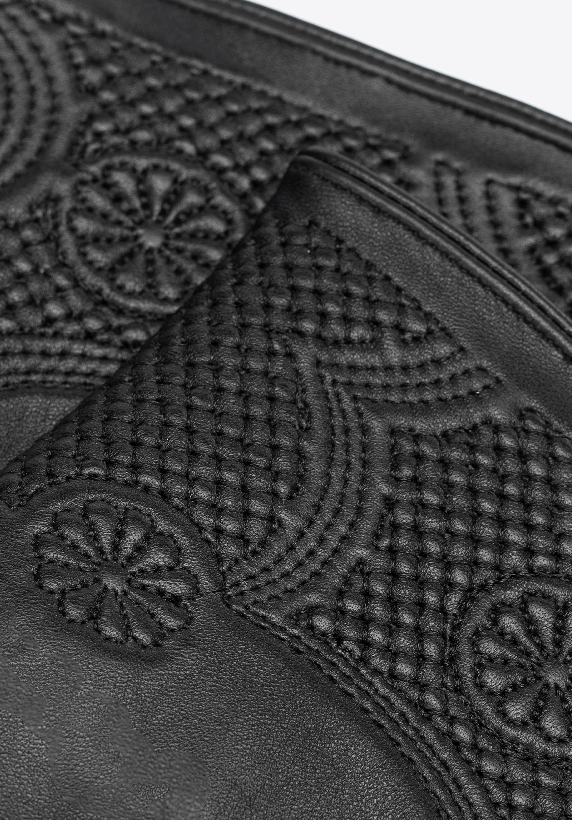 - Kialakítás: A bőrre aprólékosan kidolgozott finom virágminta nőies eleganciát kölcsönöz, kiemelve a kifinomult felületet és az egyéni stílust.