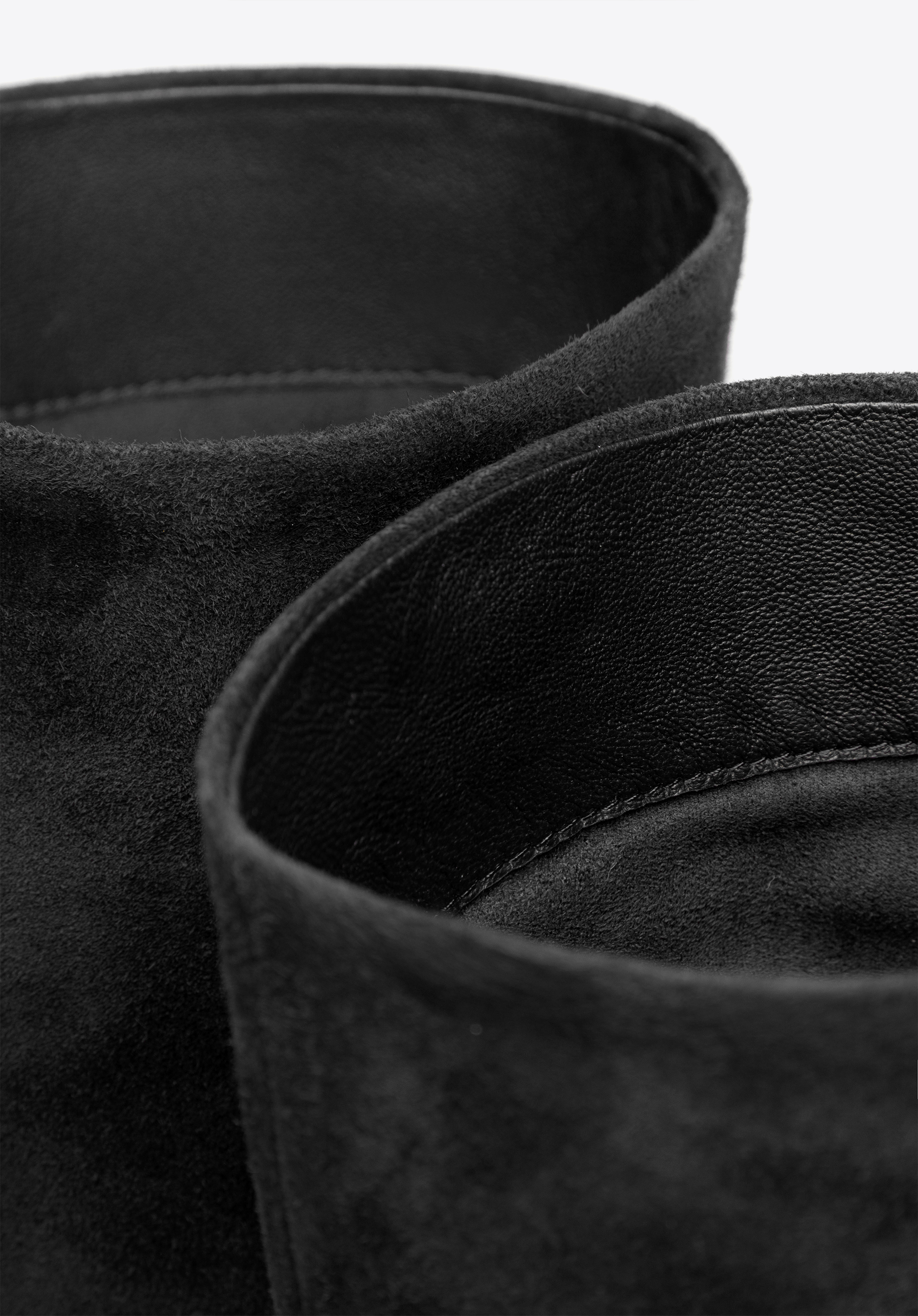 Női természetes szarvasbőr bőr magas sarkú csizma fekete