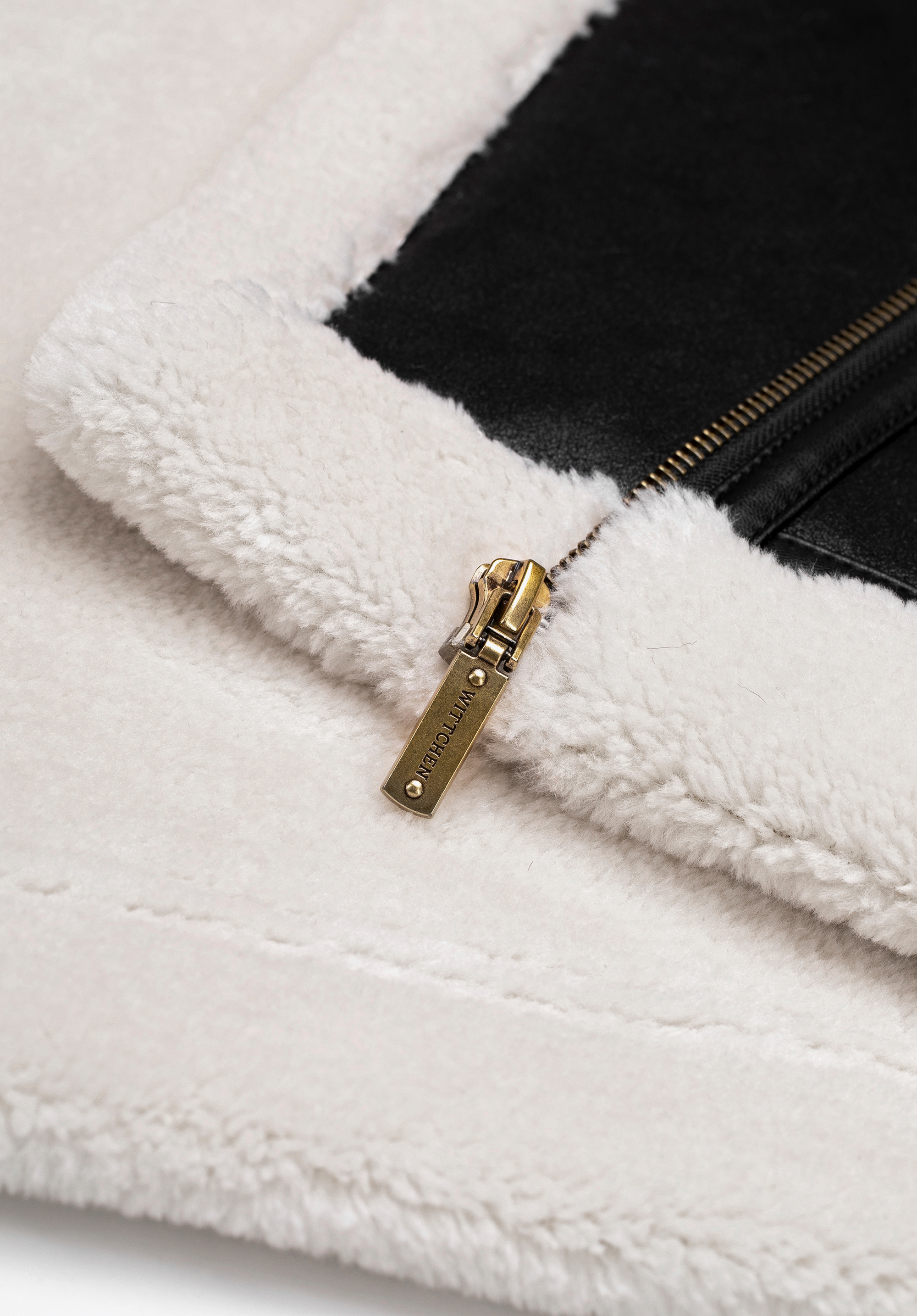 - Aszimmetrikus rögzítés: Az átlósan elhelyezett cipzár modern megjelenést kölcsönöz, és kiemeli a kabát egyedi formáját.