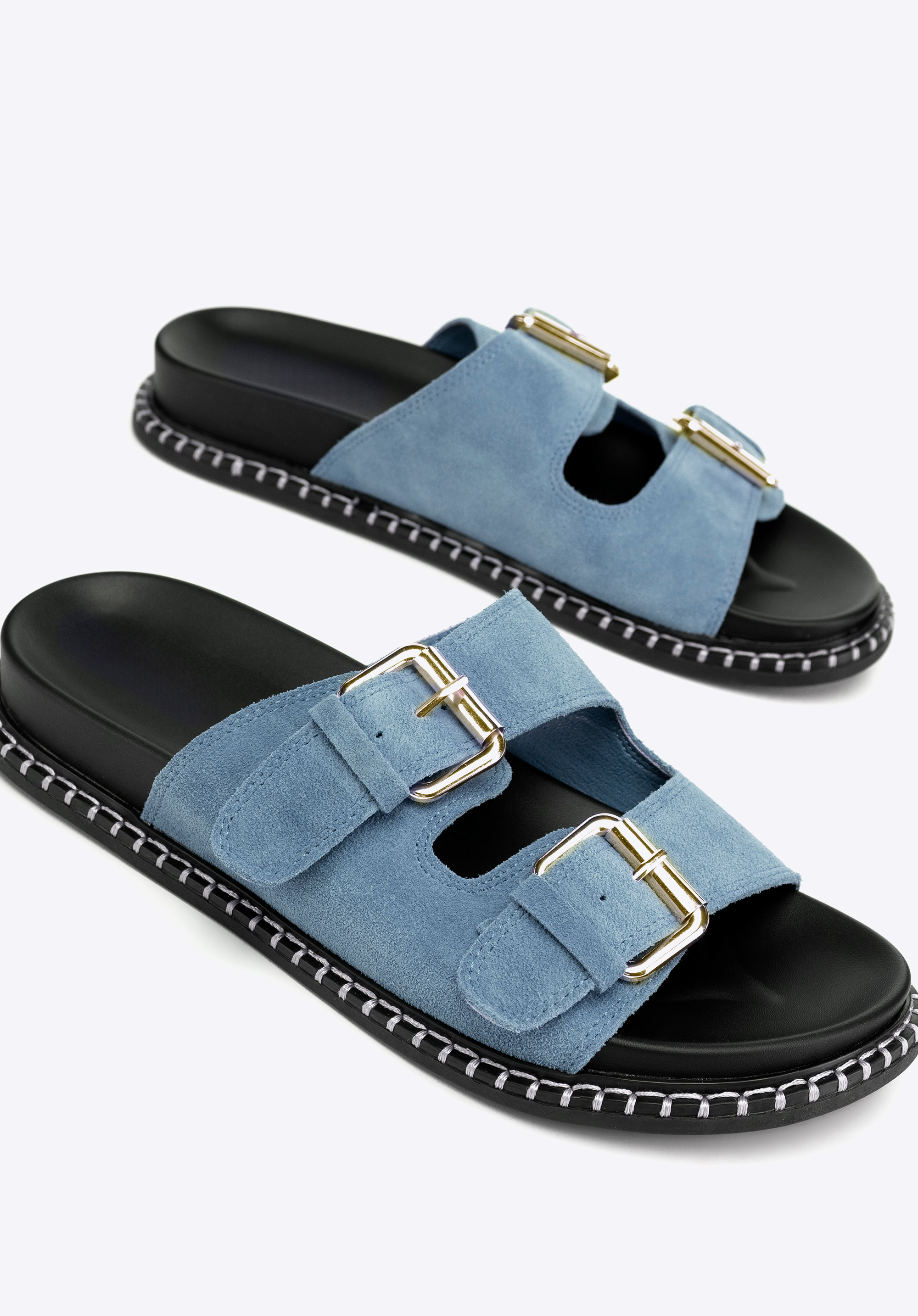 A nyárnak megvannak a maga szabályai, és ez a papucs tökéletesen megfelel nekik! A puha velúrbőr, a széles, állítható pántok és az időtlen dizájn kombinációja elengedhetetlen kellékévé teszi őket a forró napokon. A slip-on stílusnak köszönhetően másodpercek alatt felveheted őket, a lapos sarok pedig egész nap biztosítja a kényelmet – a kedvenc kávézódban elfogyasztott reggeli kávétól a hosszú esti sétákig.