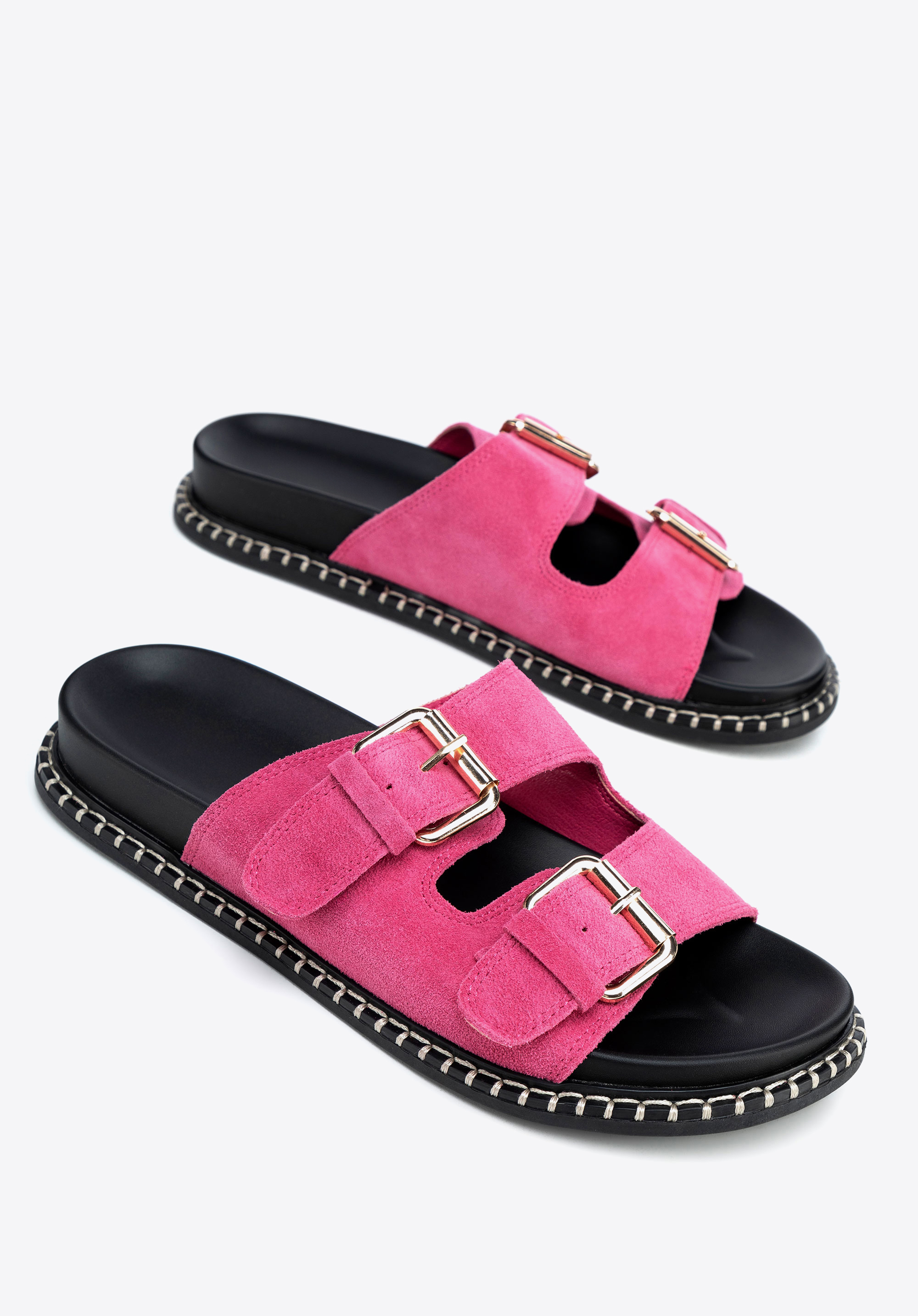 A nyárnak megvannak a maga szabályai, és ez a papucs tökéletesen megfelel nekik! A puha velúrbőr, a széles, állítható pántok és az időtlen dizájn kombinációja elengedhetetlen kellékévé teszi őket a forró napokon. A slip-on stílusnak köszönhetően másodpercek alatt felveheted őket, a lapos sarok pedig egész nap biztosítja a kényelmet – a kedvenc kávézódban elfogyasztott reggeli kávétól a hosszú esti sétákig.