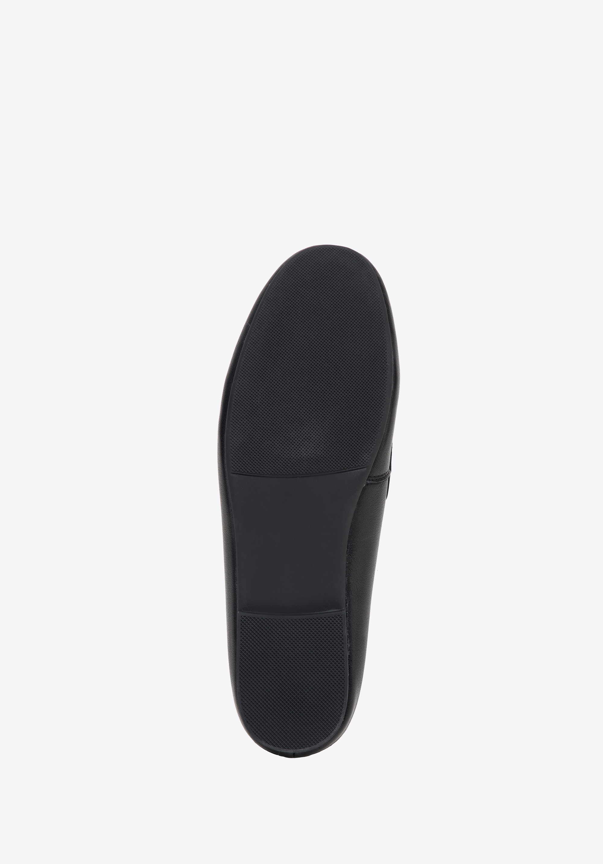 Ezek a lábbelik remek választást nyújtanak a klasszikusok kedvelőinek. Az elülső rész jellegzetesen szegélyezett orrával és dekoratívan dombornyomott, félkör alakú csatjával a mokaszinokra utal. A cipő kiváló minőségű természetes bőrből készült. A puha talpbetét gondoskodik a láb kényelméről, így órákon át kényelmesen sétálhatsz benne. Viseld kedvenc széles szárú farmereddel és pólóval vagy minidresszel - minden helyzetben divatosan egészítik ki az öltözéked. A csatos nőimule cipők eredeti cipők, melyekkel minden nap különlegesen fogsz festeni.