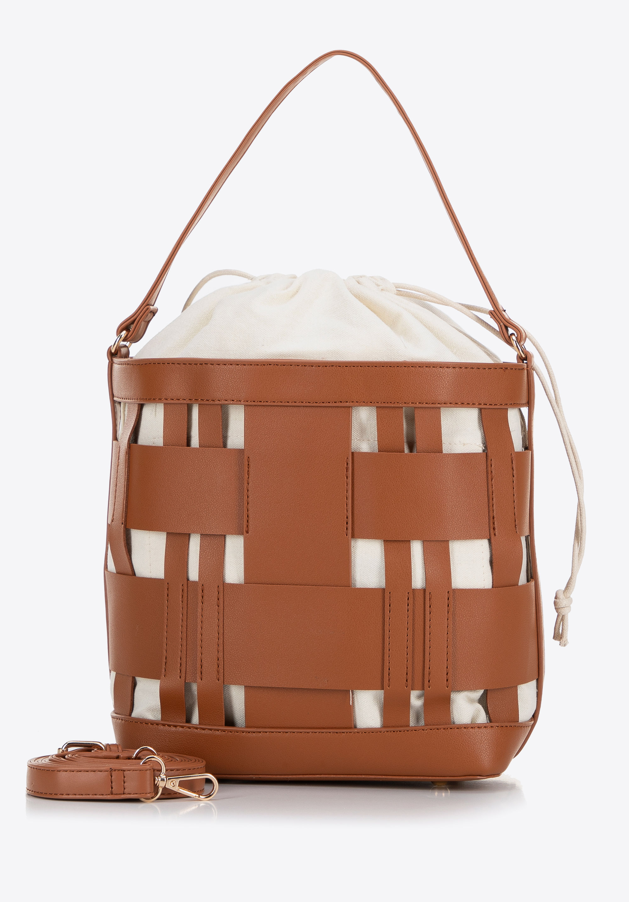 Lépj be a könnyed elegancia és laza stílus világába bucket bag táskánkkal, amely tökéletesen ötvözi a bohó szellemiséget a mindennapi praktikummal. Ez az ökobőrből készült táska szövött textúrájával tűnik ki, amely jellegzetes, művészi hatást ad a terméknek. A könnyű pamut bélés gyönyörű kontrasztot alkot a külsővel, bájos akcentust hozva létre, amely minden pillanatot különlegessé varázsol ezzel a táskával. Élvezd a kényelmet, a stílust és a funkcionalitást – mindezt egyben!