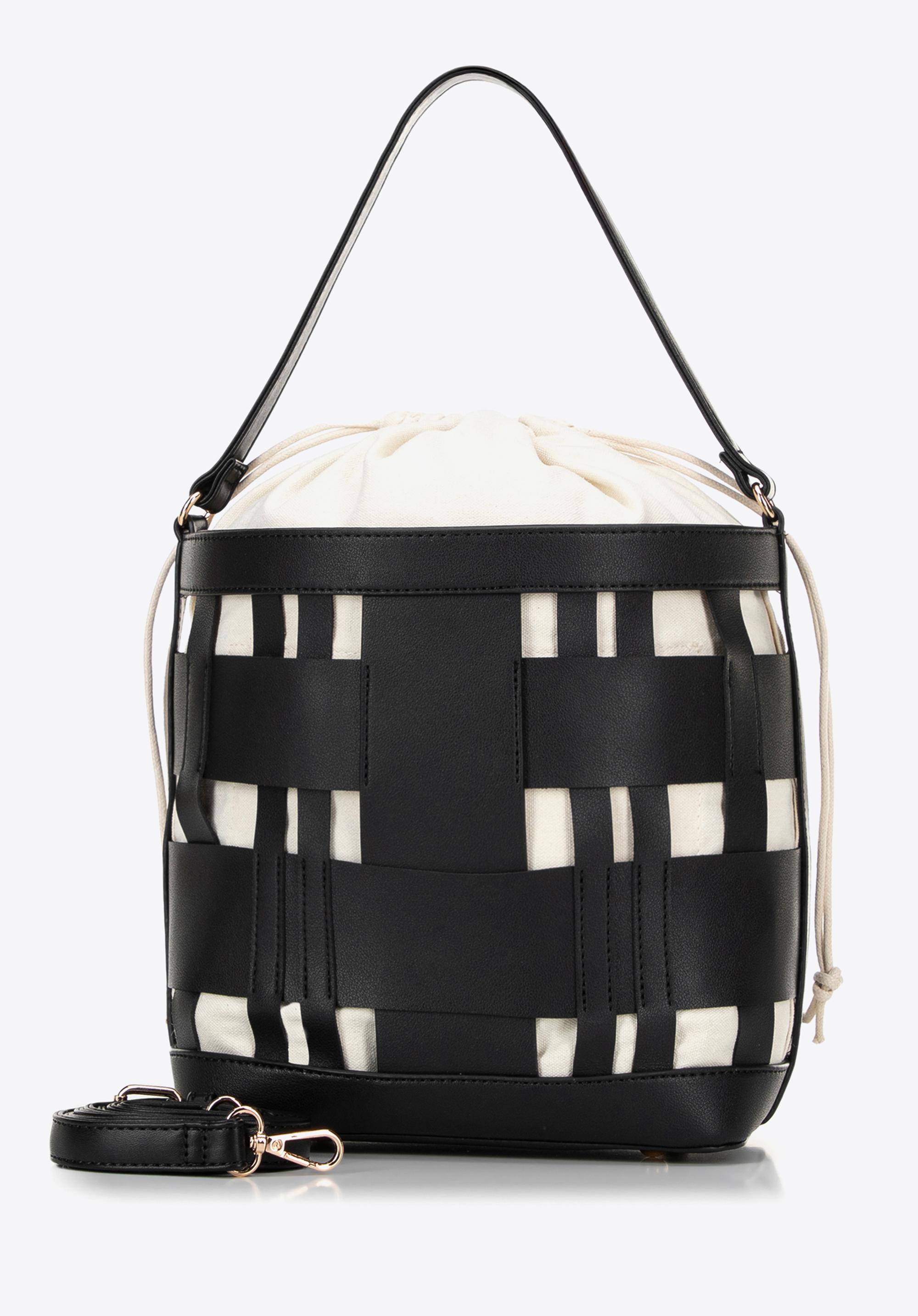 Lépj be a könnyed elegancia és laza stílus világába bucket bag táskánkkal, amely tökéletesen ötvözi a bohó szellemiséget a mindennapi praktikummal. Ez az ökobőrből készült táska szövött textúrájával tűnik ki, amely jellegzetes, művészi hatást ad a terméknek. A könnyű pamut bélés gyönyörű kontrasztot alkot a külsővel, bájos akcentust hozva létre, amely minden pillanatot különlegessé varázsol ezzel a táskával. Élvezd a kényelmet, a stílust és a funkcionalitást – mindezt egyben!