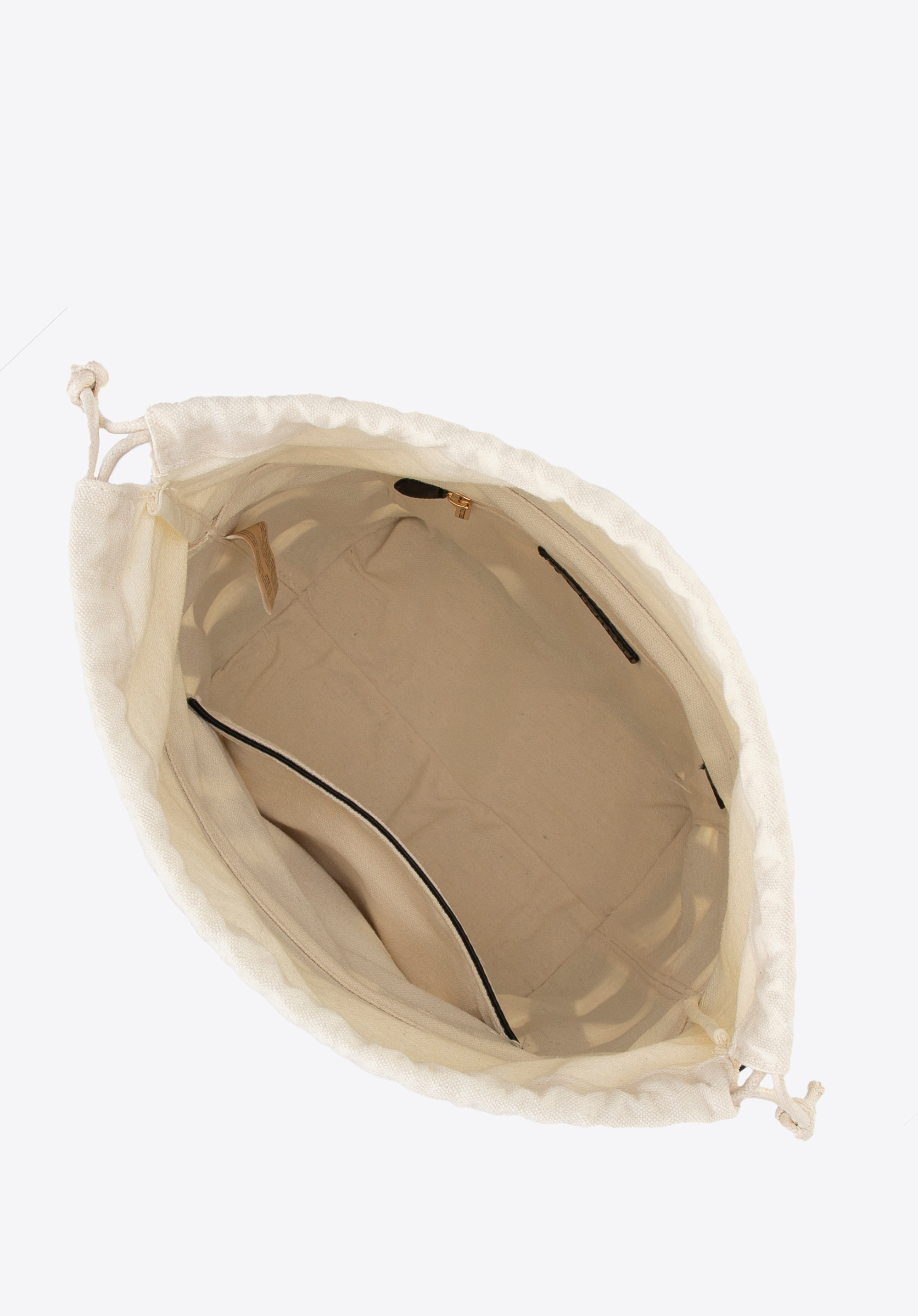 - Könnyű pamut bélés: Gyönyörű kontraszt a kézitáska külsejével, így a belső teret szellősnek és tágasnak fogod érezni.