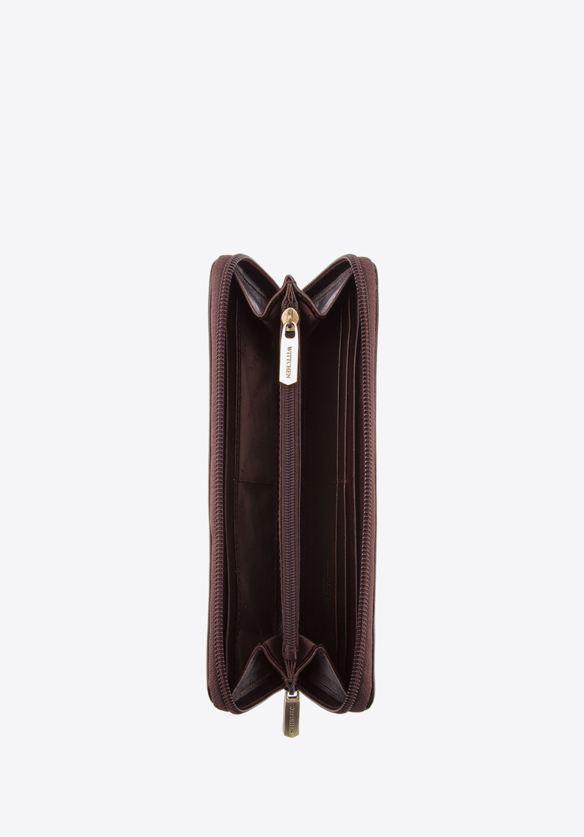 Stílusos, cipzárral zárható nagy női irattárca szemcsés bőrből. Az irattárca elejét óarany színű, WITTCHEN címeres fémlap díszíti. Vitathatatlan előnye az ergonomikus design és a tökéletes minőségű kidolgozás.