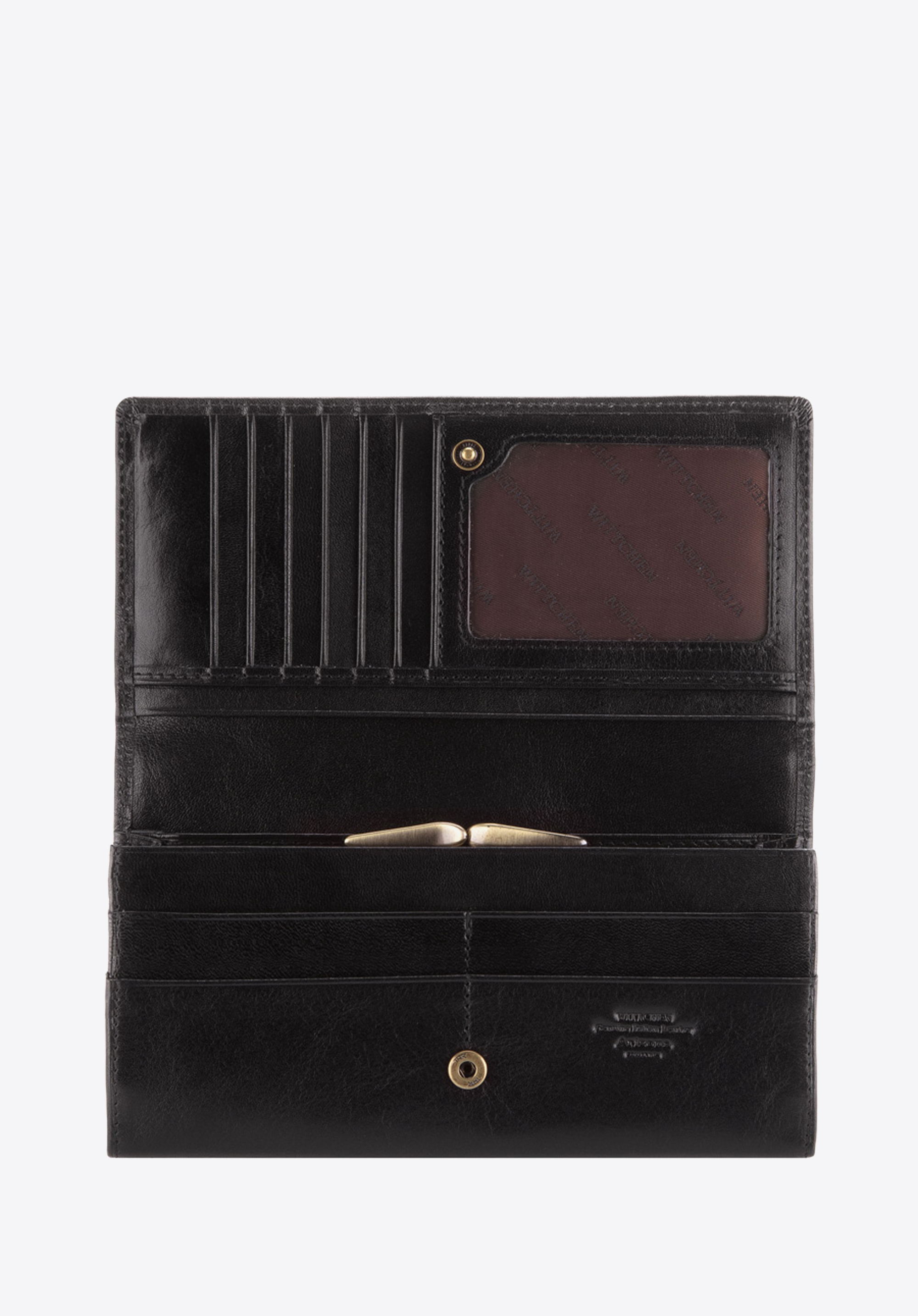 Ízlésesen megtervezett, nagy pénztárca magas minőségű szemcsés bőrből. Nagy gondossággal megvarrt pénztárca, ideális kiegészítő olyan hölgyek számára, akik értékelik a precíz kidolgozást és a tetszetős stílust.