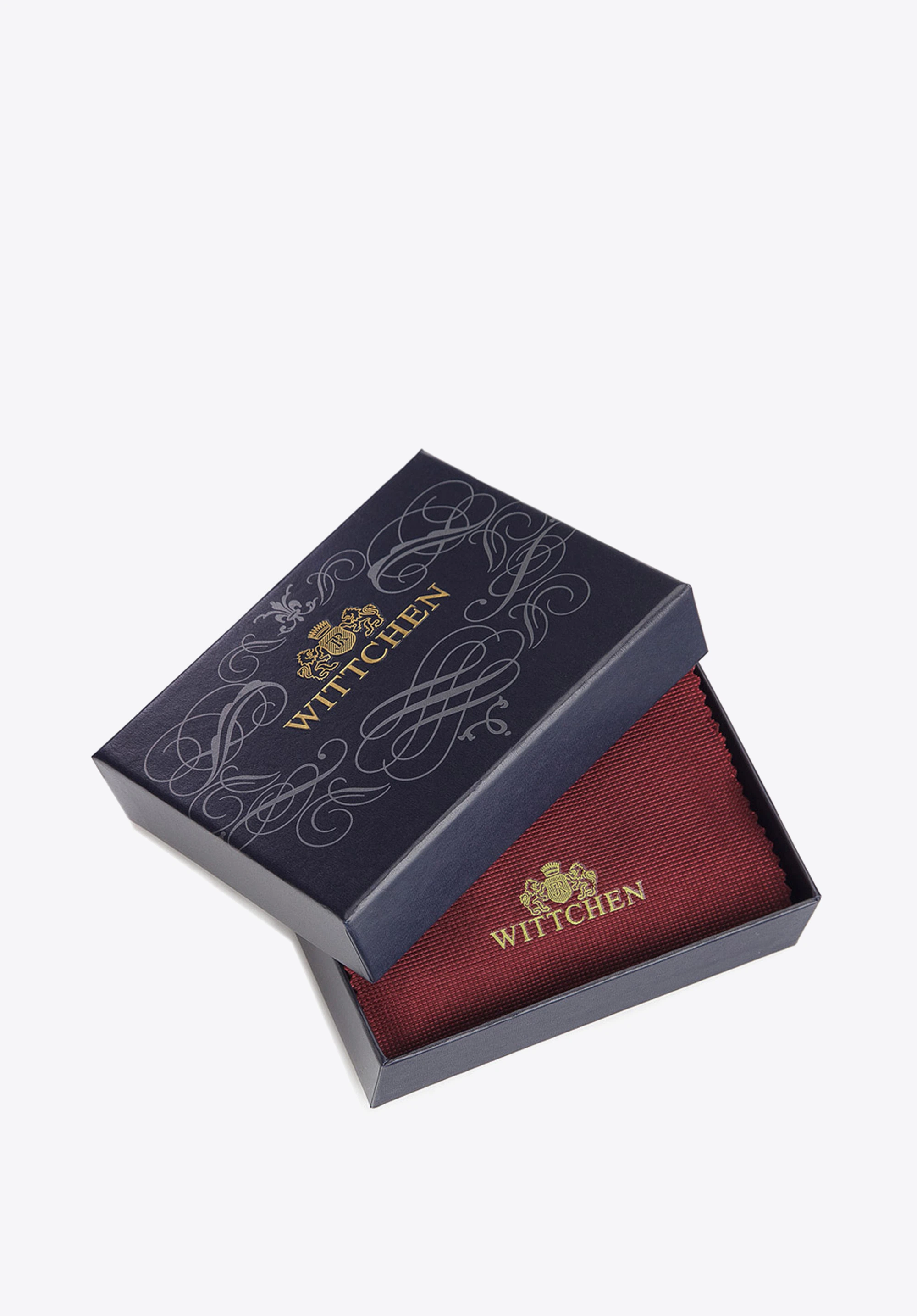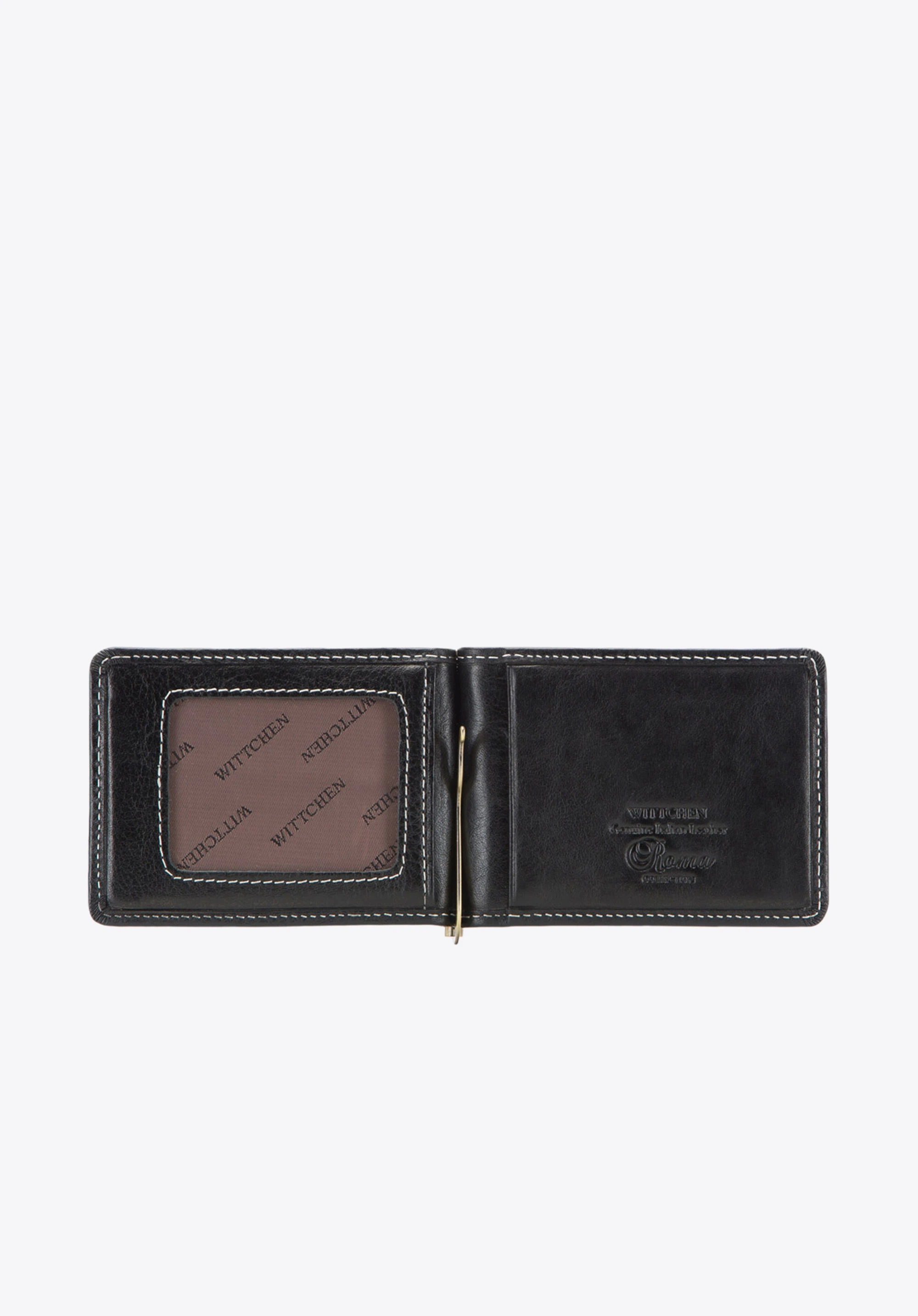Nagy gondossággal és esztétikusan kidolgozott, kézzel készített fekete papírpénztartó tartós, finom fényű borjúbőrből. Logója – arany színű, WITTCHEN címeres fémlap – exkluzivitást, míg bevarrásai modern jelleget kölcsönöznek neki. WITTCHEN logós exkluzív csomagolásban.