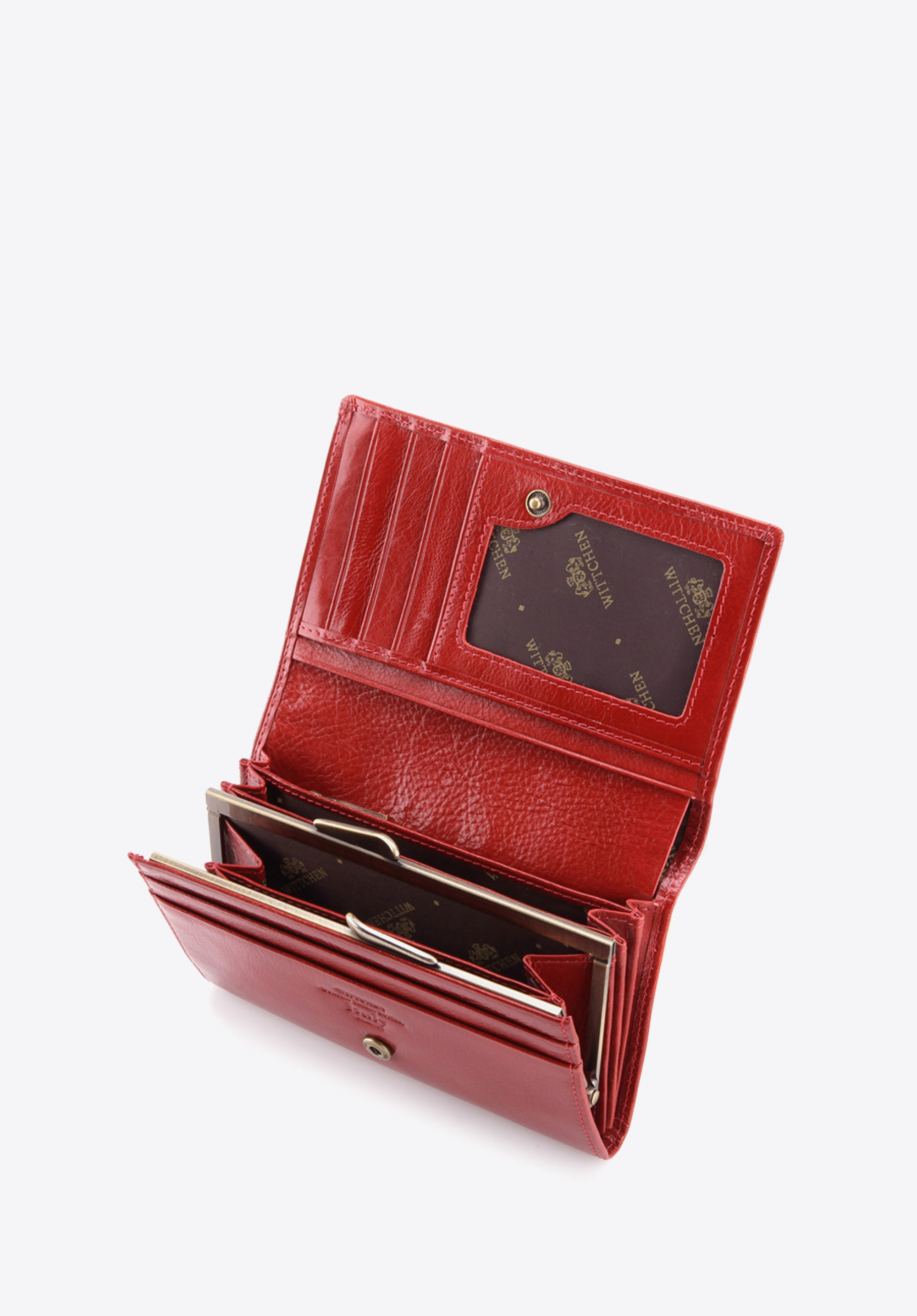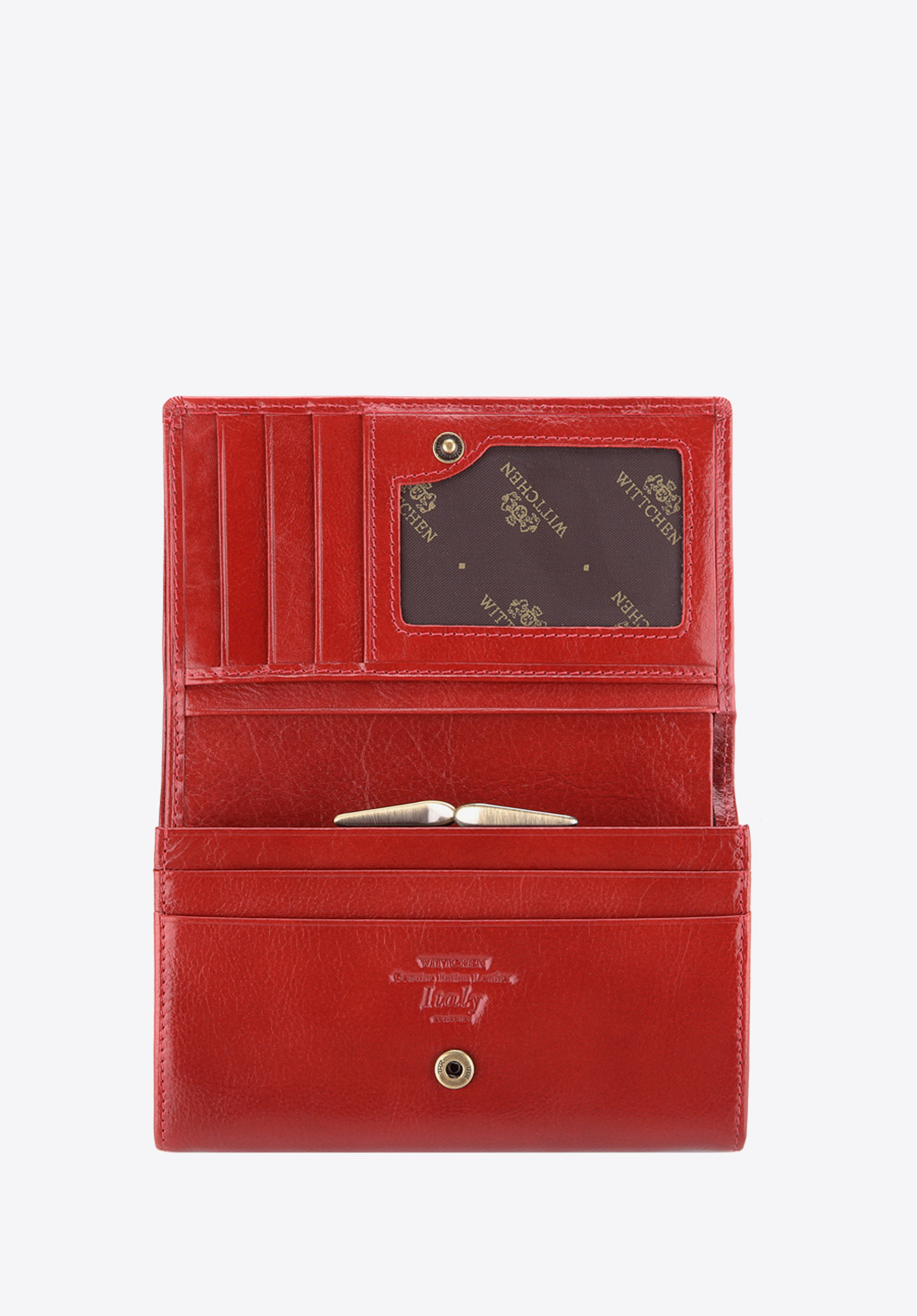 Elegáns és tágas női pénztárca nagy szakértelemmel kidolgozva puha borjúbőrből. Ez a modell megfelel a klasszikus stílust és funkcionális megoldásokat kedvelő hölgyek ízlésének.
