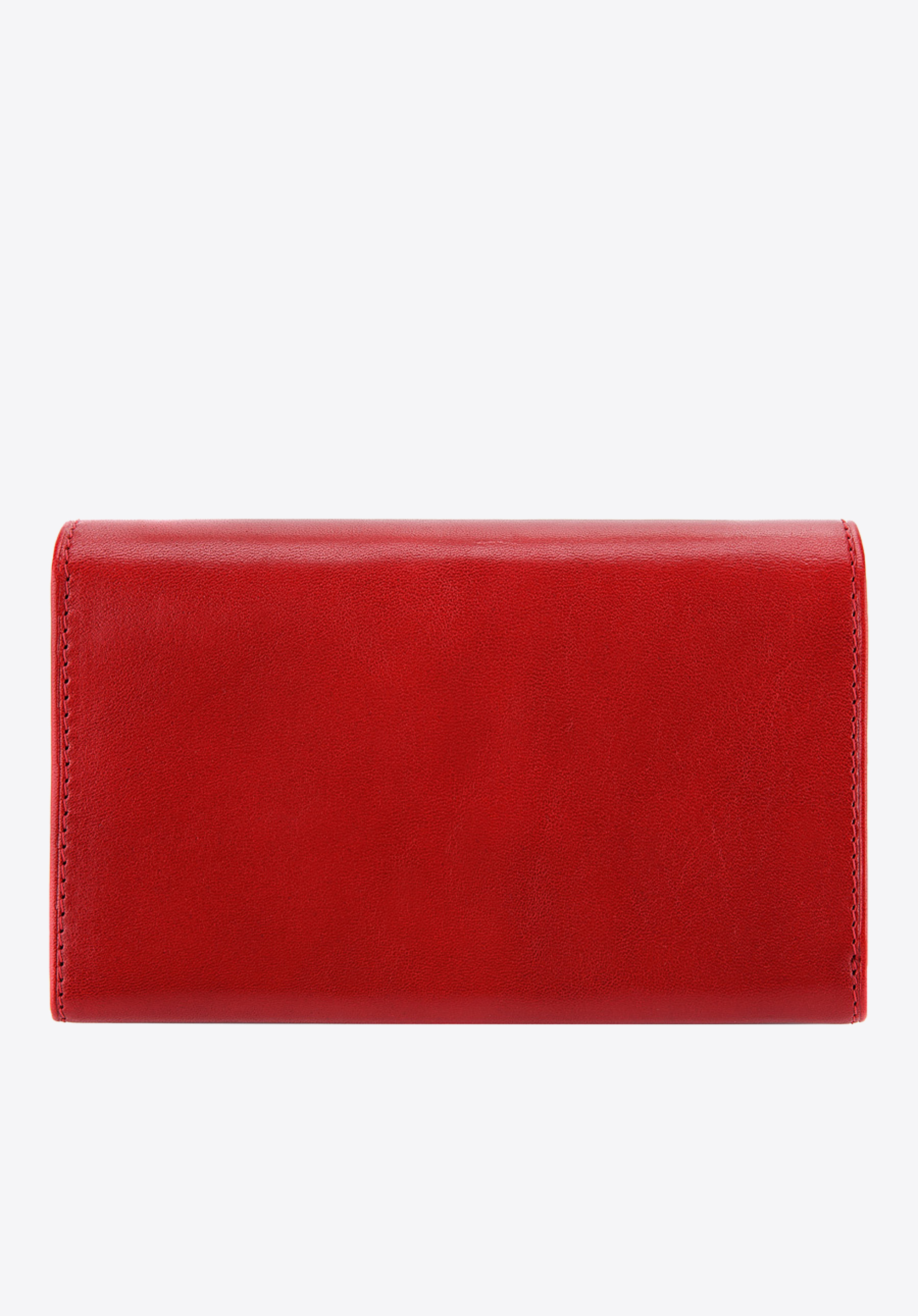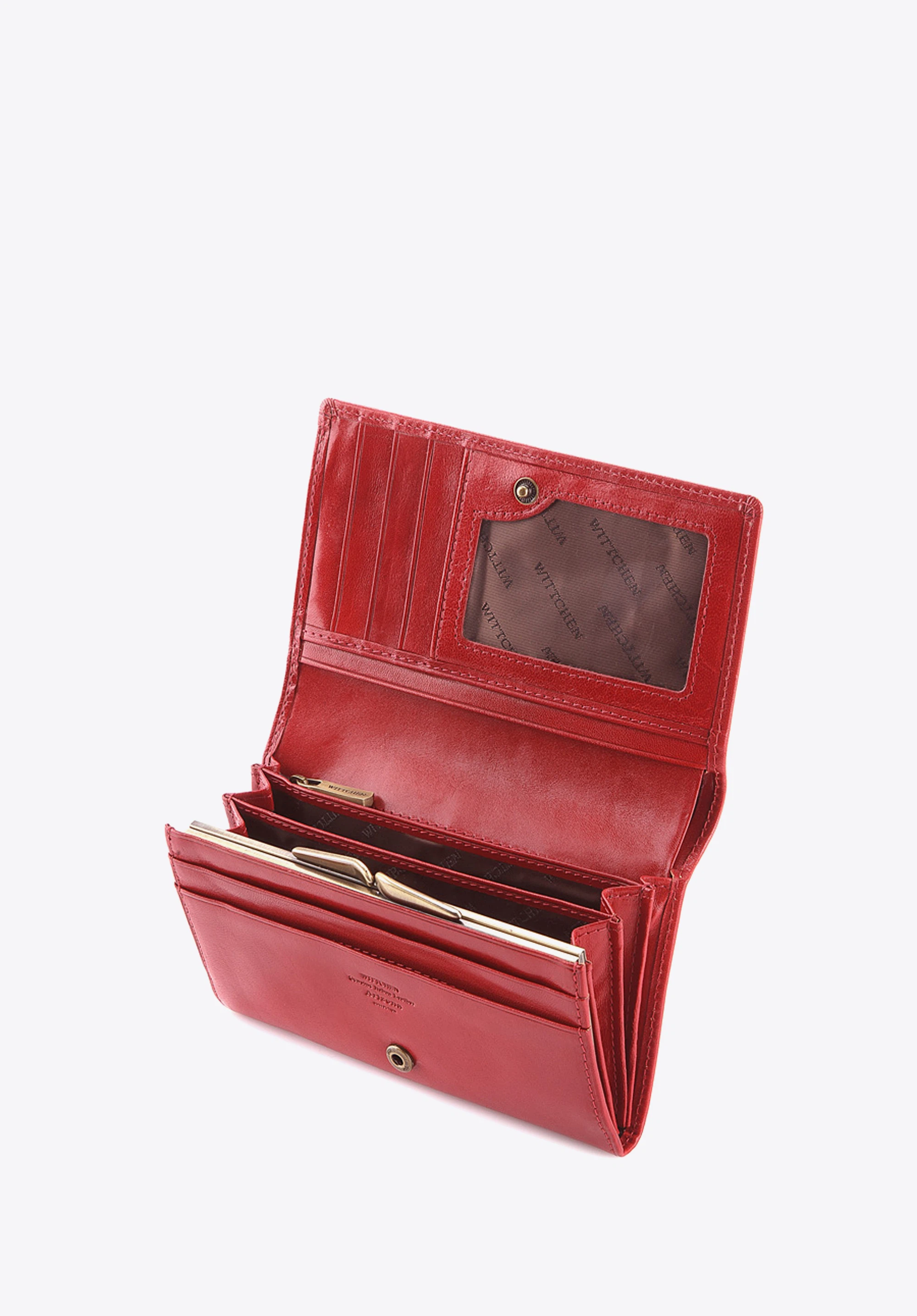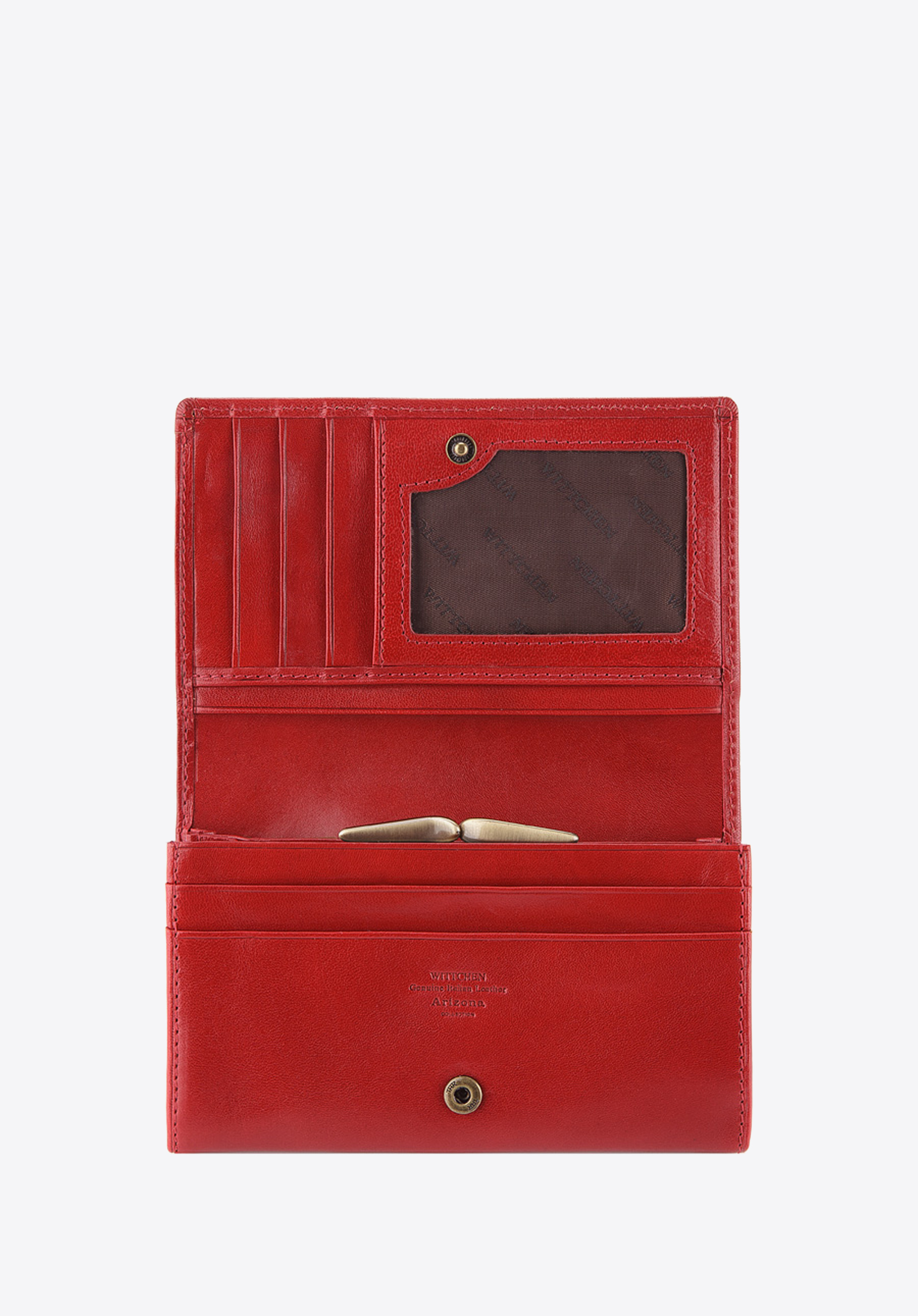 Nagy méretű női pénztárca, érdekes mintázat és rendkívüli funkcionalitás ötvözete. Tartós, enyhén fényes borjúbőrből kézzel készített, exkluzív darab. A pénztárca kitűnő belső kialakítása kényelmesebbé teszi használatát. Ideális kiegészítő olyan hölgyek számára, akik értékelik a páratlan precizitást és a klasszikus mintázatot.