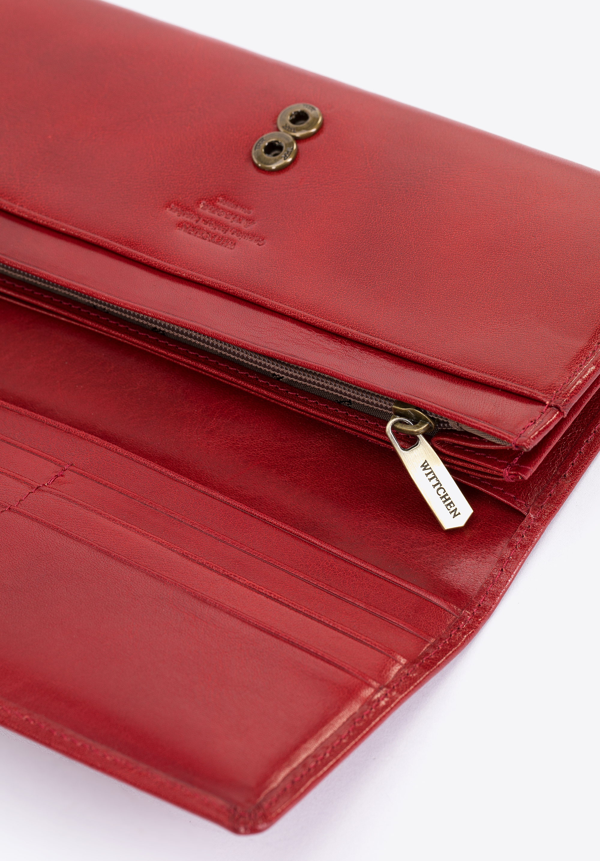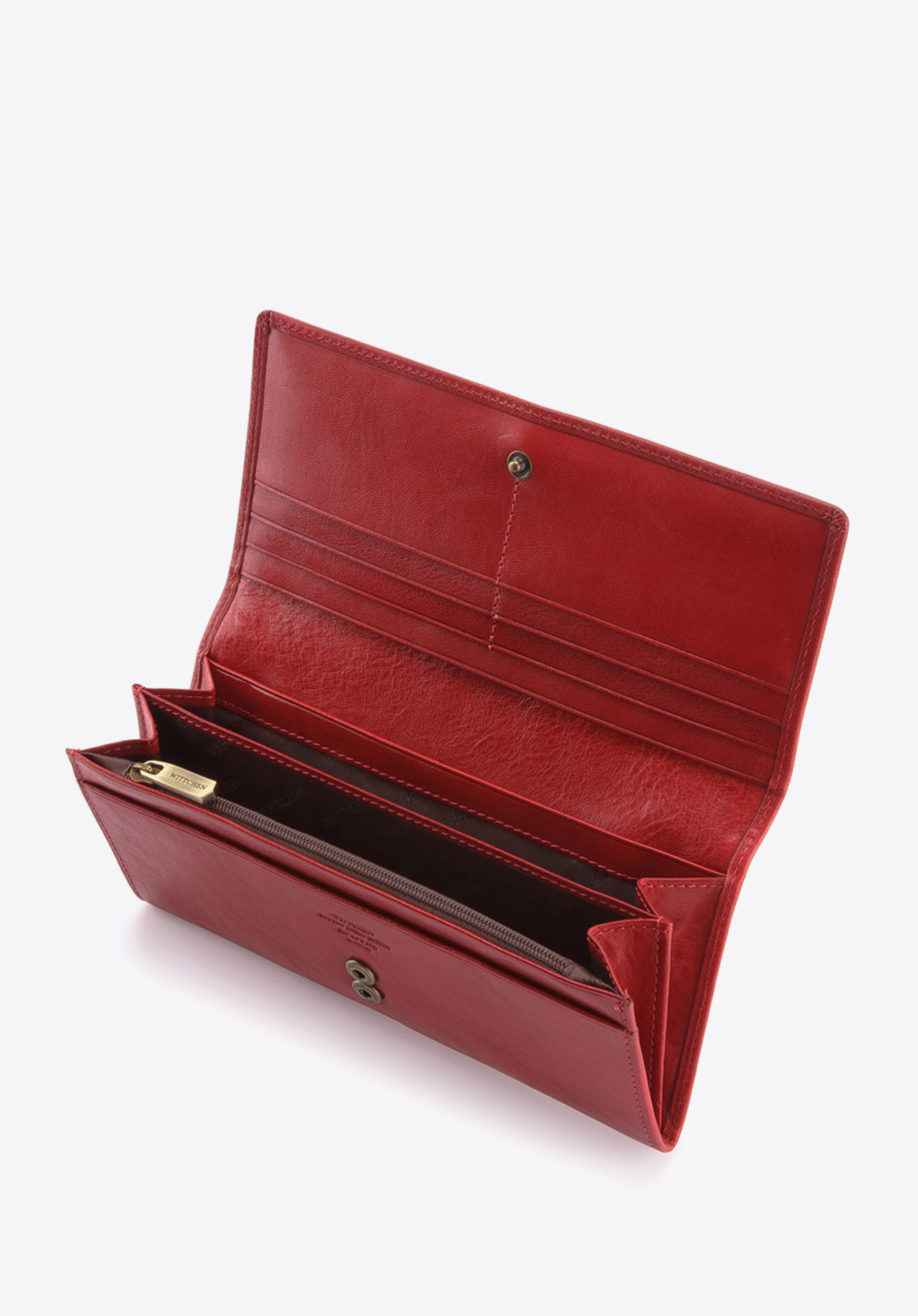 Nagy női irattárca nagy gondossággal és esztétikusan kidolgozott természetes bőrből, kártyák, papírpénz és iratok kényelmes tárolására szánt, divatos kiegészítő. Rendívüli funkcionalitás és időtálló klasszikus stílus ötvözete.