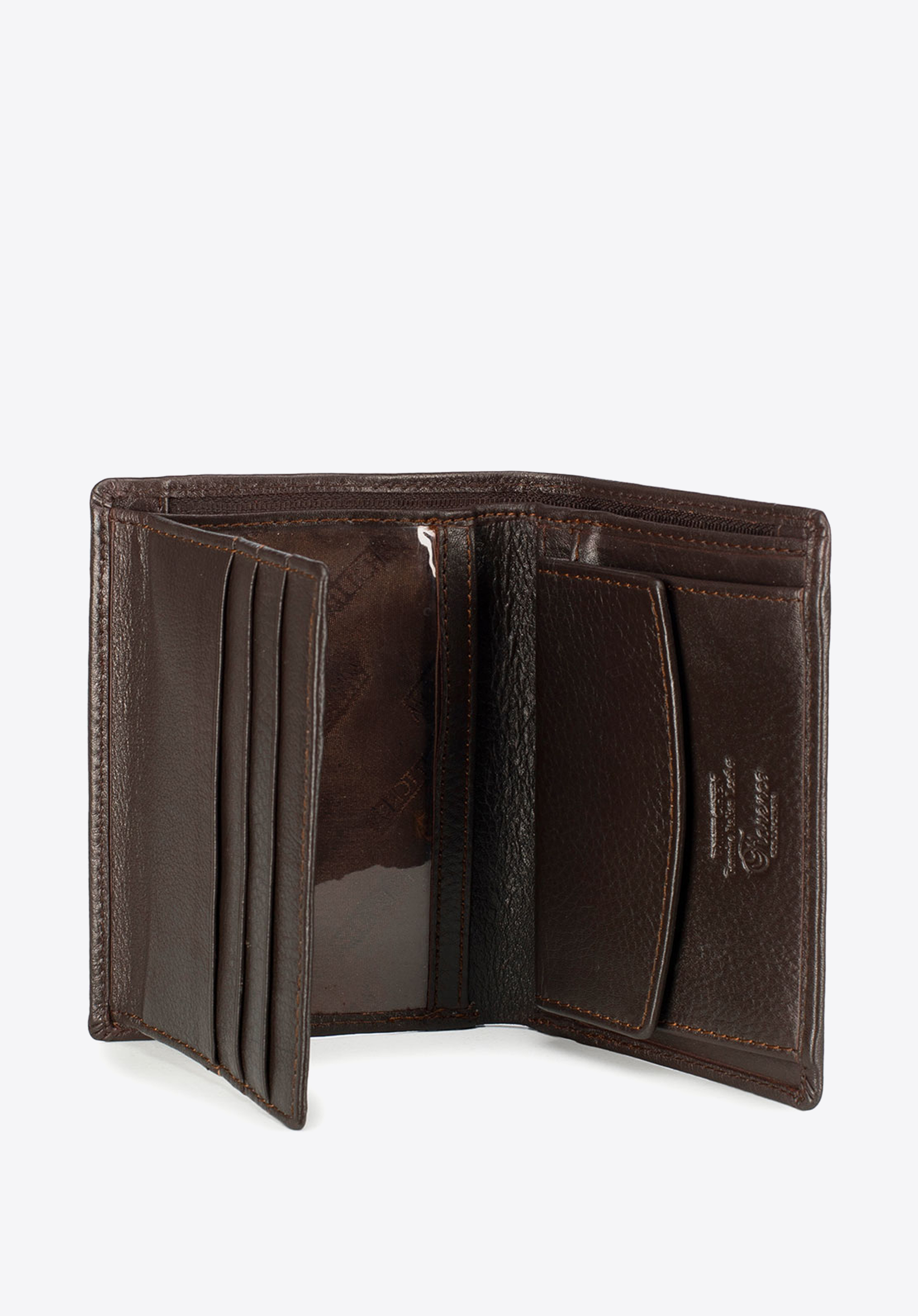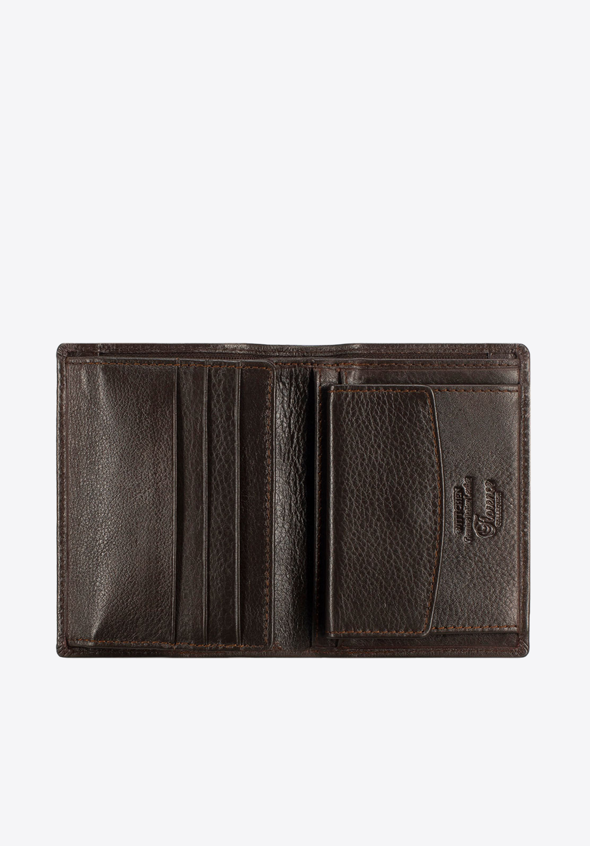 Kisméretű univerzális pénztárca nagy odafigyeléssel, kézzel készült puha borjúbőrből. Dombornyomott bőr felületét WITTCHEN címer díszíti. Ideális azok számára, akik értékelik a kényelmes használatot és az ergonomikus designt.