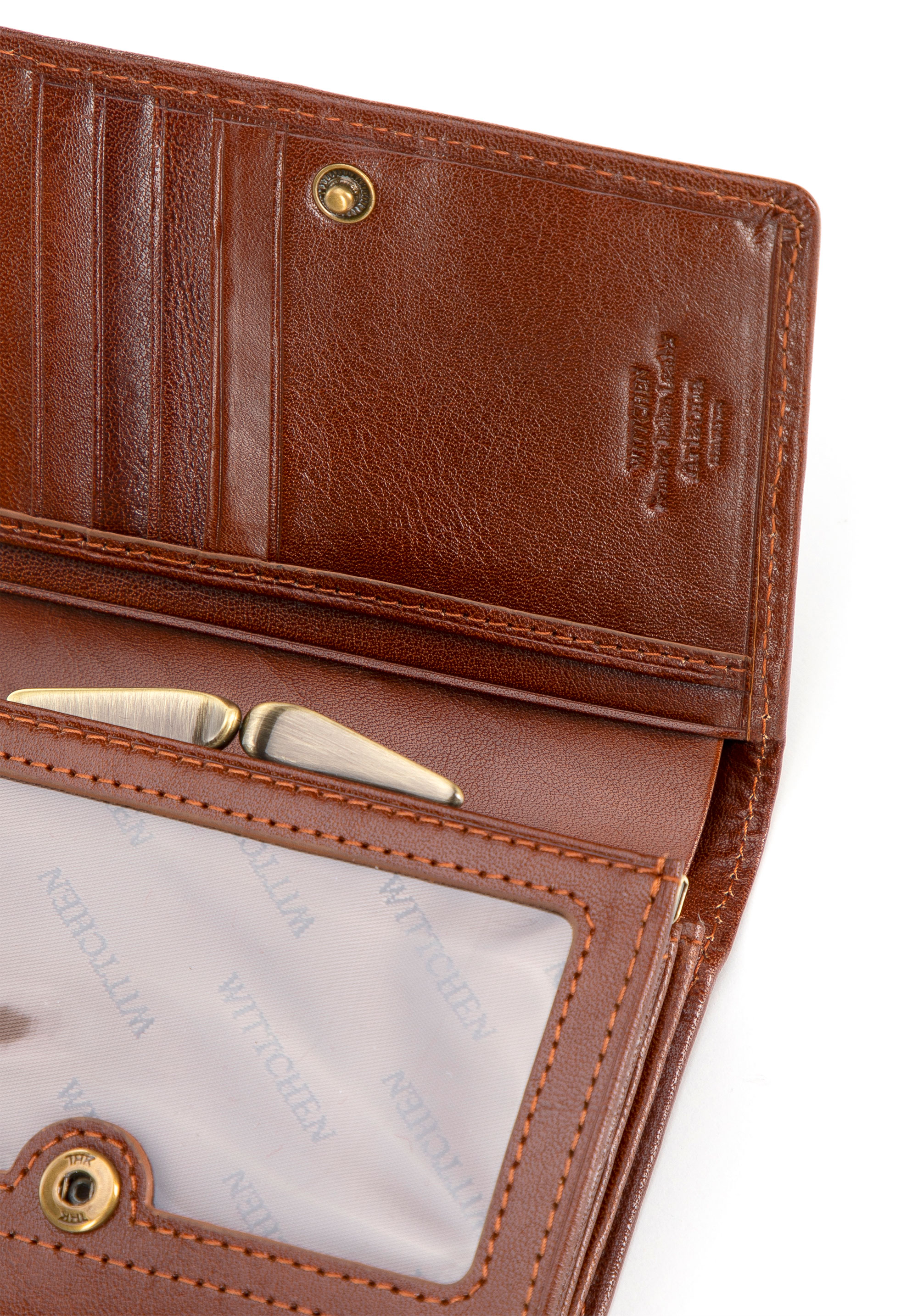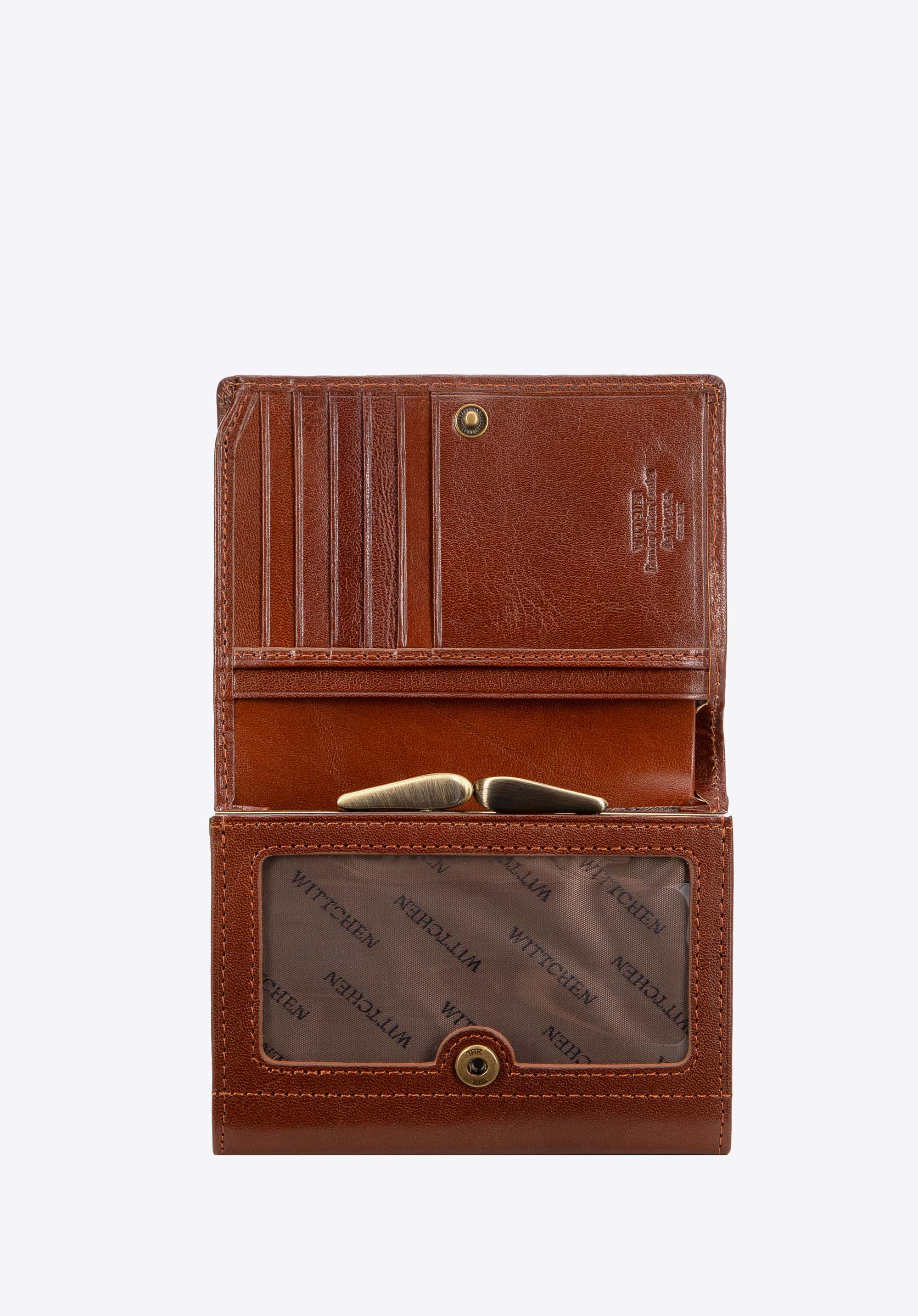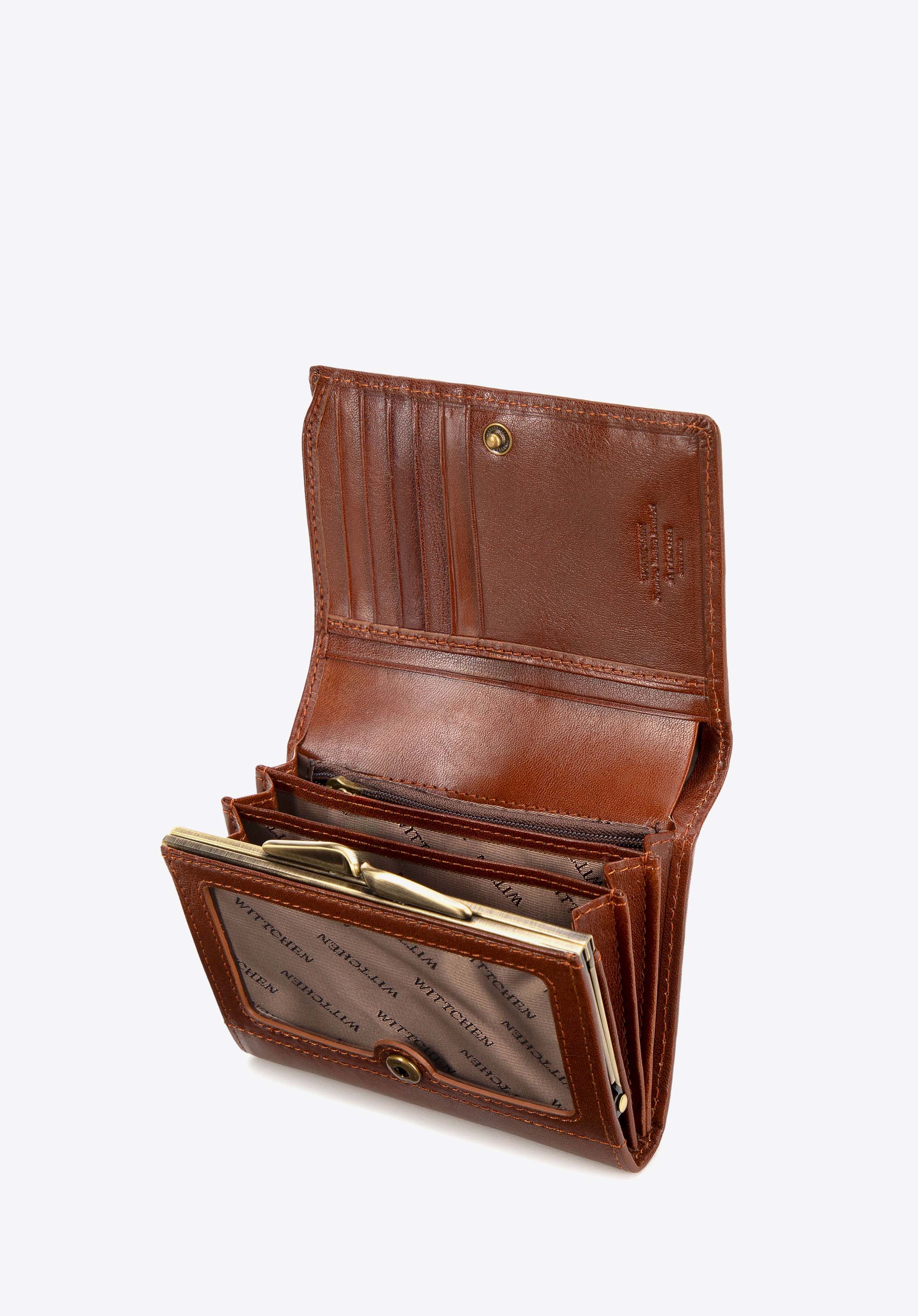 Közepes méretű pénztárca kézzel készítve finom fényű borjúbőrből, sikkes, óarany színű, dombornyomott bőr WITTCHEN logóval, a mindennapos bevásárlás tökéletes kiegészítője. Gondos és esztétikus kidolgozás a fő ismertetőjegye. Ideális olyan hölgyek számára, akik értékelik a kényelmes használattal ötvözött ergonomikus designt.