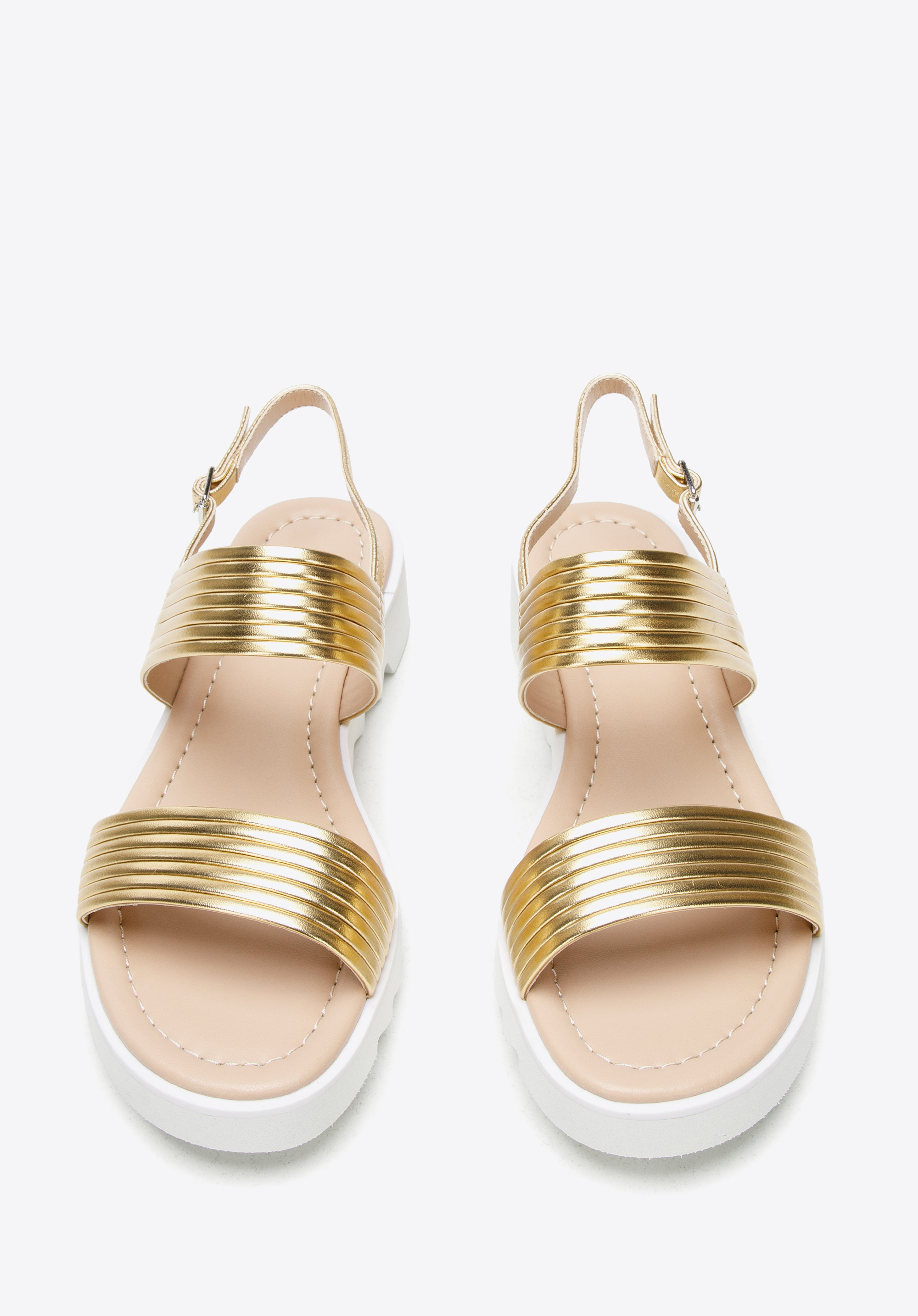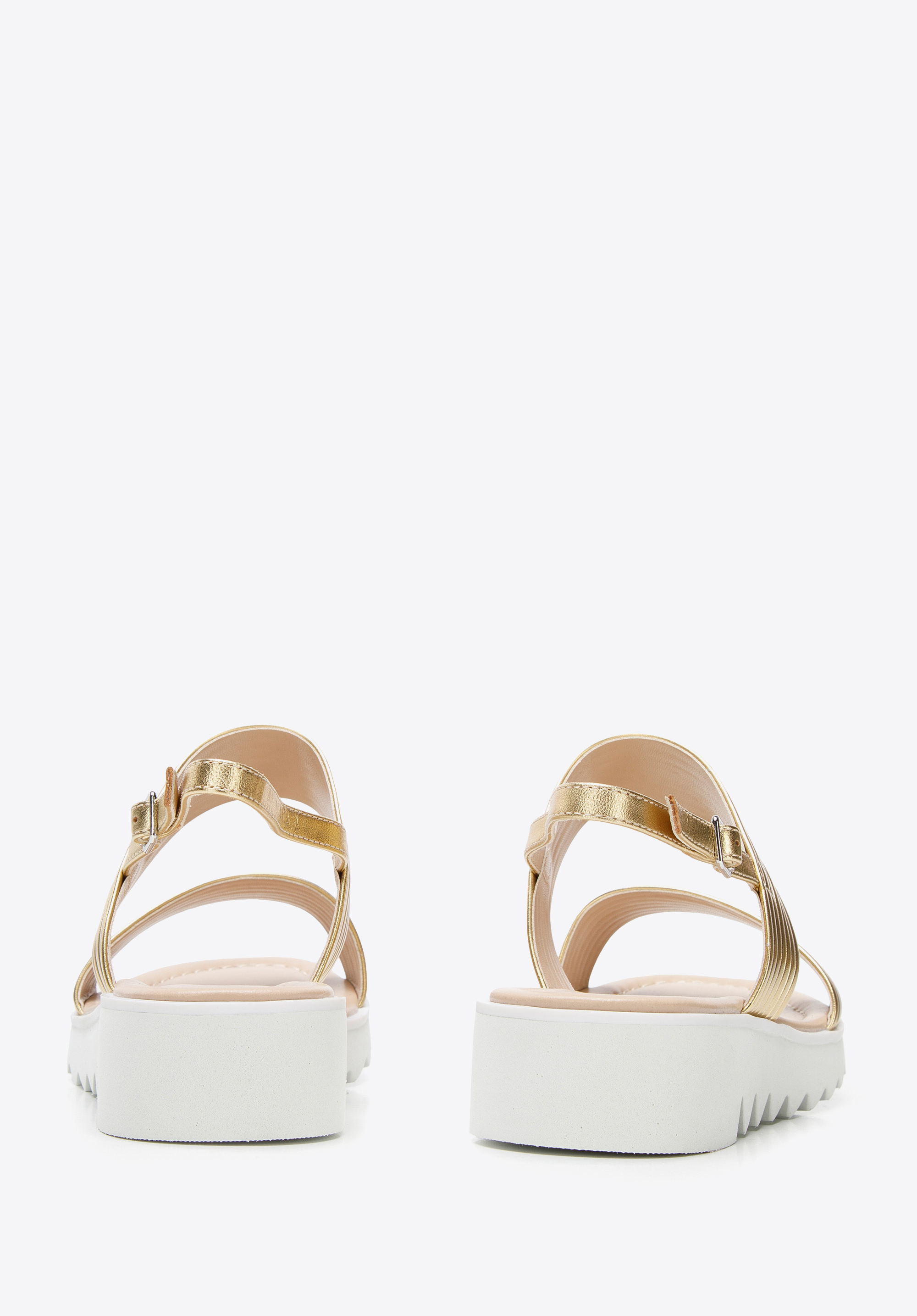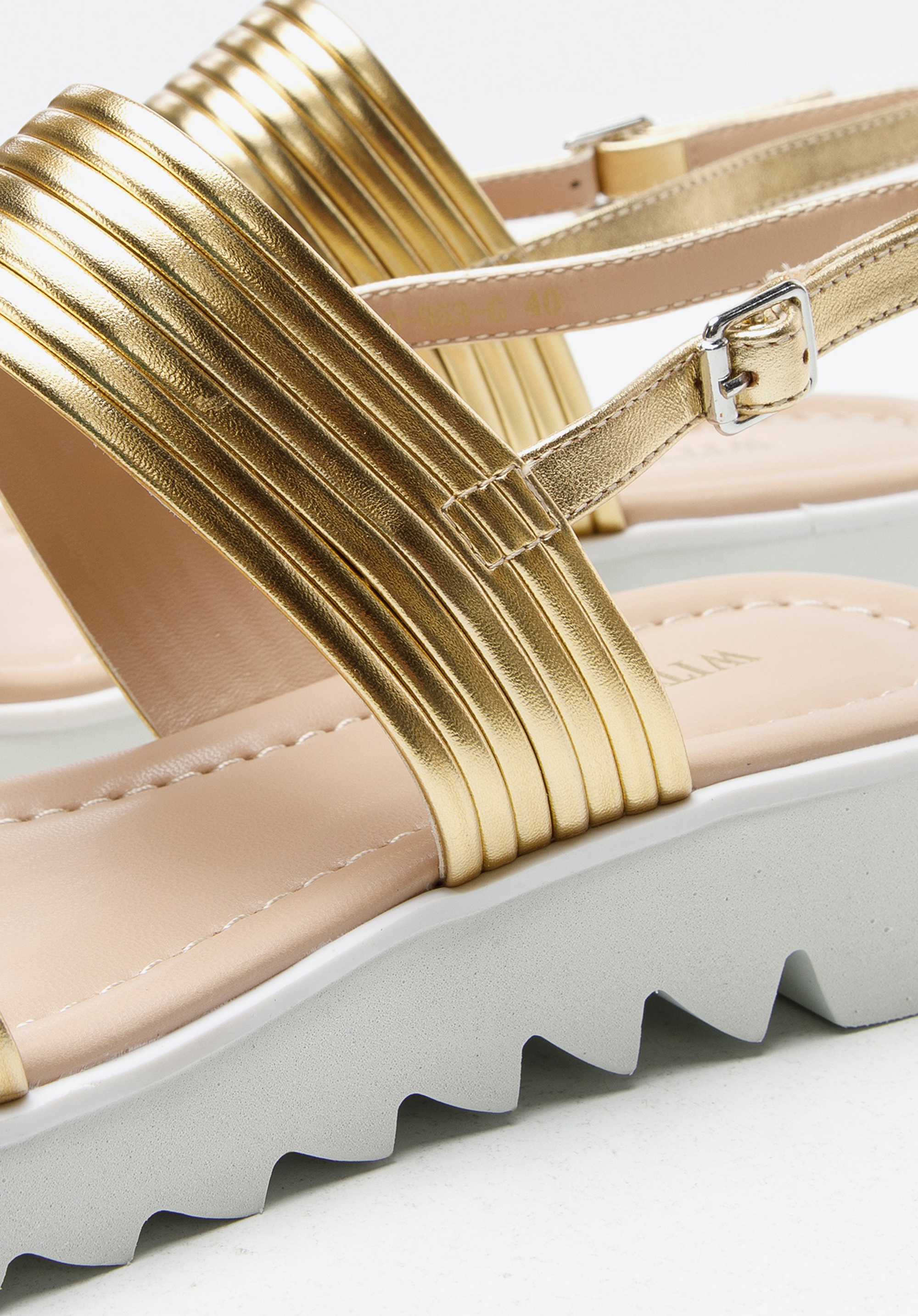 Platformos női bőr szandál vastag pántokkal arany