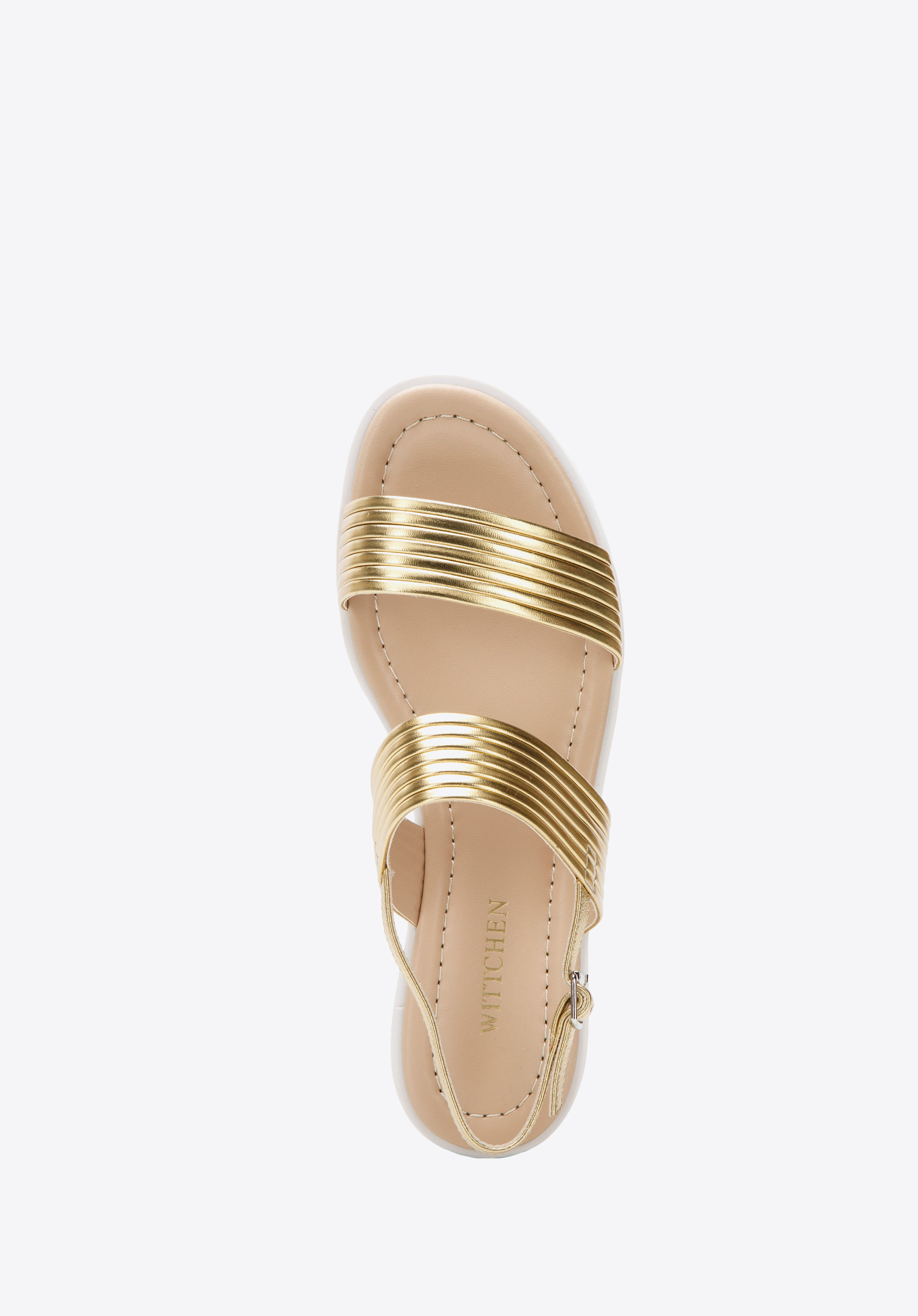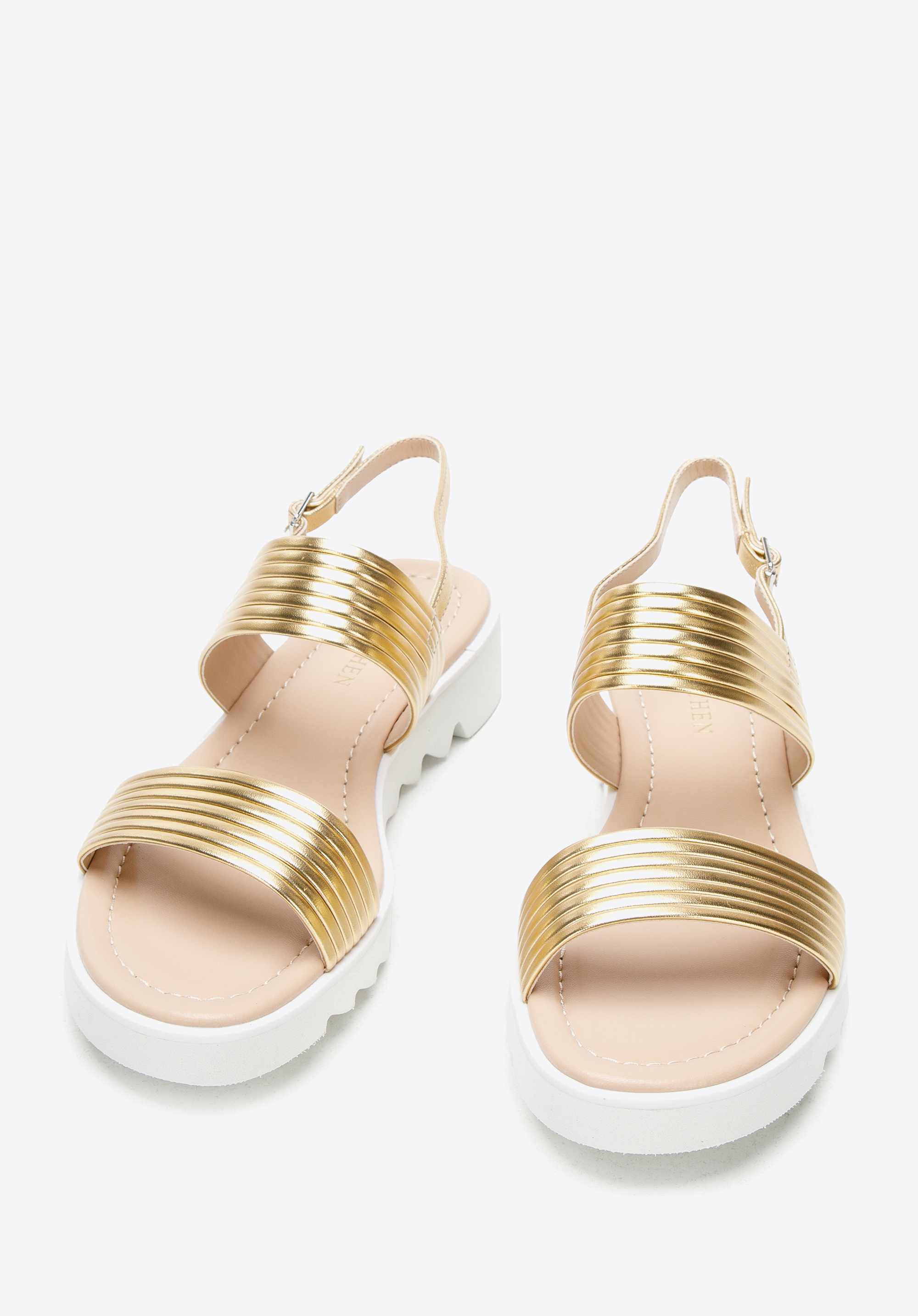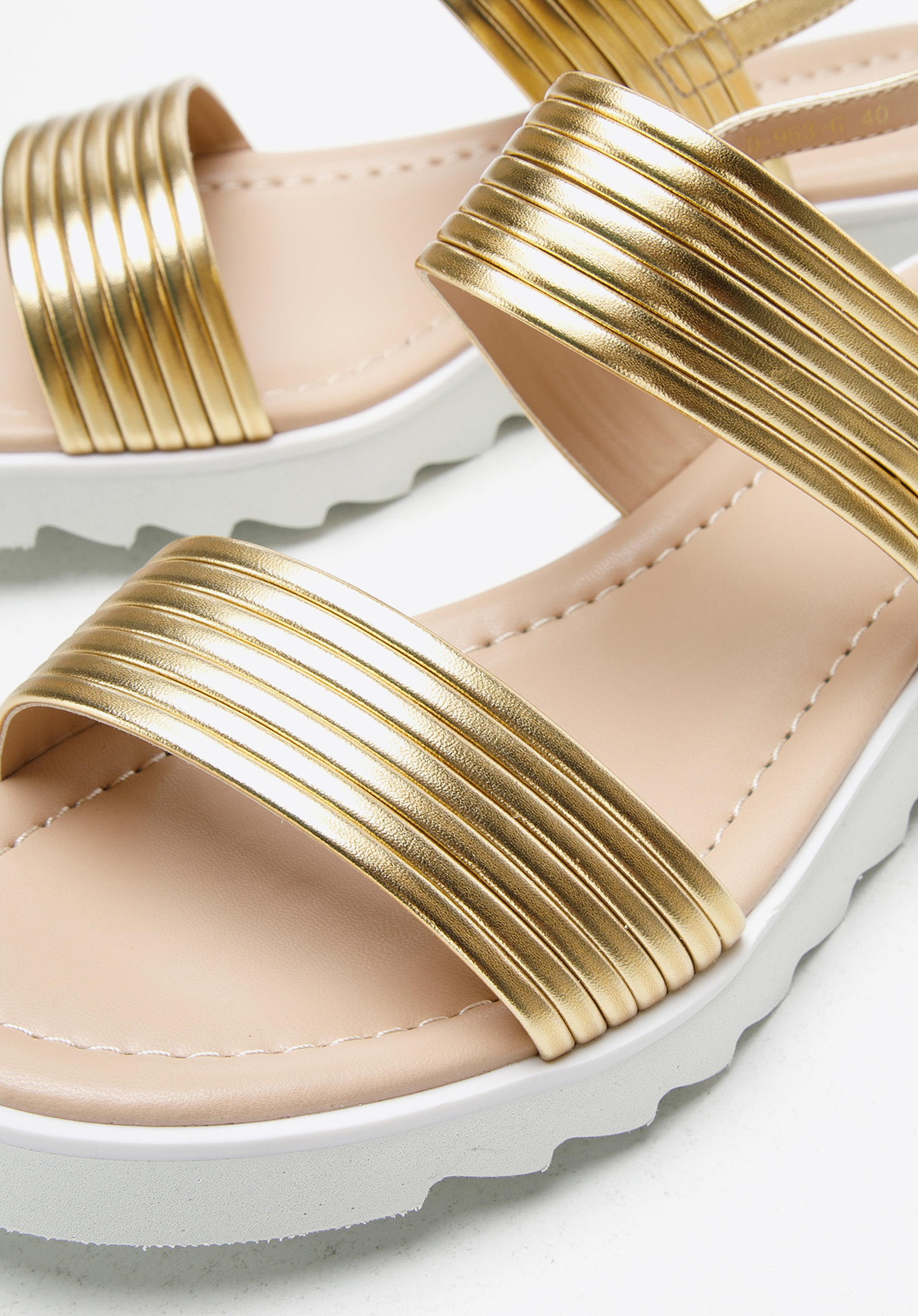 Platformos női bőr szandál vastag pántokkal arany