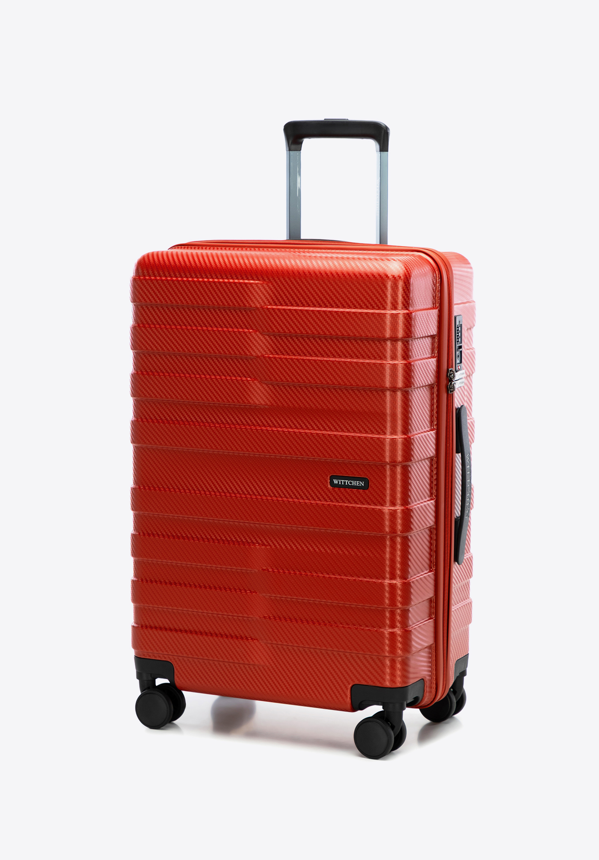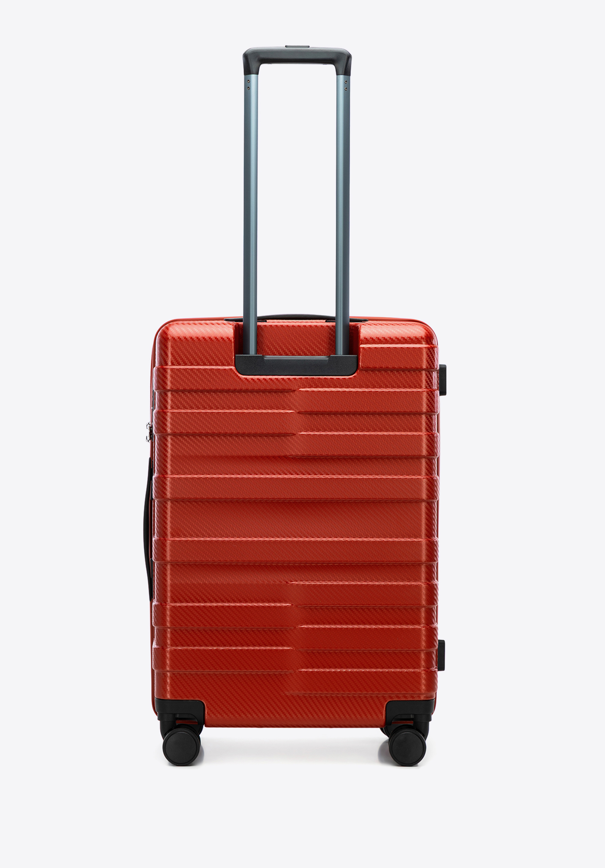 - Okos részletek: A közepes és nagy bőröndök két fogantyúval és négy oldalsó szegeccsel rendelkeznek a fokozott stabilitás és a kényelmes vízszintes elhelyezés érdekében.