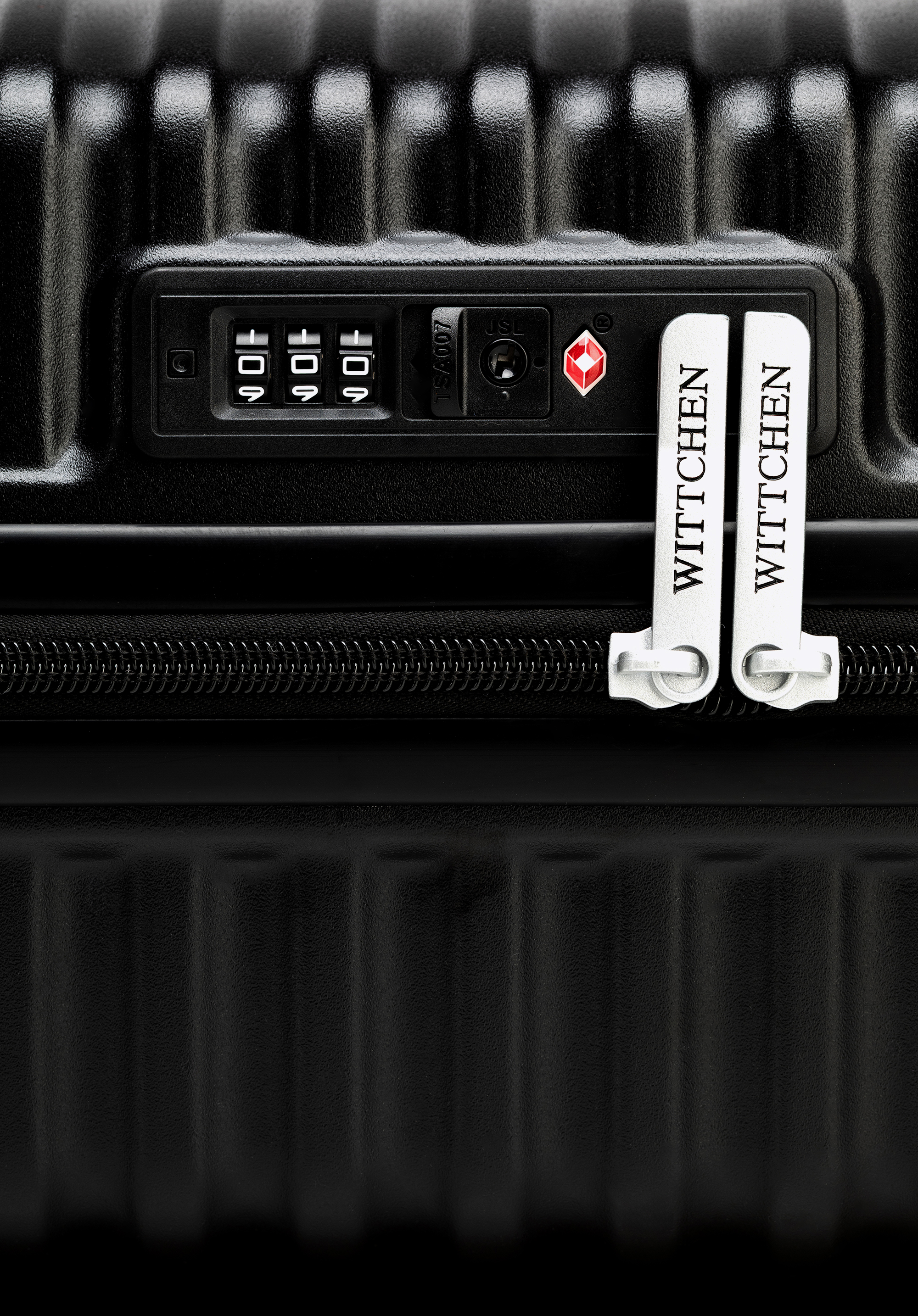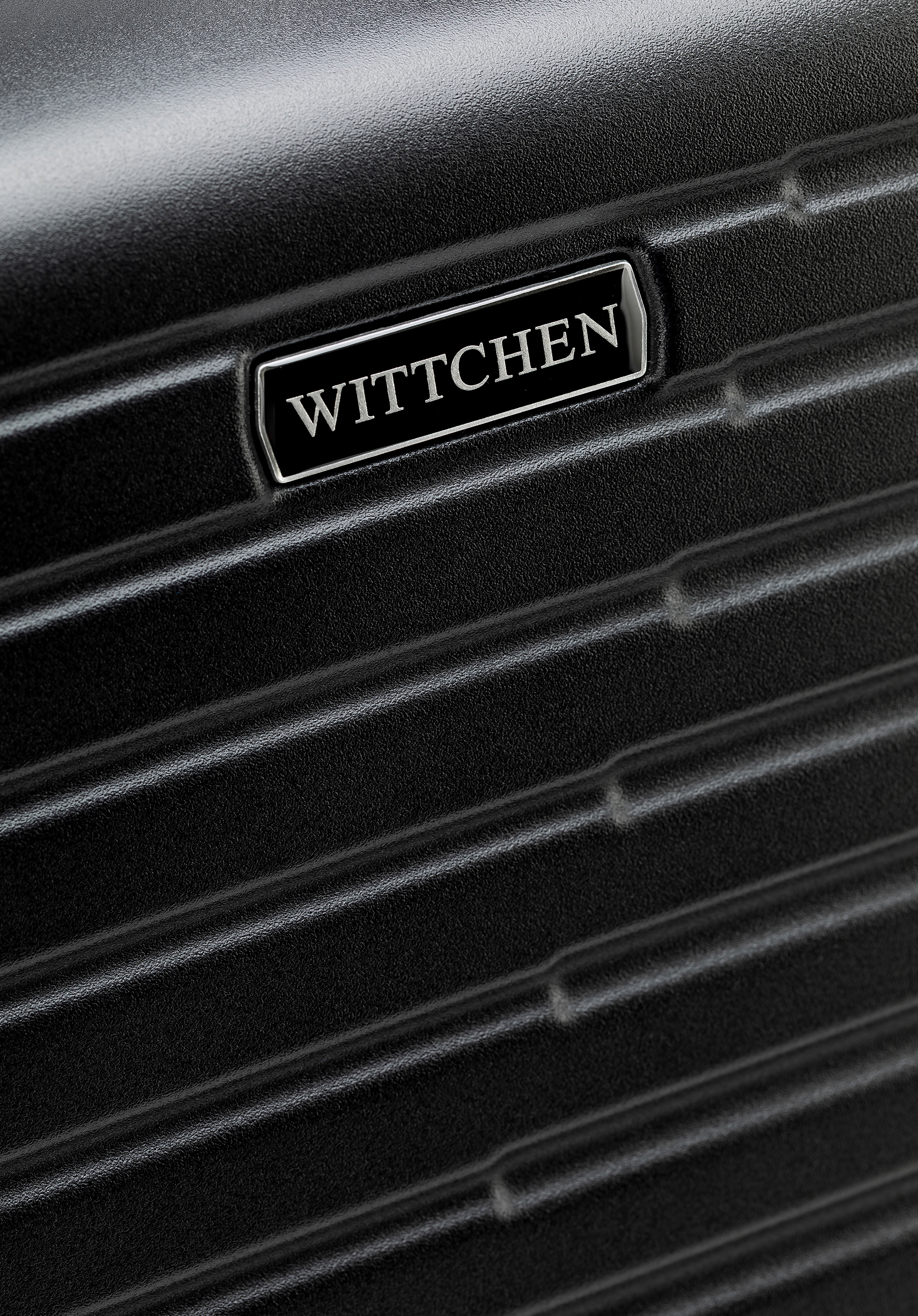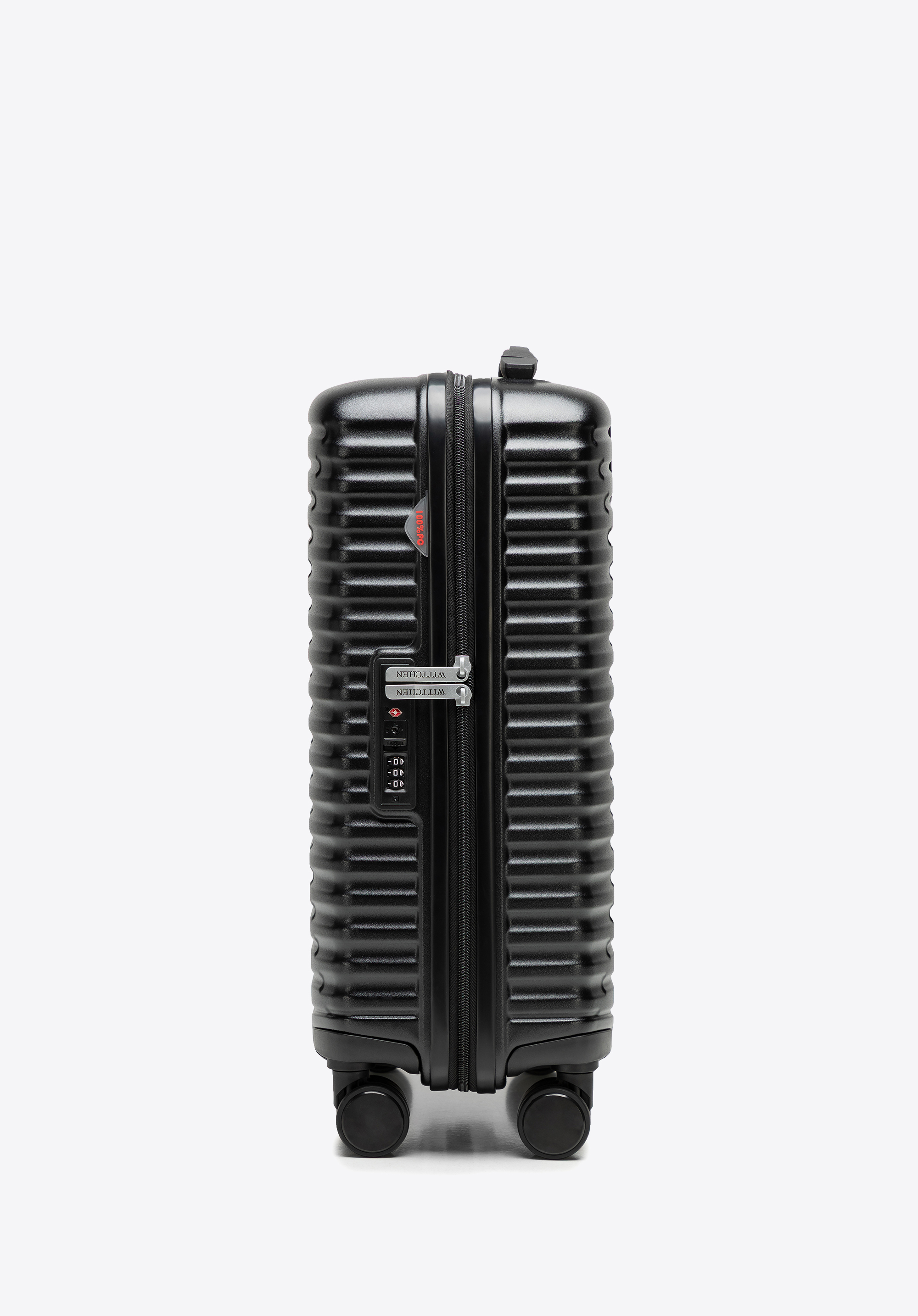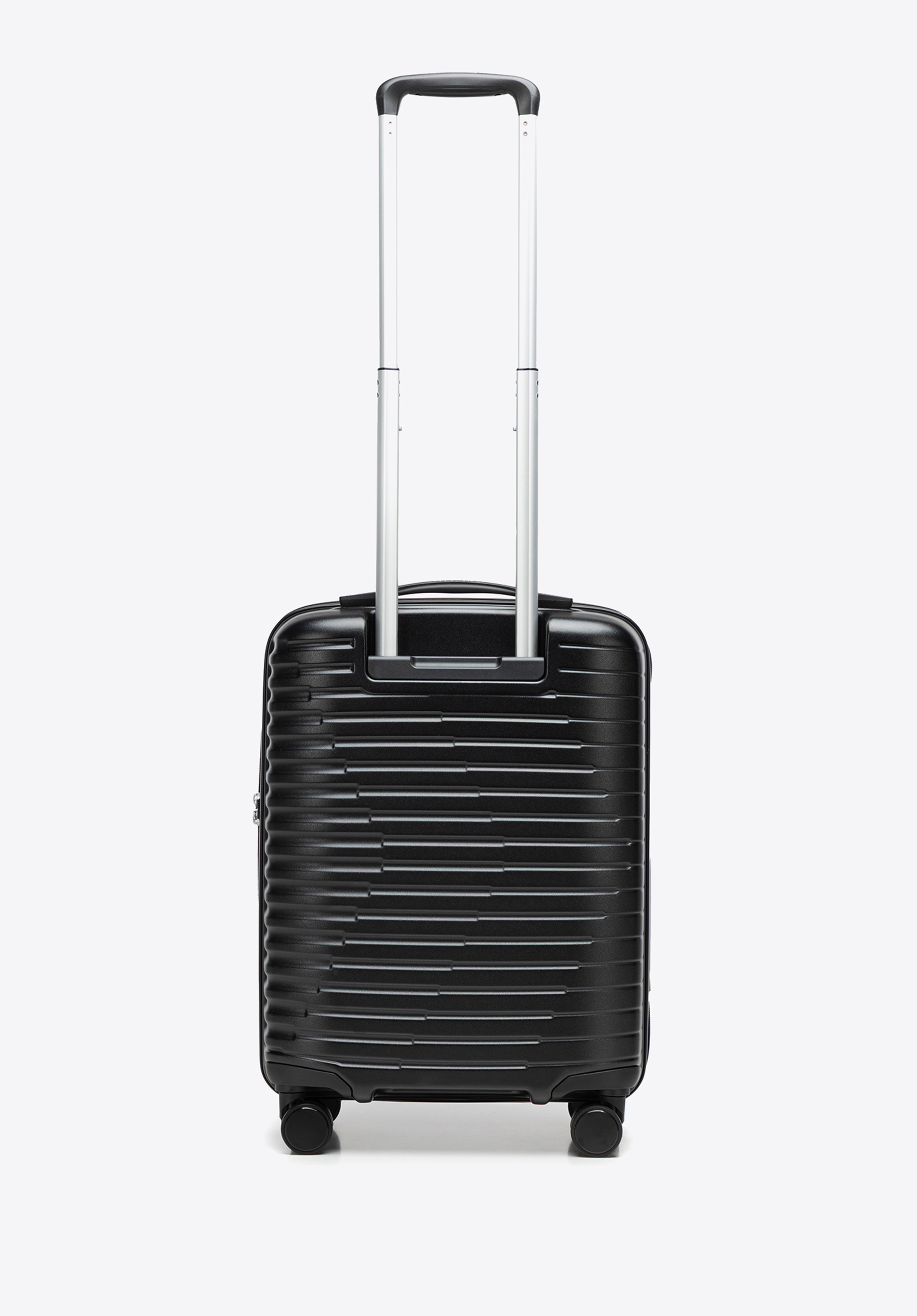 Polikarbonát bőrönd vízszintes barázdákkal fekete