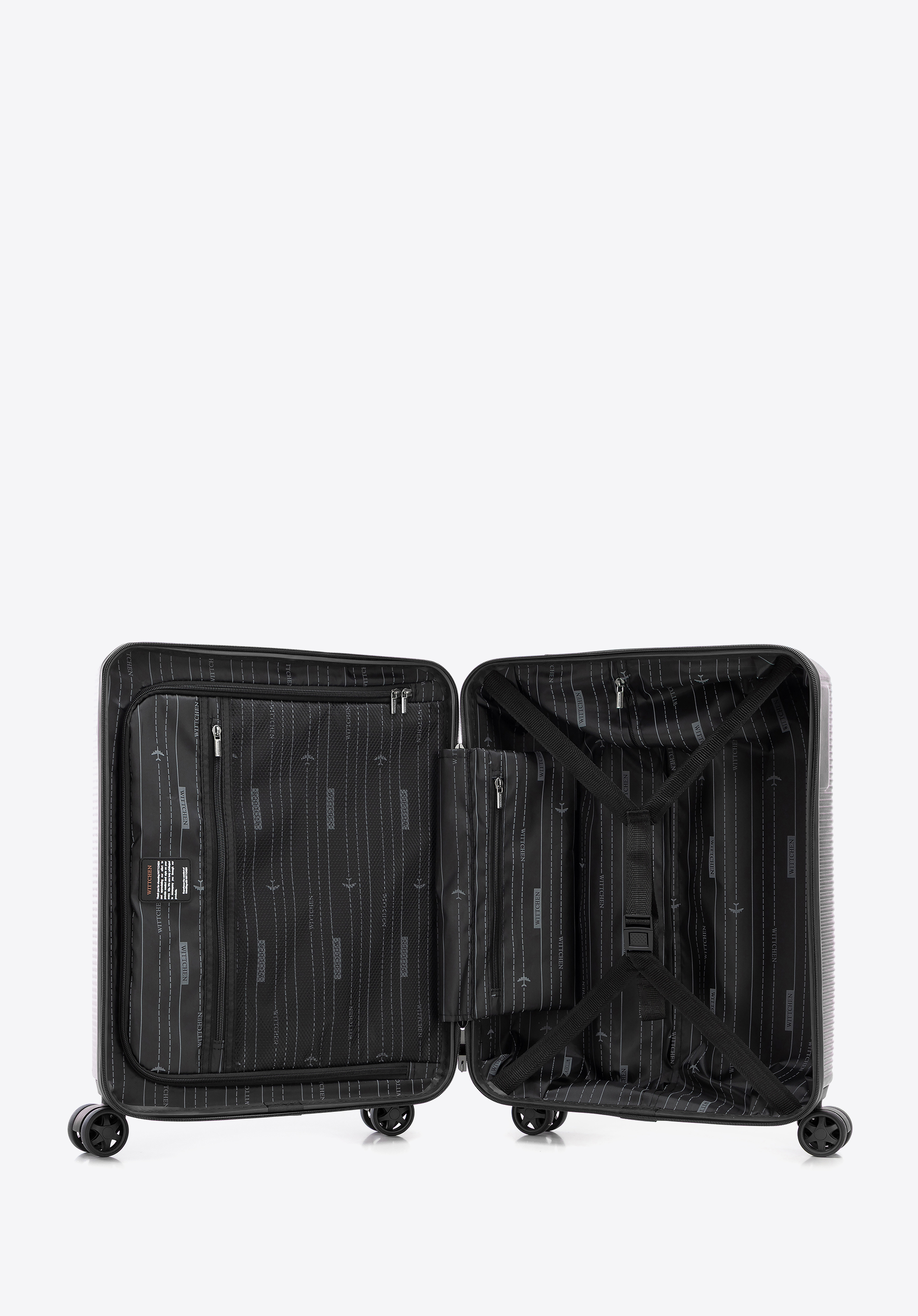 Kabinbőröndünket a tapasztalt utazók szem előtt tartásával terveztük – könnyű, elegáns és tele van praktikus megoldásokkal. Polikarbonátból készült, és a tartósságot modern megjelenéssel ötvözi, tökéletes tárolási feltételeket biztosítva a legfontosabb tárgyaknak üzleti utak során. Az elülső rekesz ideális laptop számára (max. 30 x 24 cm, 15"), így ez a bőrönd tökéletes megoldás üzleti utazásokhoz is.
