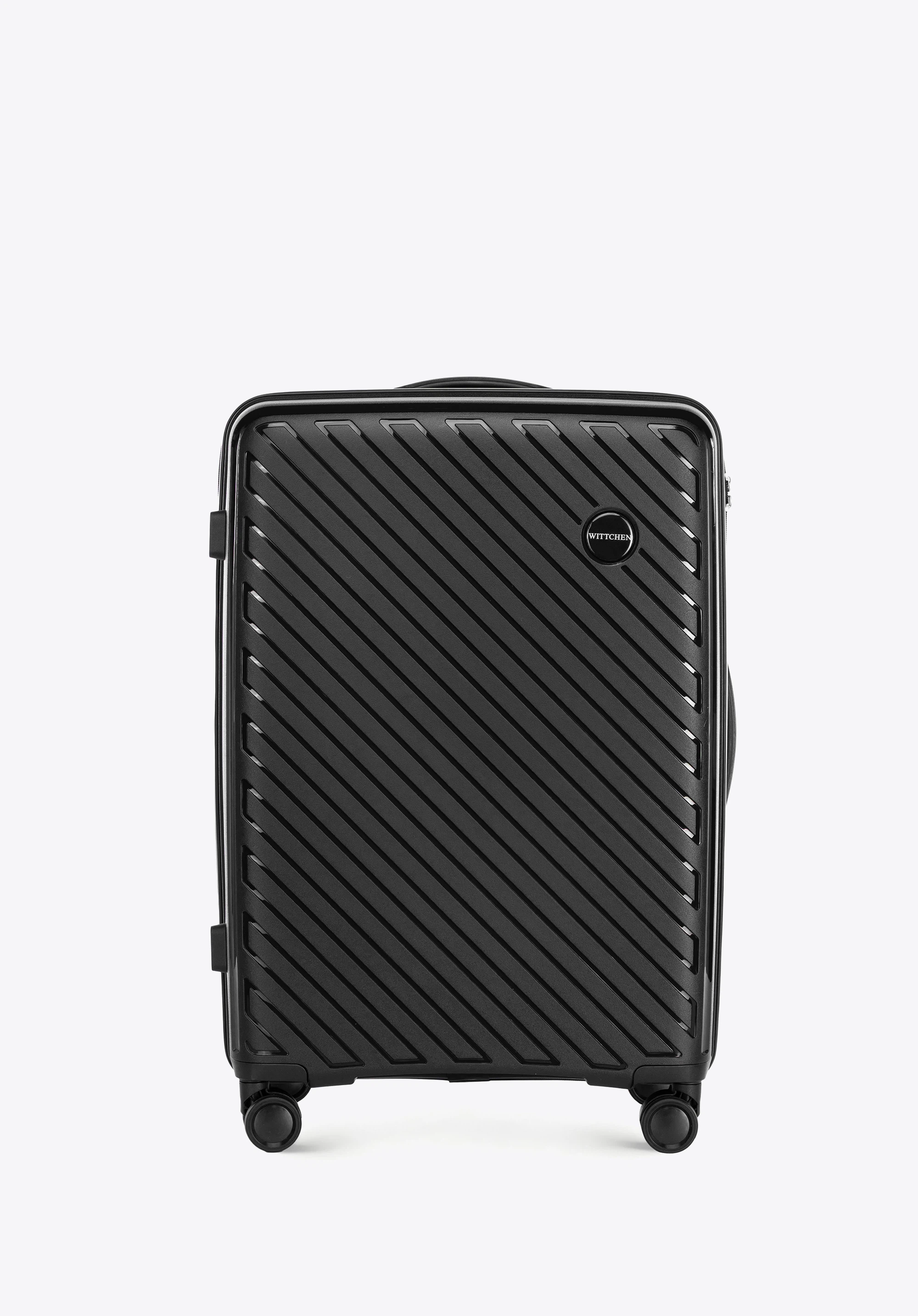 Polipropilén bőrönd szett dombornyomott csíkokkal fekete