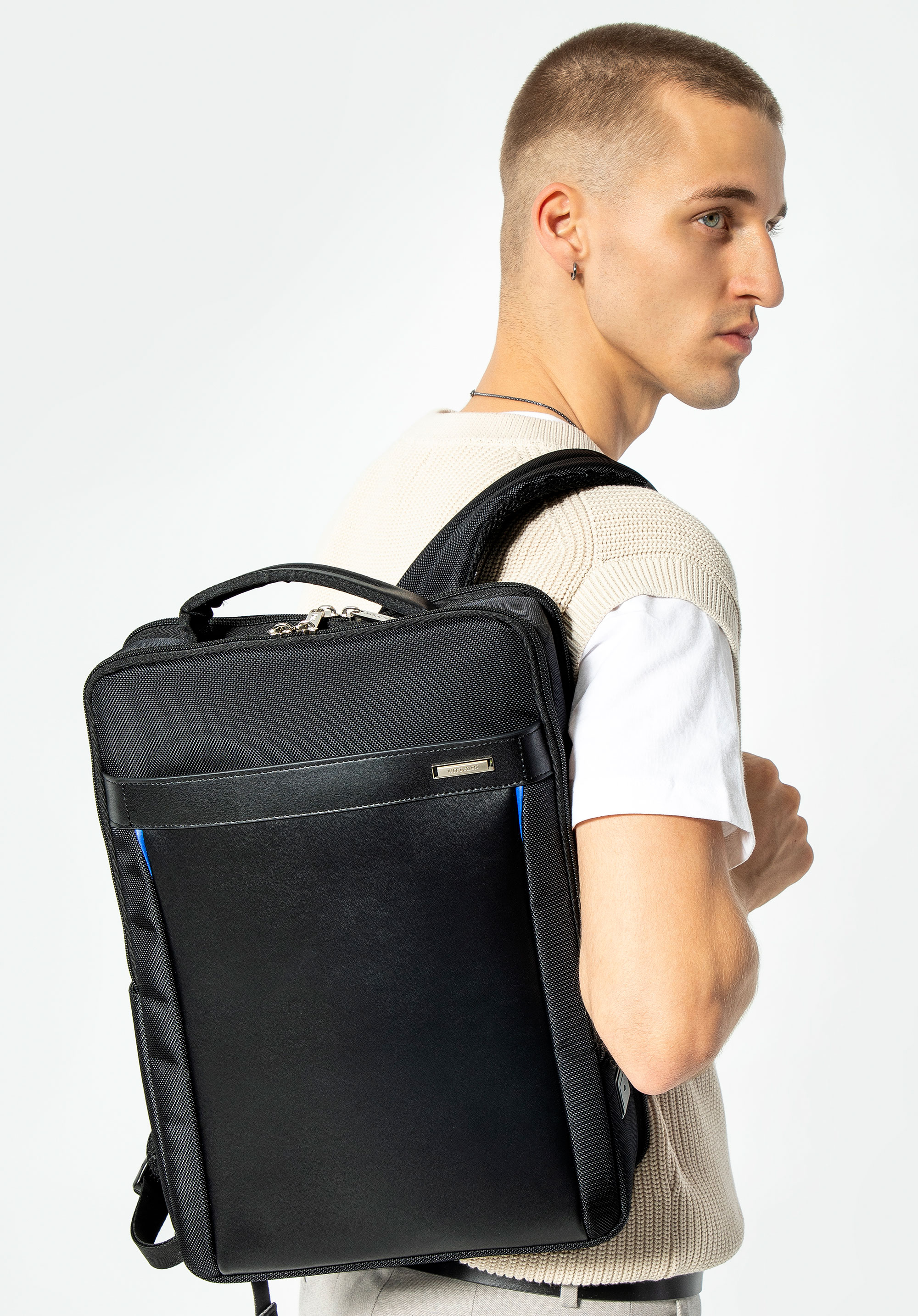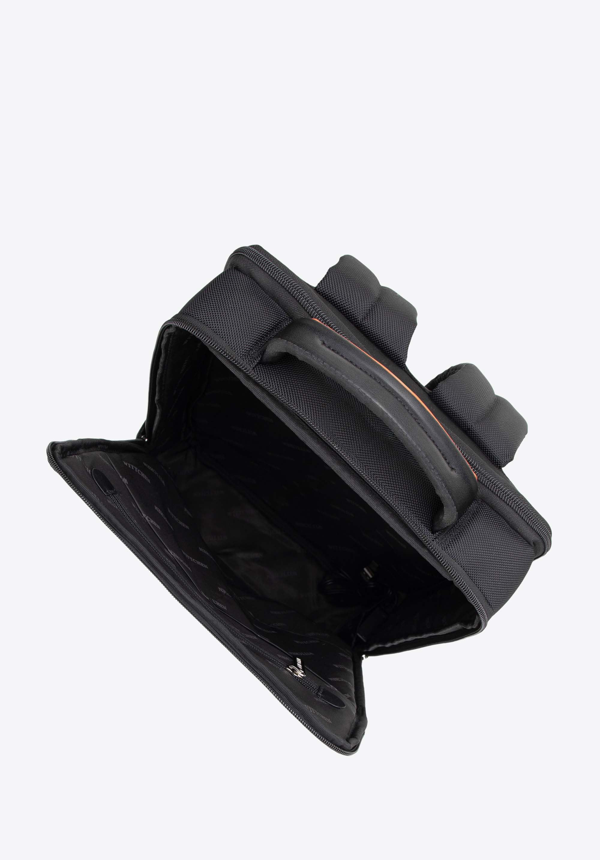 - Praktikus belső tér: Az egyik rekesz három zsebet tartalmaz, köztük egy cipzáras zsebet a kisebb tárgyak számára. A második rekeszben két nyitott zseb és egy zseb található a legfeljebb 37 × 24 cm méretű és 16'''' átmérőjű elektronikus eszközök számára.