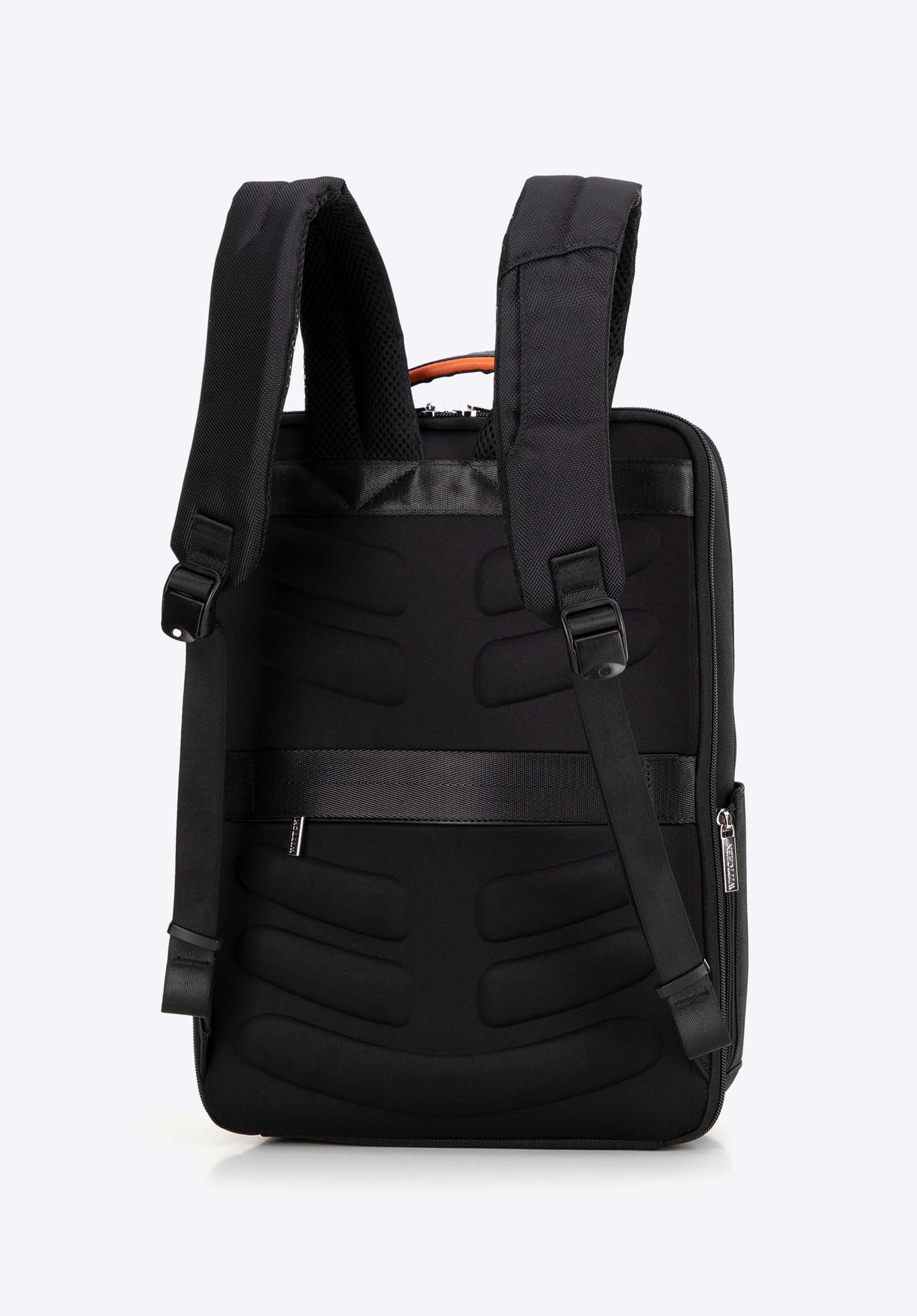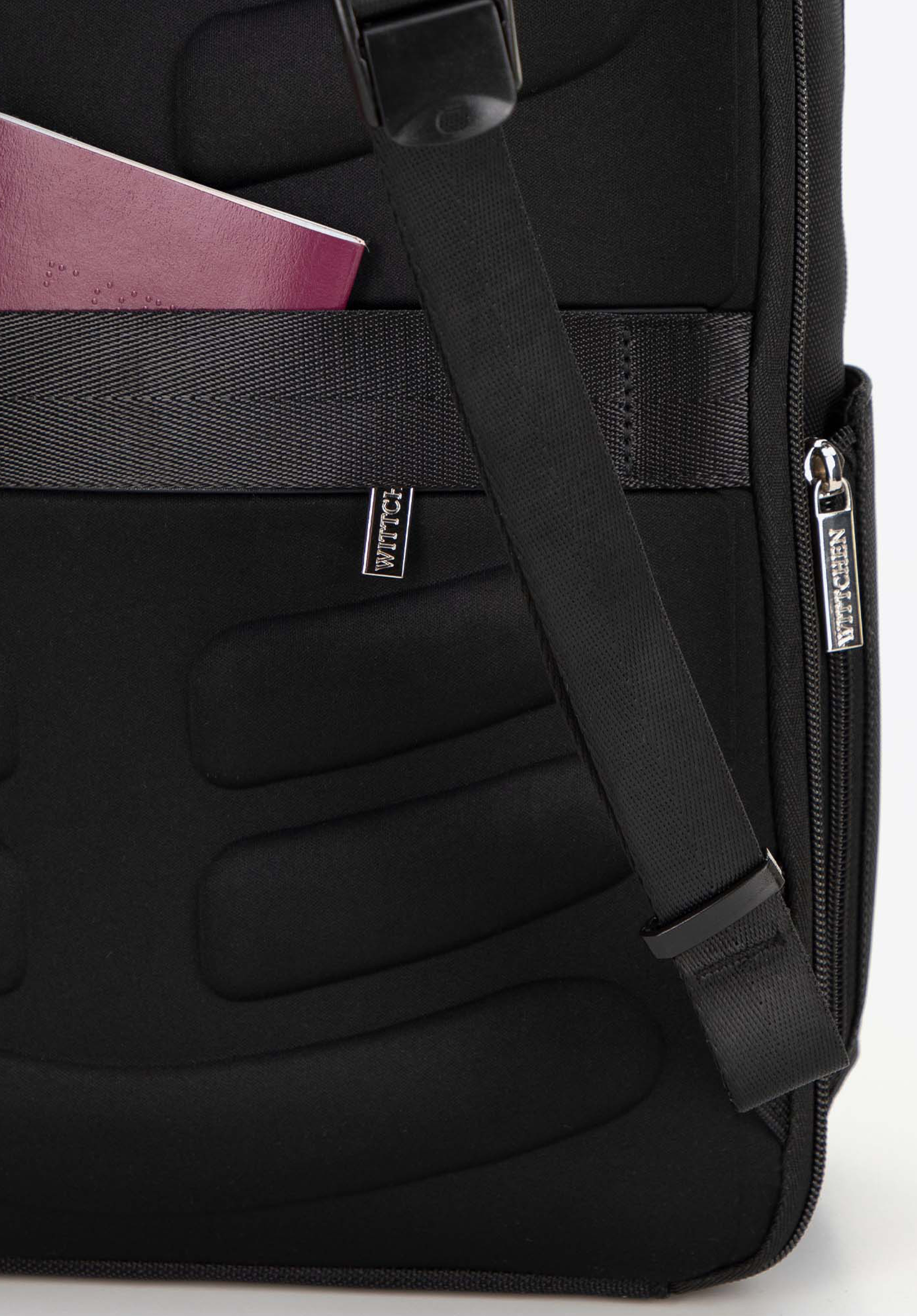 - Praktikus bőröndtámasz: Lehetővé teszi a hátizsák egyszerű rögzítését a poggyászhoz.