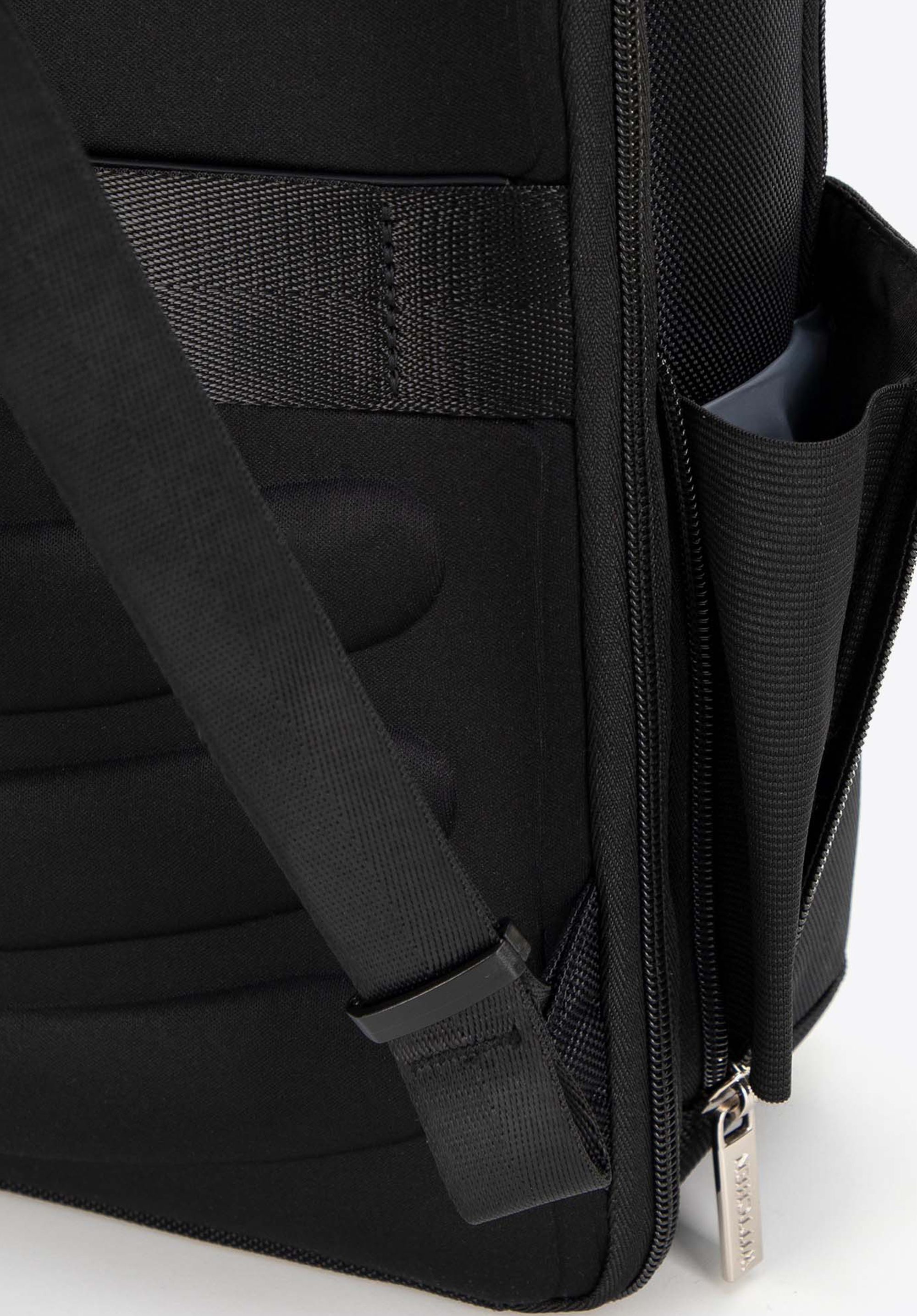 - Külső cipzáras zseb: A kulcsok rögzítésére szolgáló pánttal ellátott zseb könnyű hozzáférést biztosít a legfontosabb dolgokhoz. Ezenkívül az oldalsó cipzáras zseb tökéletes egy vizes palack vagy esernyő számára.
