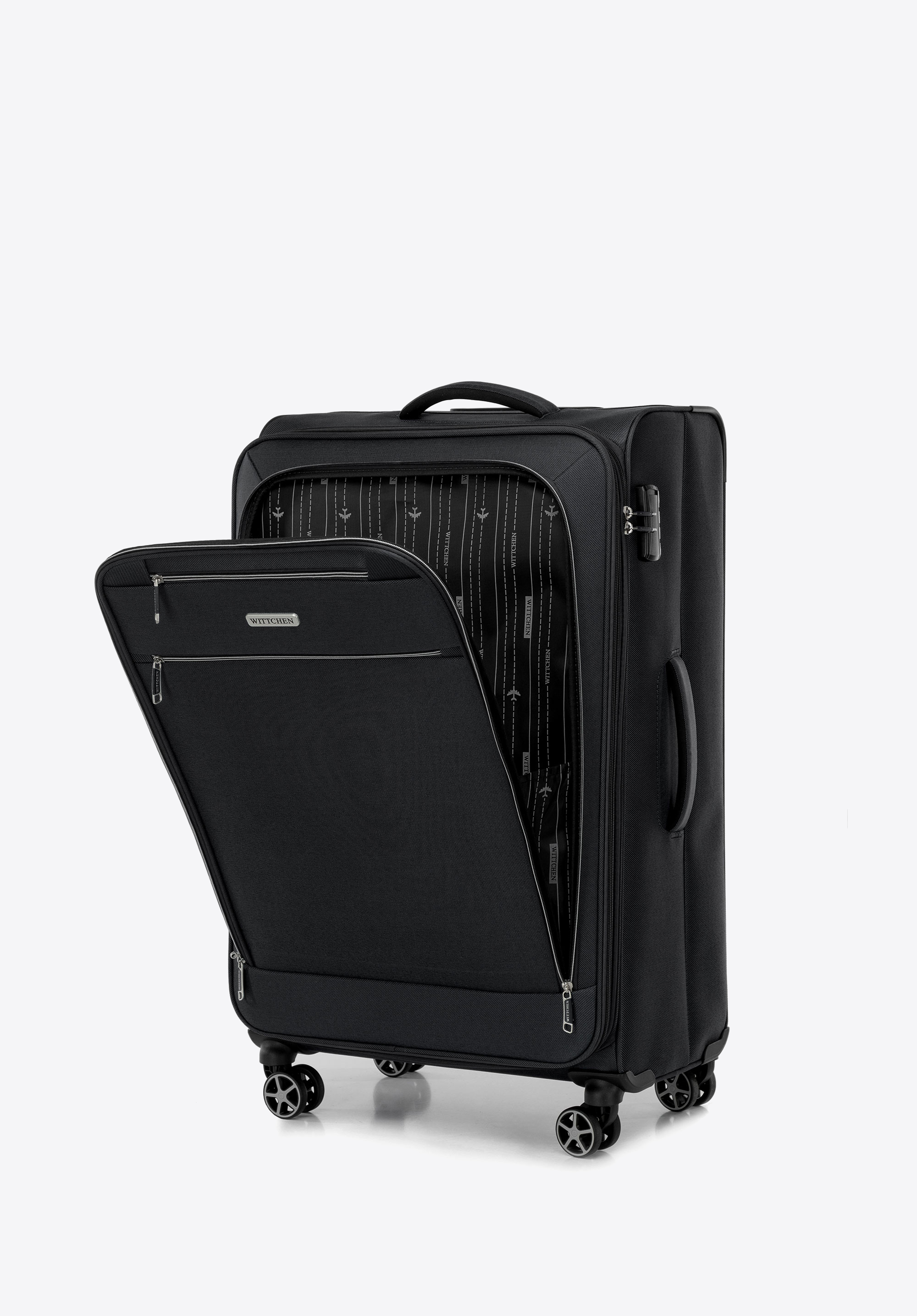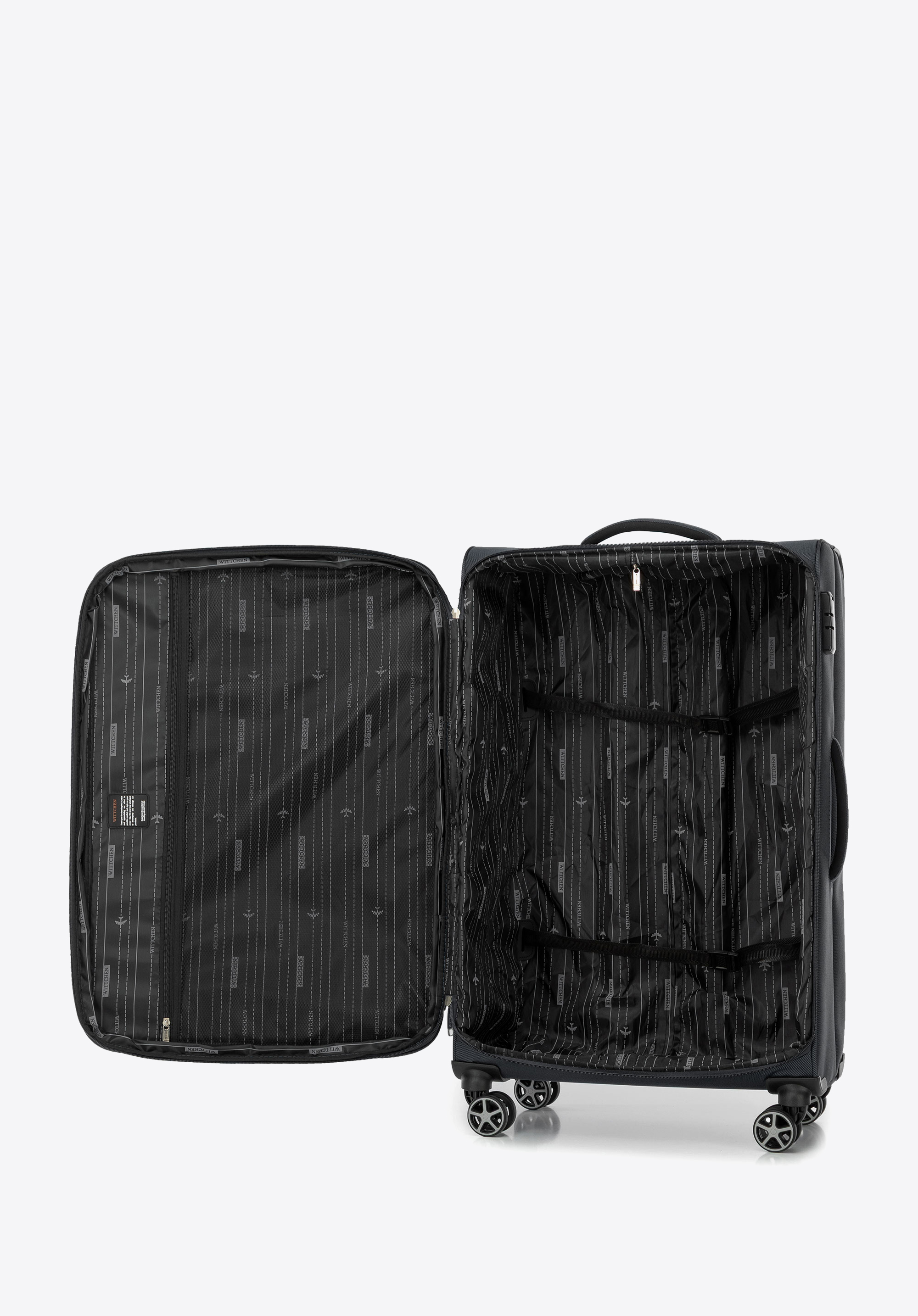 Puha oldalú nagyméretű poliészter bőrönd fekete