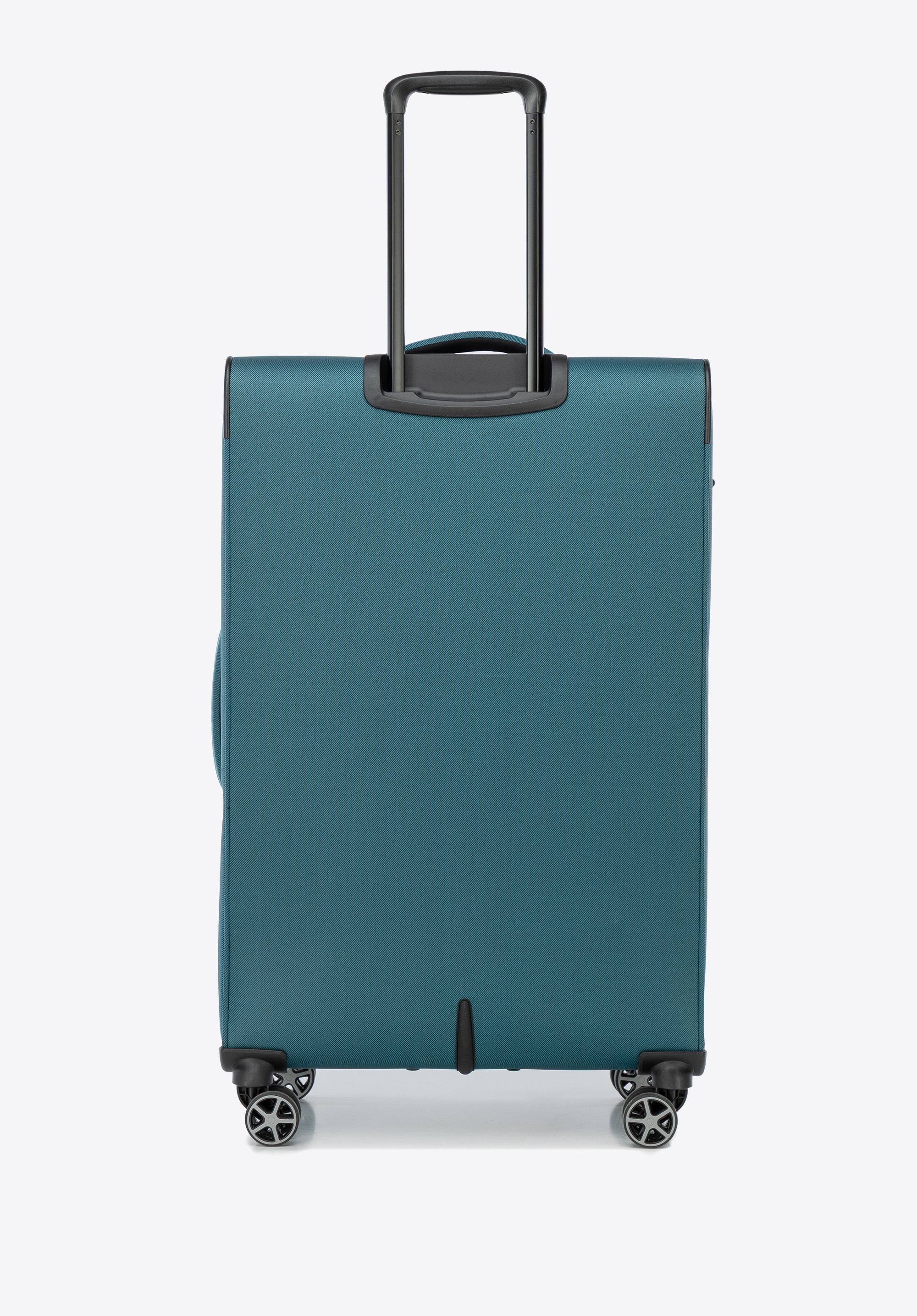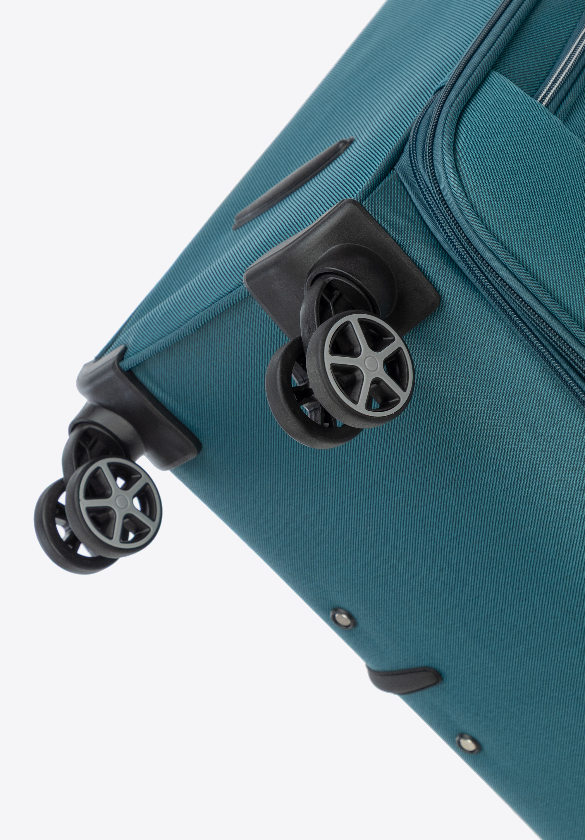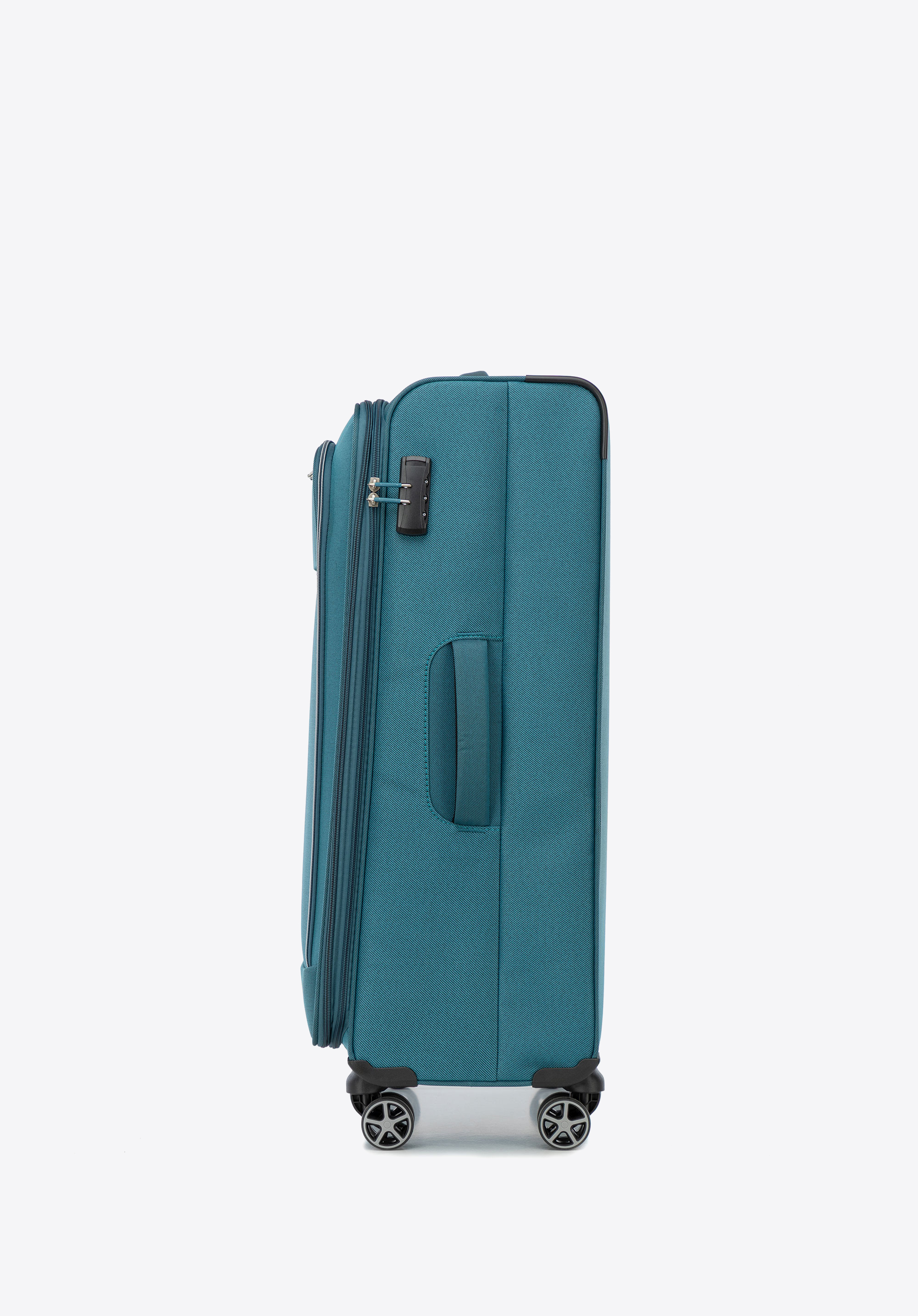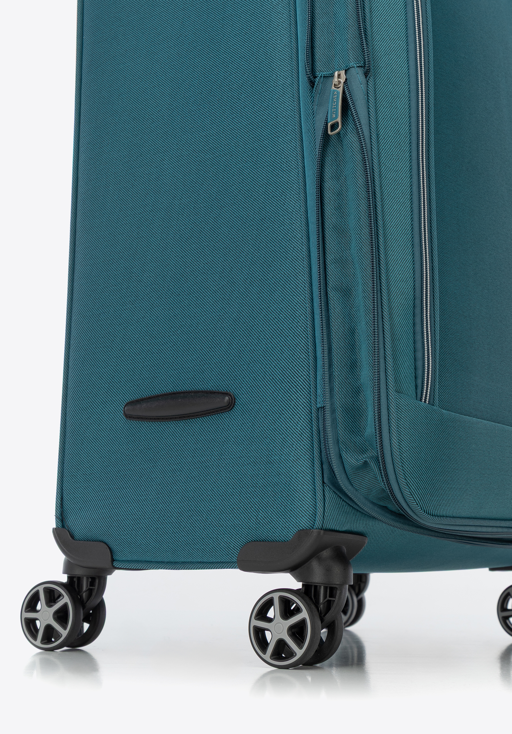 Puha oldalú nagyméretű poliészter bőrönd türkiz