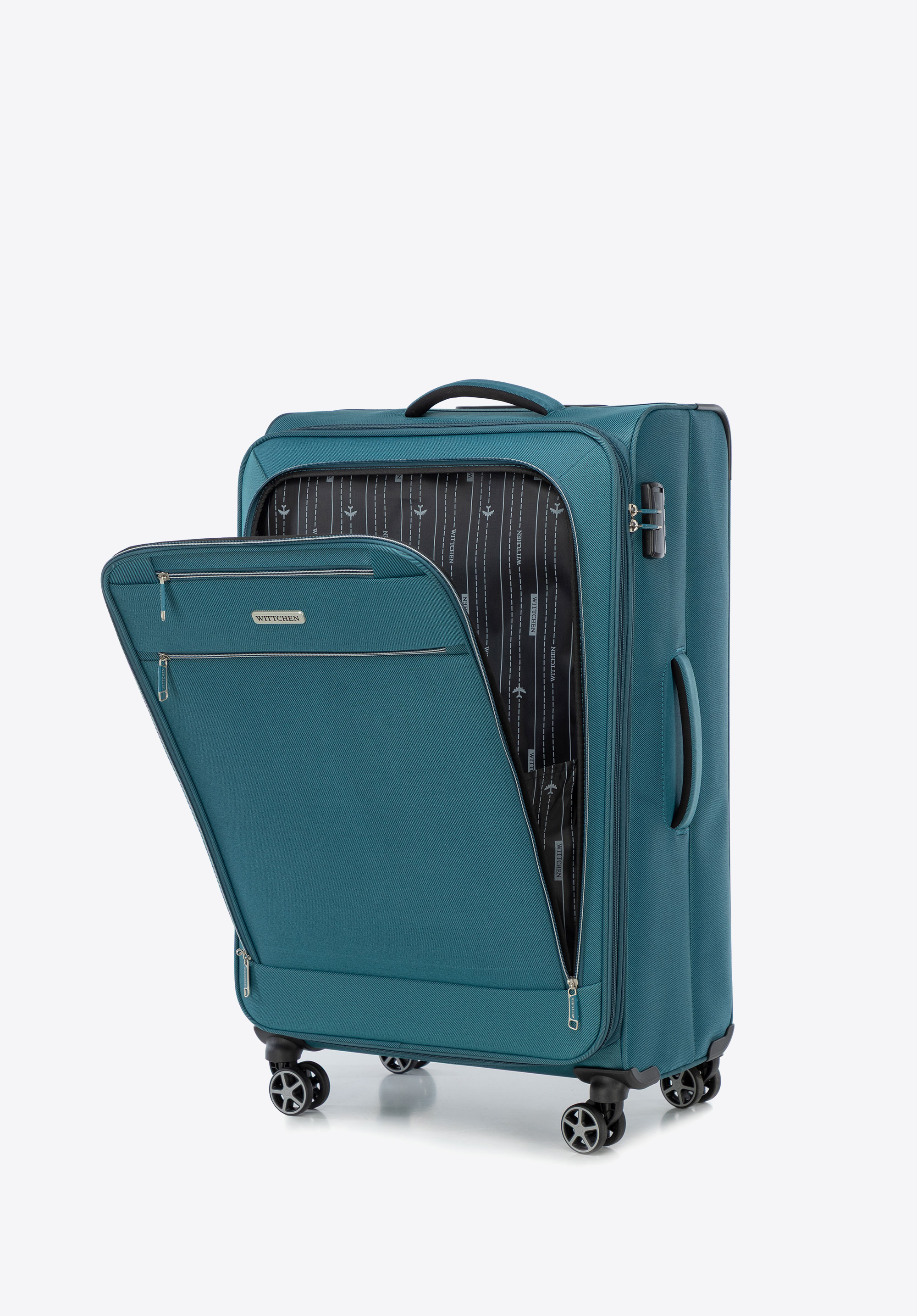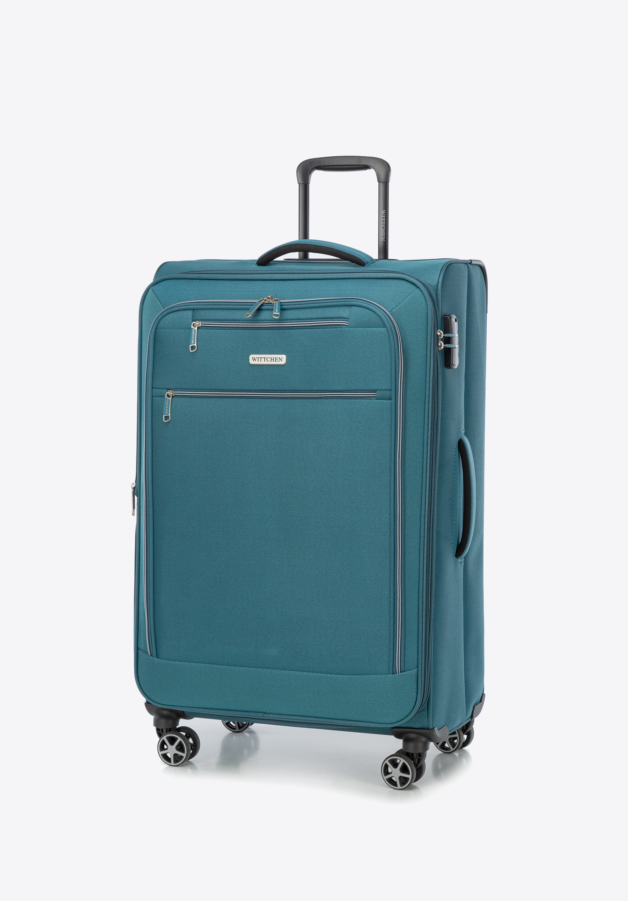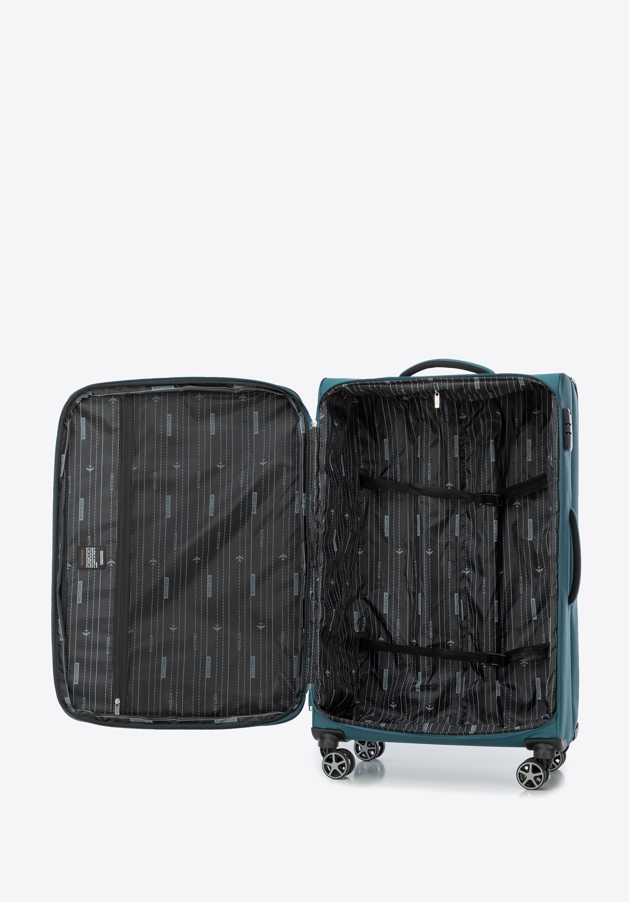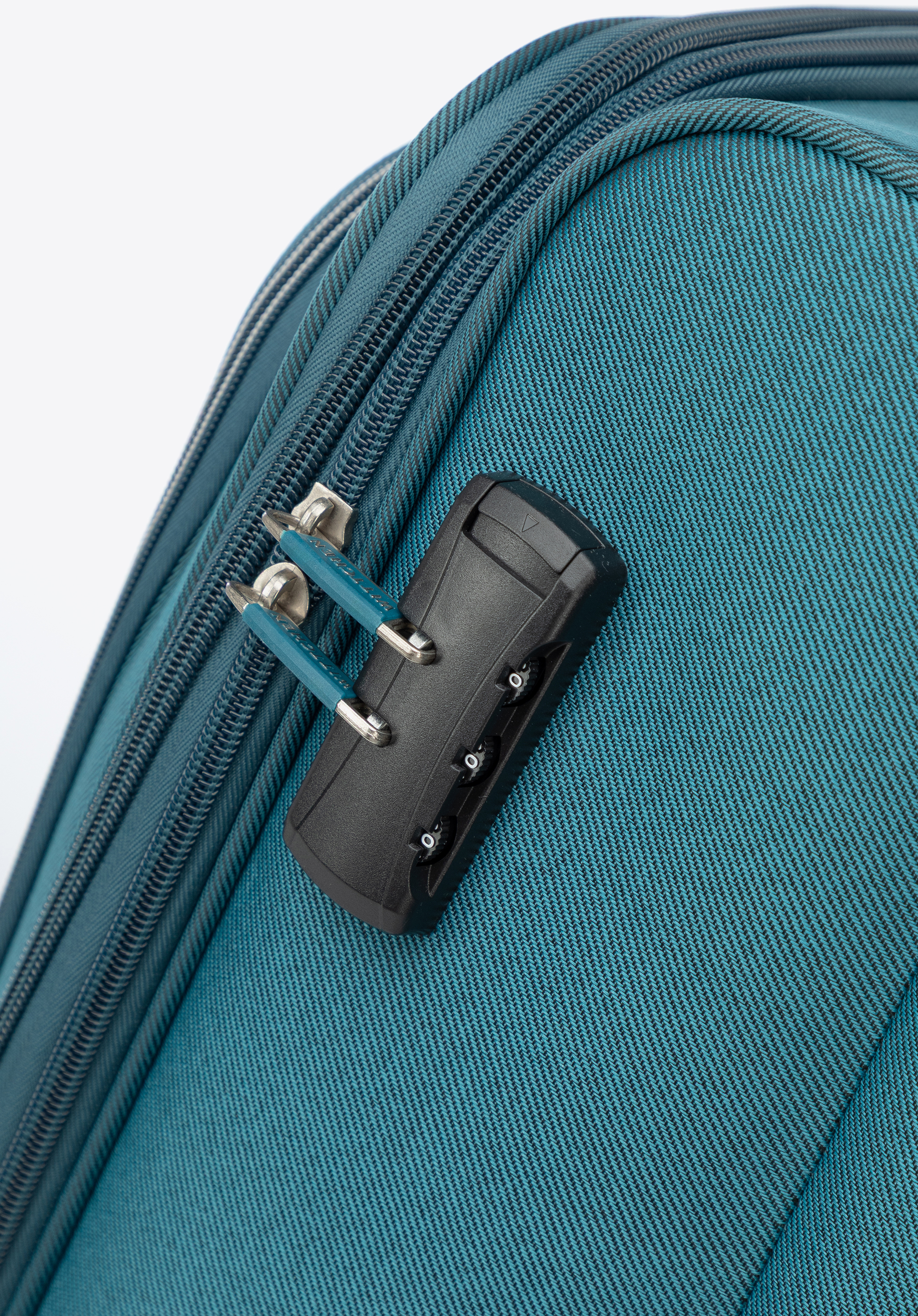 Puha oldalú nagyméretű poliészter bőrönd türkiz