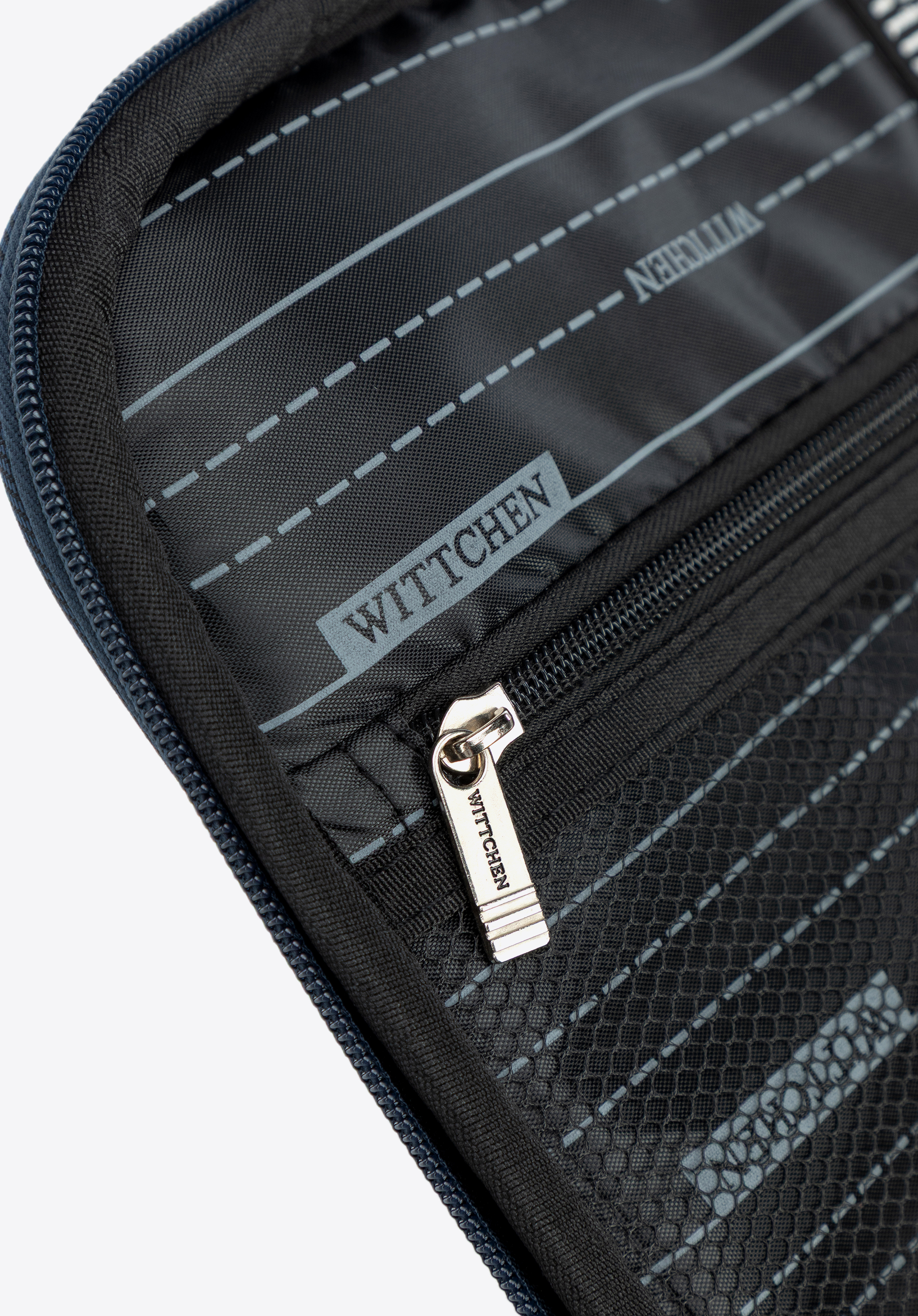 - Átgondolt belső tér: Fő rekesz pántokkal a ruhák rögzítésére és egy elválasztó hálós zsebbel a jobb rendszerezés érdekében.