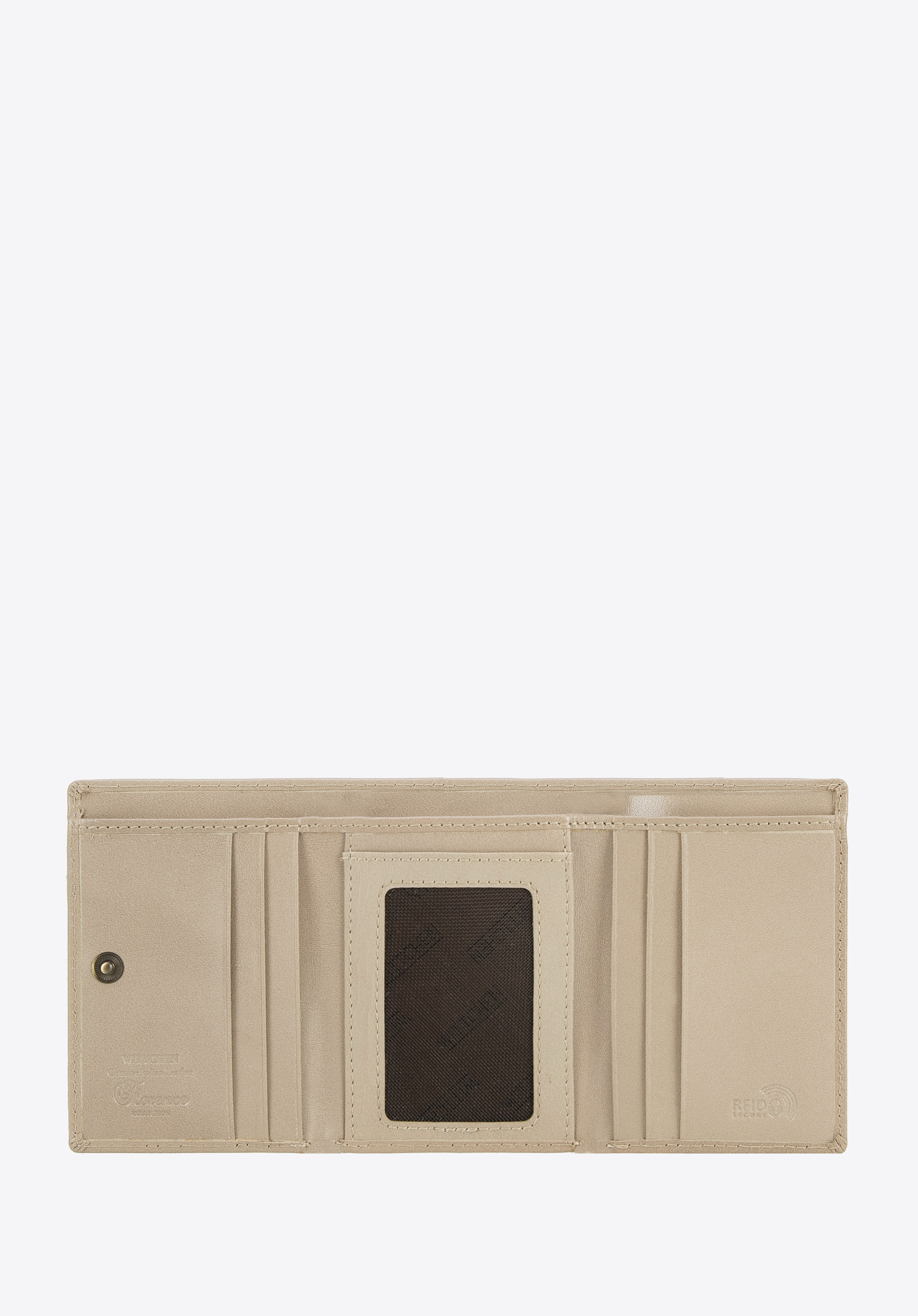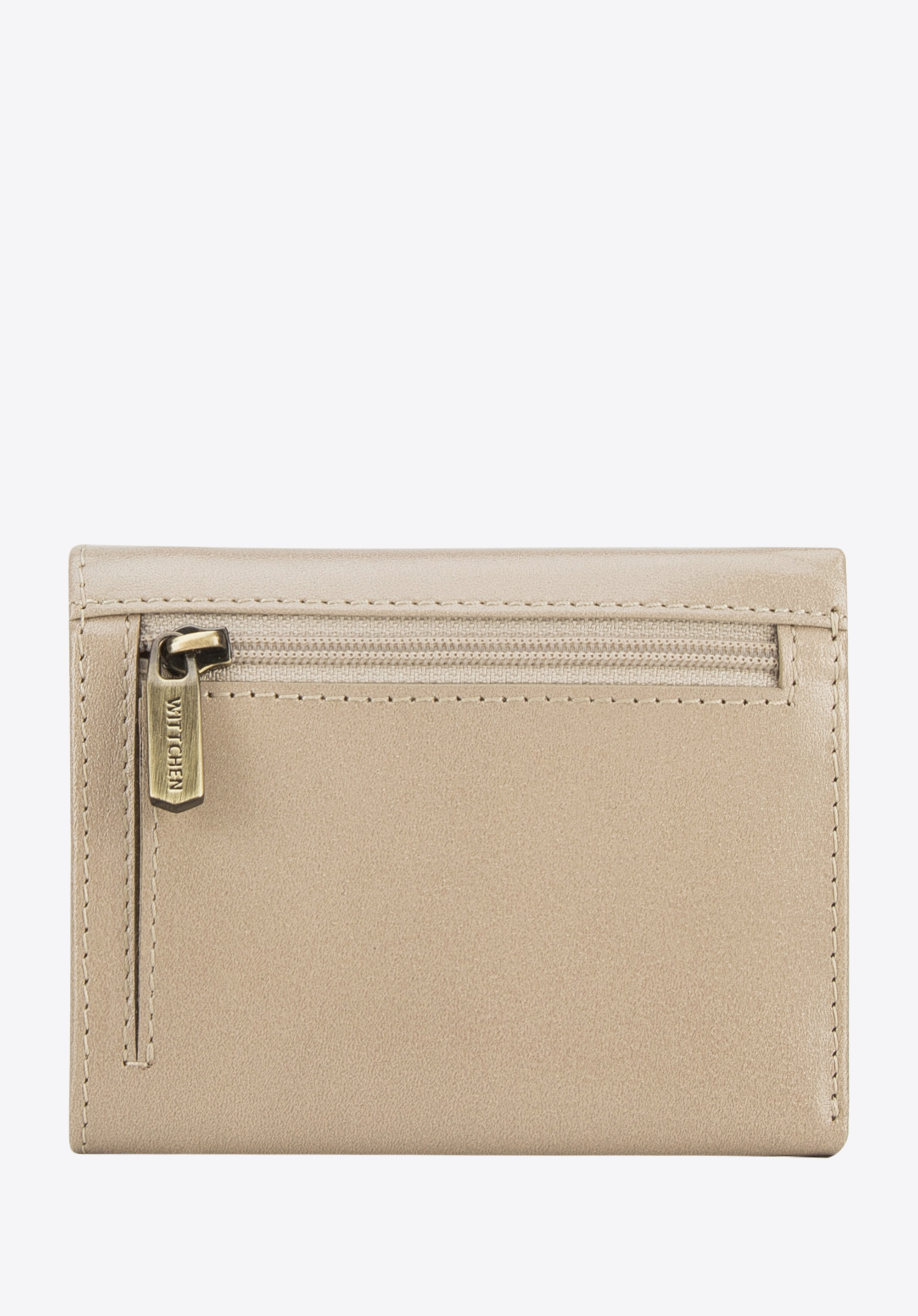 Elegáns női pénztárca minden nő számára, aki értékeli a praktikus és stílusos kiegészítőket. Természetes bőrből készült, elöl dombornyomott WITTCHEN logóval. Kicsi, de praktikus. Jól rendezett belsővel rendelkezik: több kártyanyílás, nyitott zsebek és egy hálós rekesz például egy fénykép számára. Kívül egy cipzáras zseb található az érmék számára, így kényelmesen használhatod anélkül, hogy az egész pénztárcát ki kellene nyitnod. A sima bőrből készült kisméretű női pénztárca remek ajándékötlet minden nő számára.