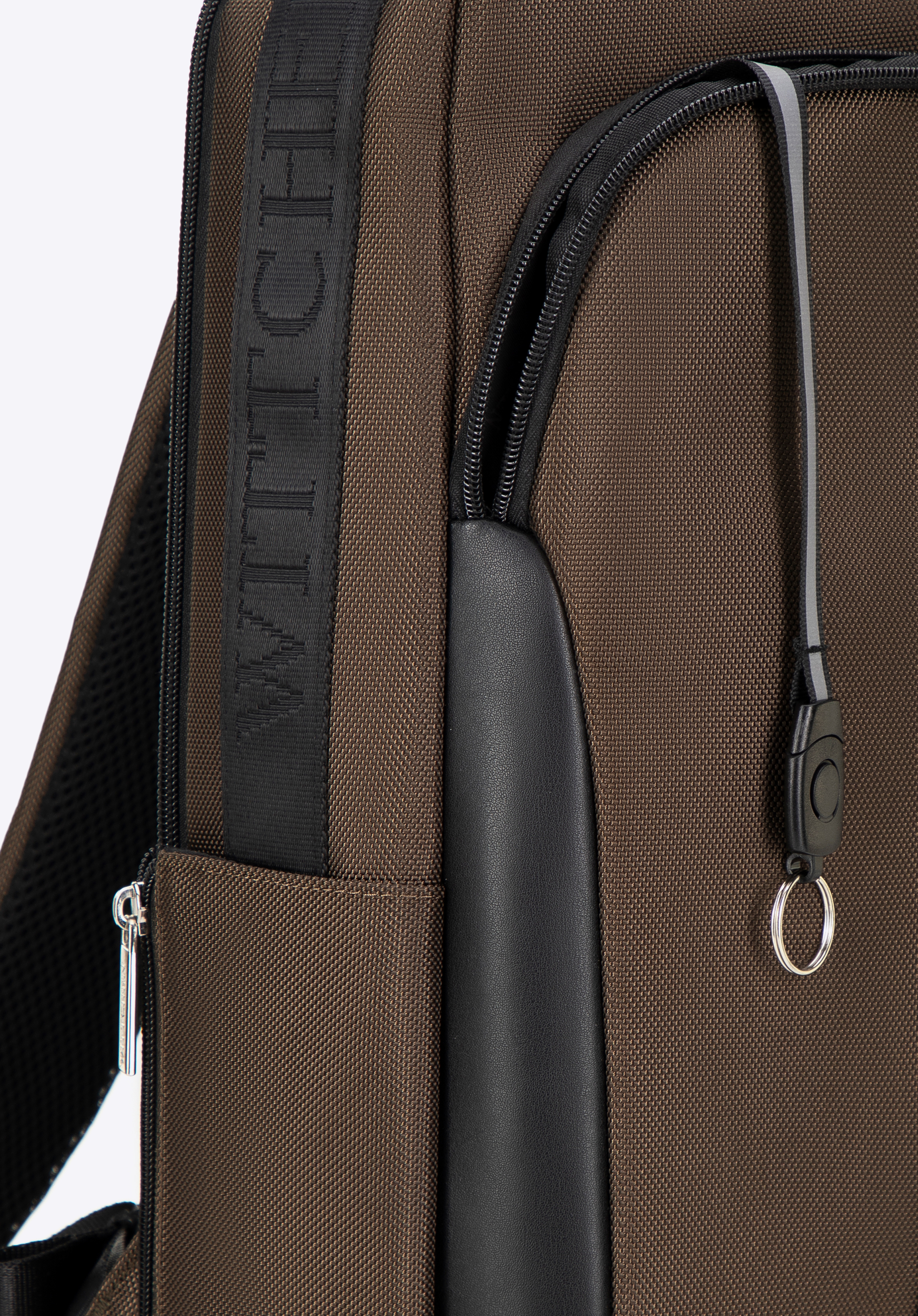 - Elülső cipzáras zseb: Kiválóan alkalmas gyakran használt tárgyak, például útlevél, repülőjegy, telefon vagy kulcsok tárolására, amelyeket kulcsszíjra rögzíthet.